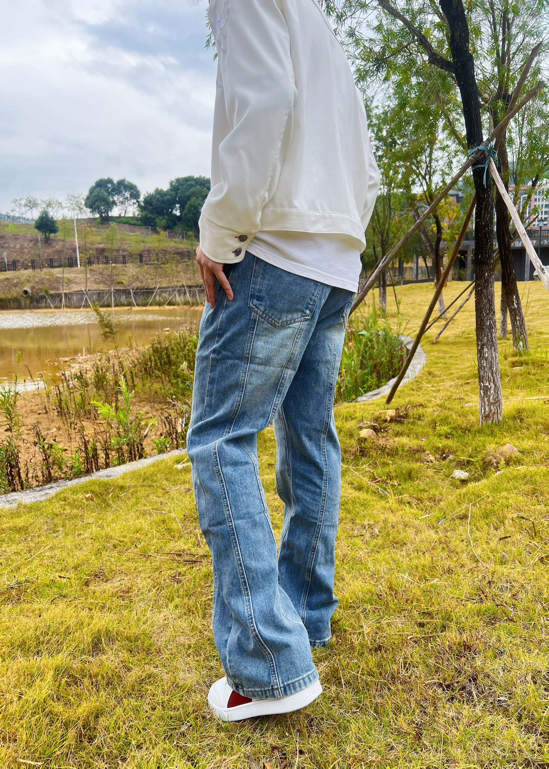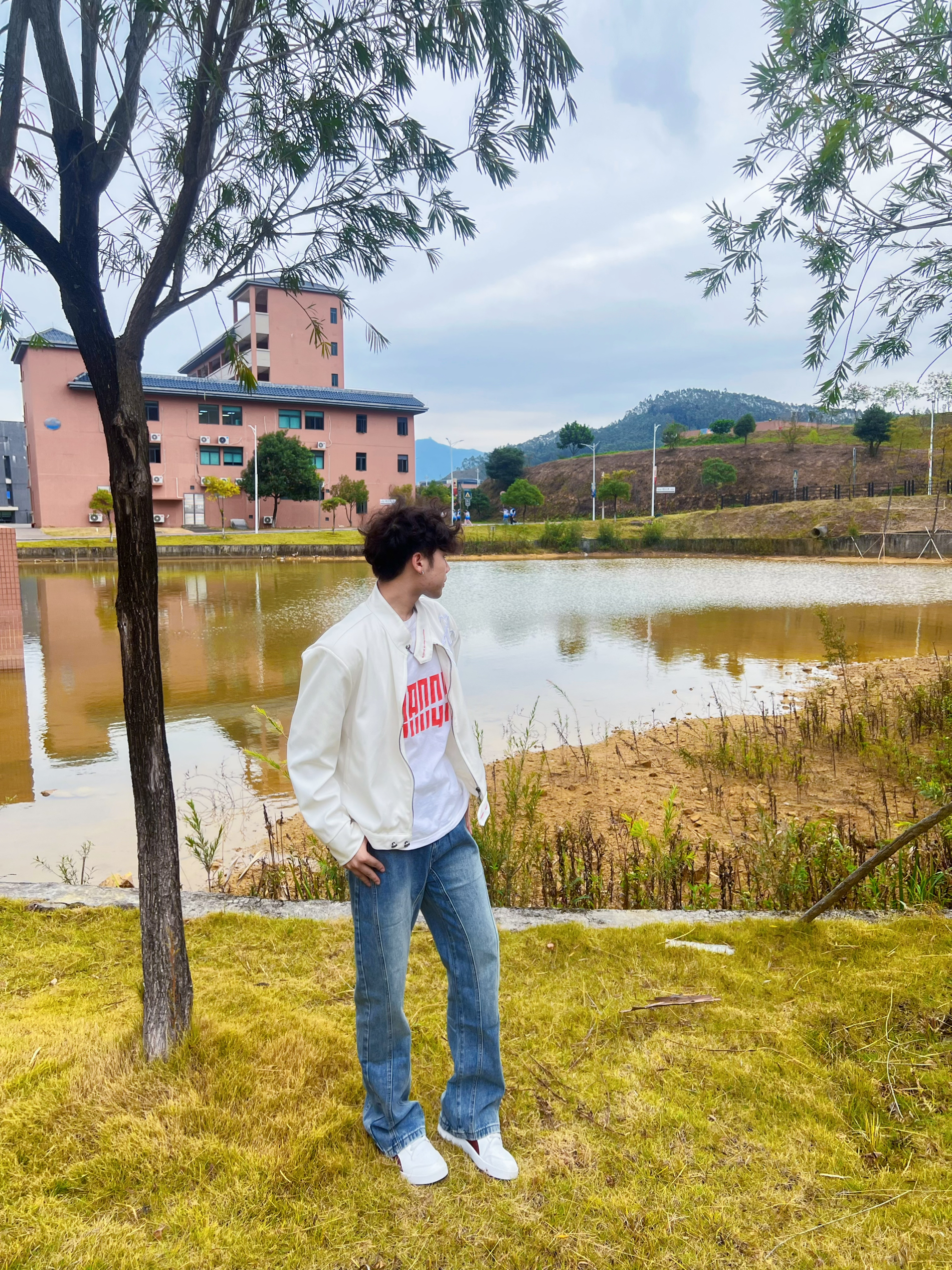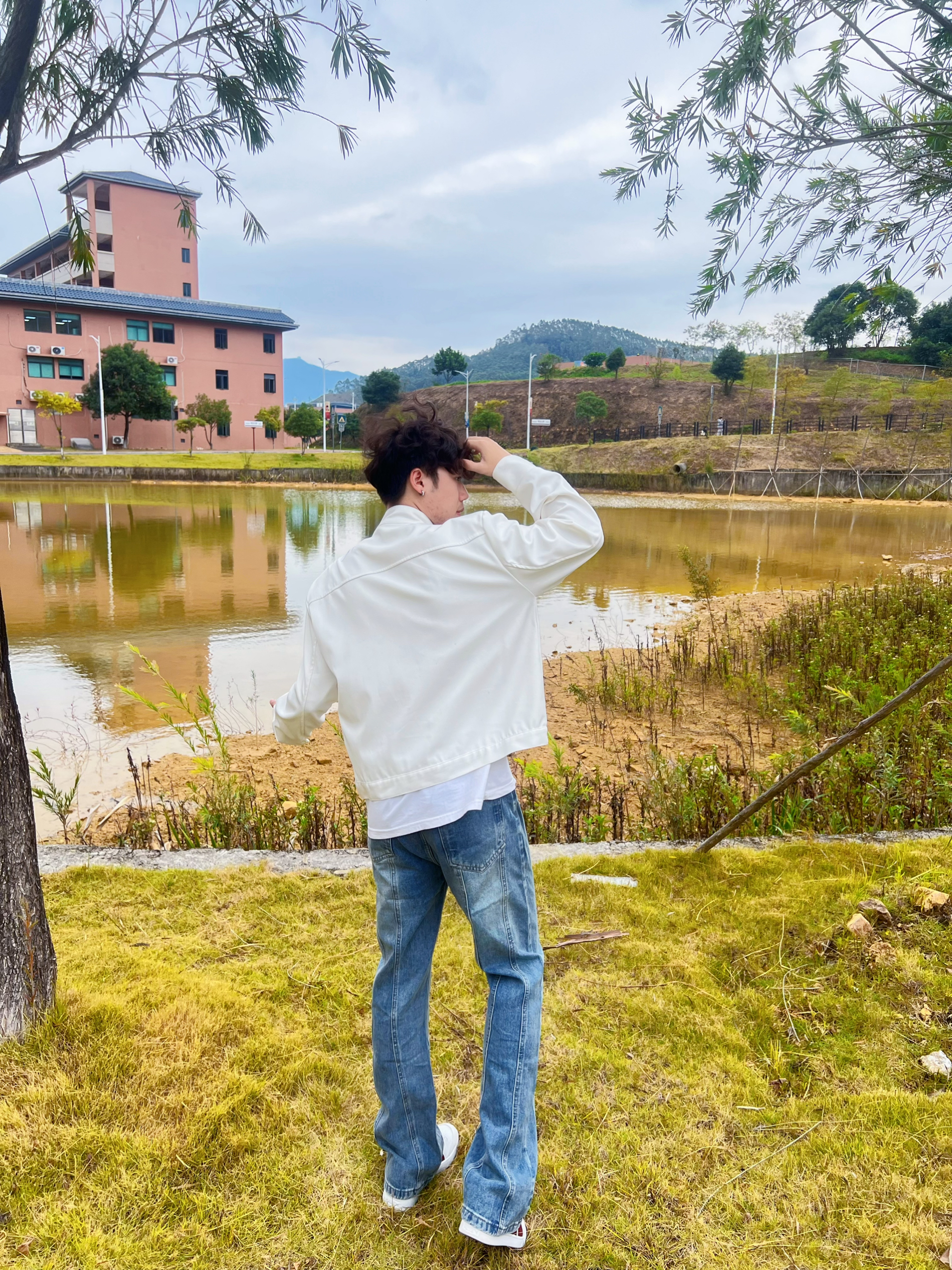 这条牛仔裤真的是为175/64kg量身定做!版型是宽松直筒,裤长刚好盖过鞋面,不显拖沓还能衬得腿型巨好看~面料软乎乎的但完全不塌,洗了两次也没变形,久坐也不会勒腰卡裆,日常通勤还是出门逛都舒服到不想脱!梨形身材或者喜欢休闲风的兄弟闭眼冲,这质量配这上身感,直接把衣柜里旧裤子都换掉!