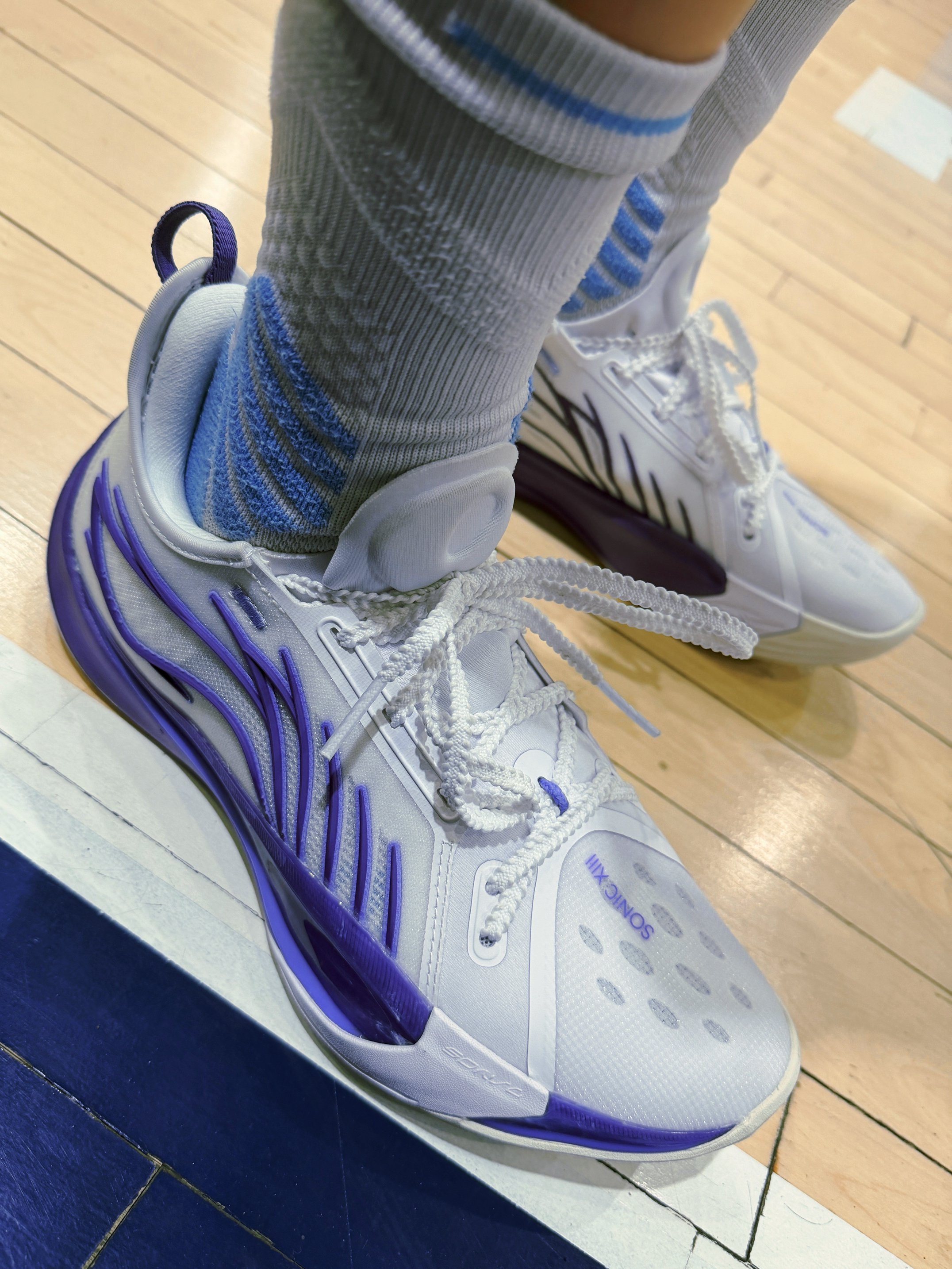 有的兄弟总是让我推荐一些 性价比比较高的 场地感实战体验优秀的球鞋 这不 李宁 的音速13就来了 轻质透气 包裹体验也很棒 缓震上限不是太高 更加适合中小体重的球员 前面的上翘会让人很有跑动的感觉 尺码也是比较正常的 唯一的不足 就是我觉得防侧翻角做的太大了 有一些不适 一点点内扣的感觉