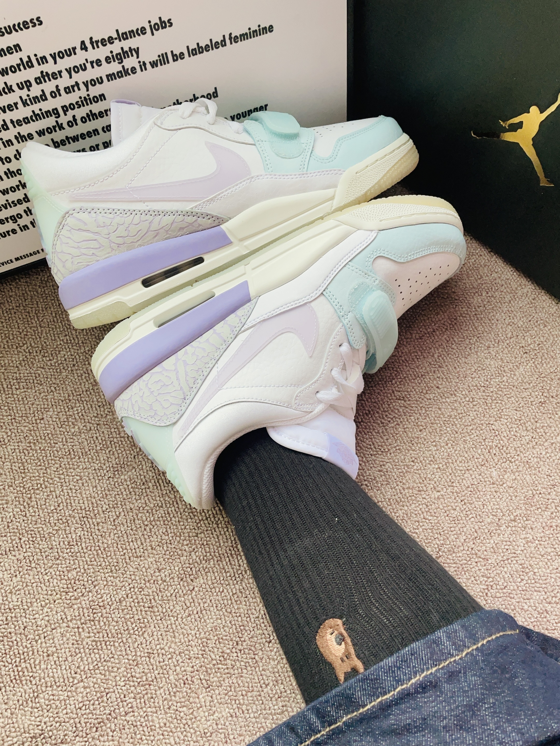 本篇笔记关联了Air Jordan Legacy 312 板鞋 运动休闲鞋 三合一魔术贴缓震复古回弹合成革 GS/白色/绣球花紫/冰川蓝等商品,为用户提供真实的使用体验和购买参考。