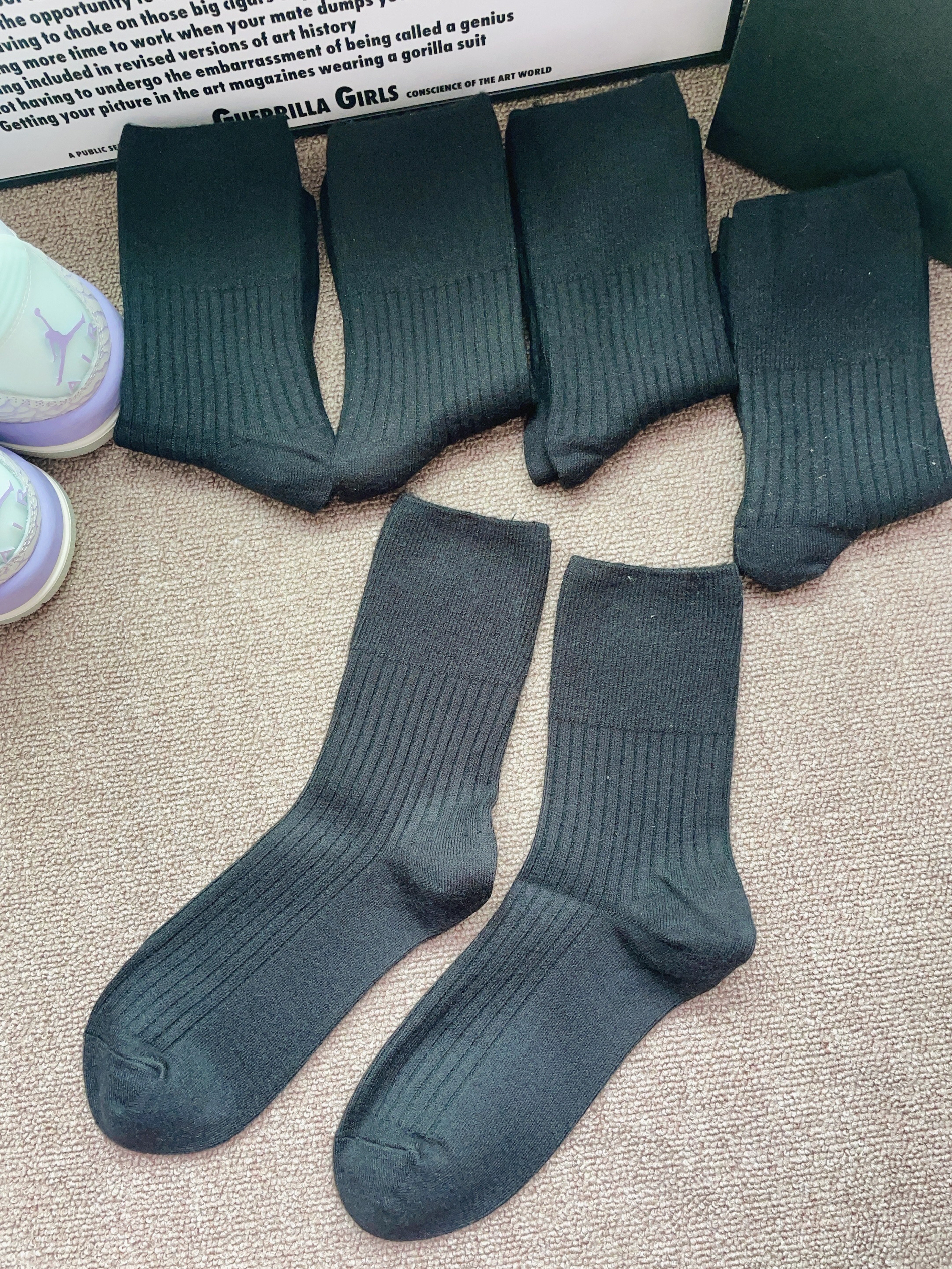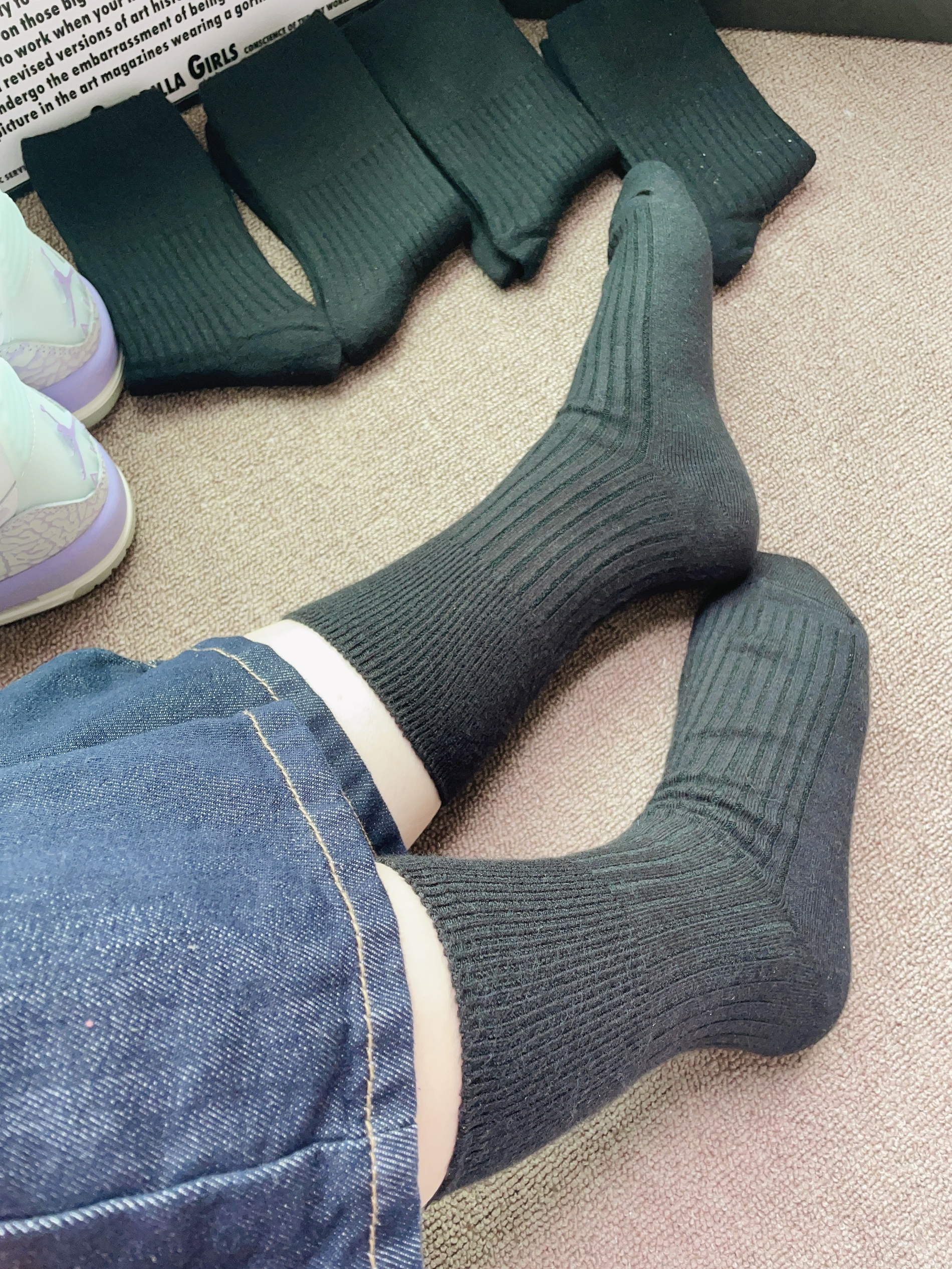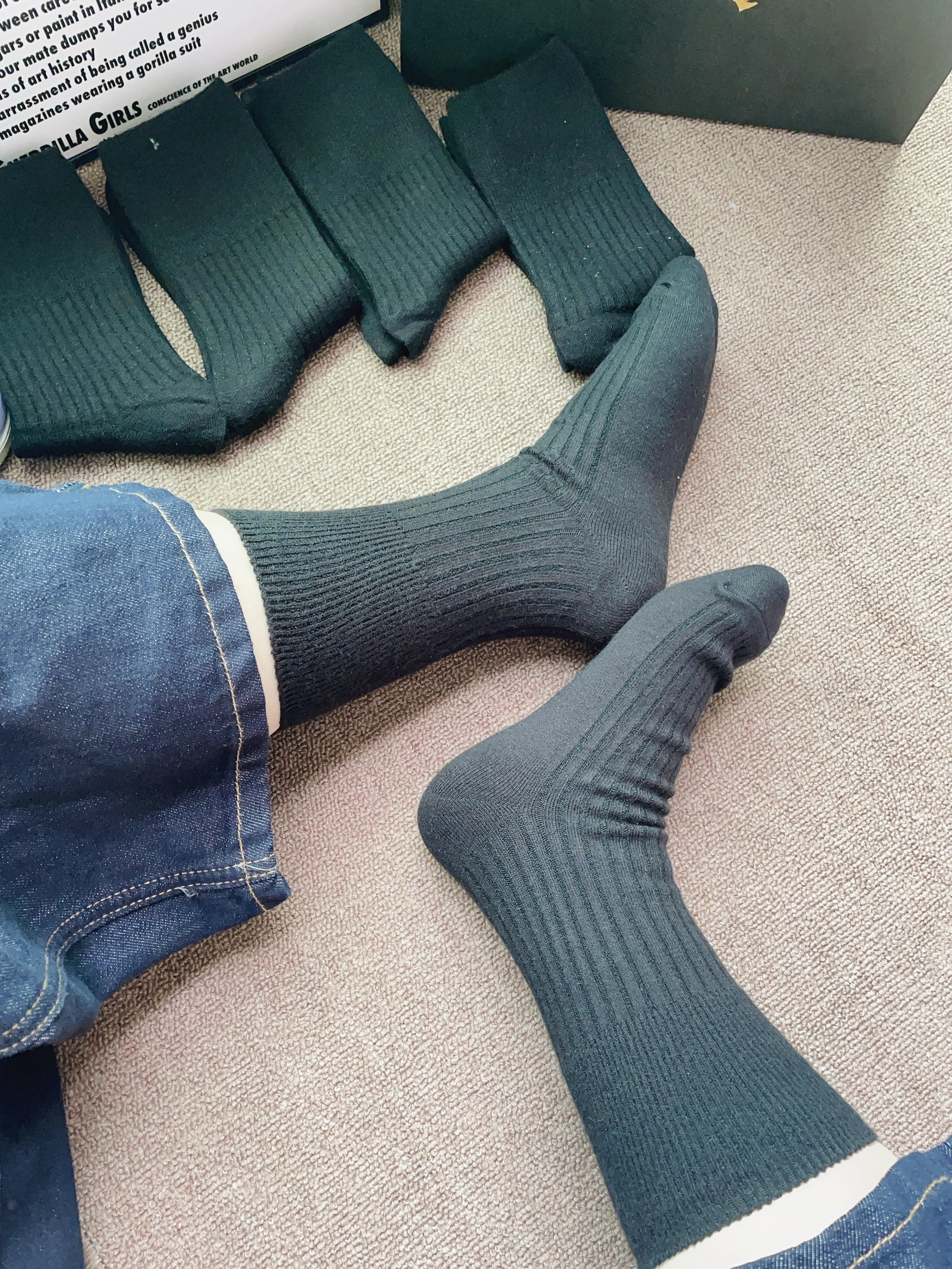 过几天就是立冬啦 加上广东这几天下雨了 突然降温比较冷呢 又刚好是一年一度的双十一 当然要准备新的袜子穿啦 这款袜子黑色百搭耐脏好好看啊 摸着面料柔软舒适 细节做的可以 上脚我穿了一下 感觉好舒服 有五双袜子刚好满足日常换穿需求 日常通勤随便搭都可以的