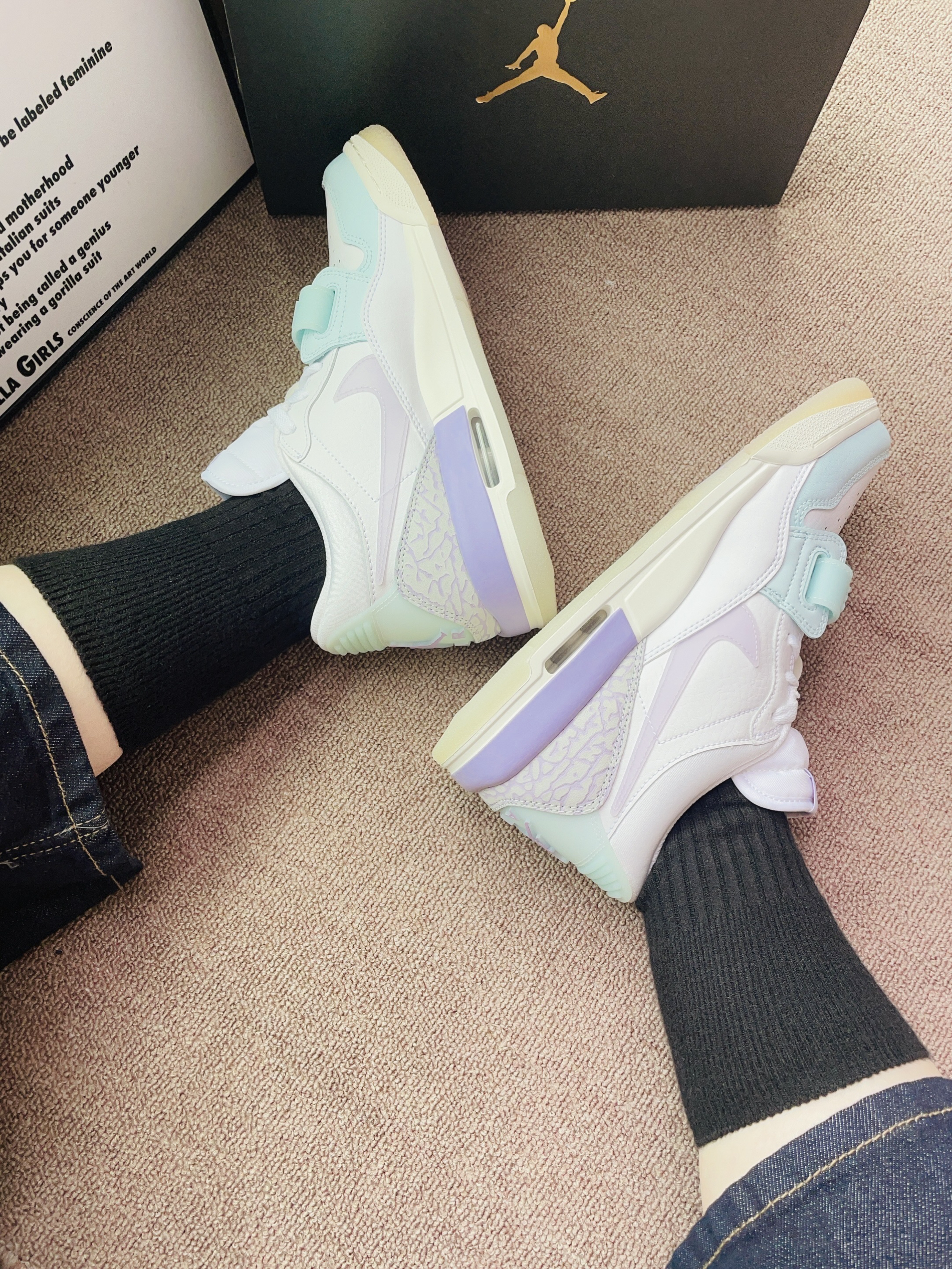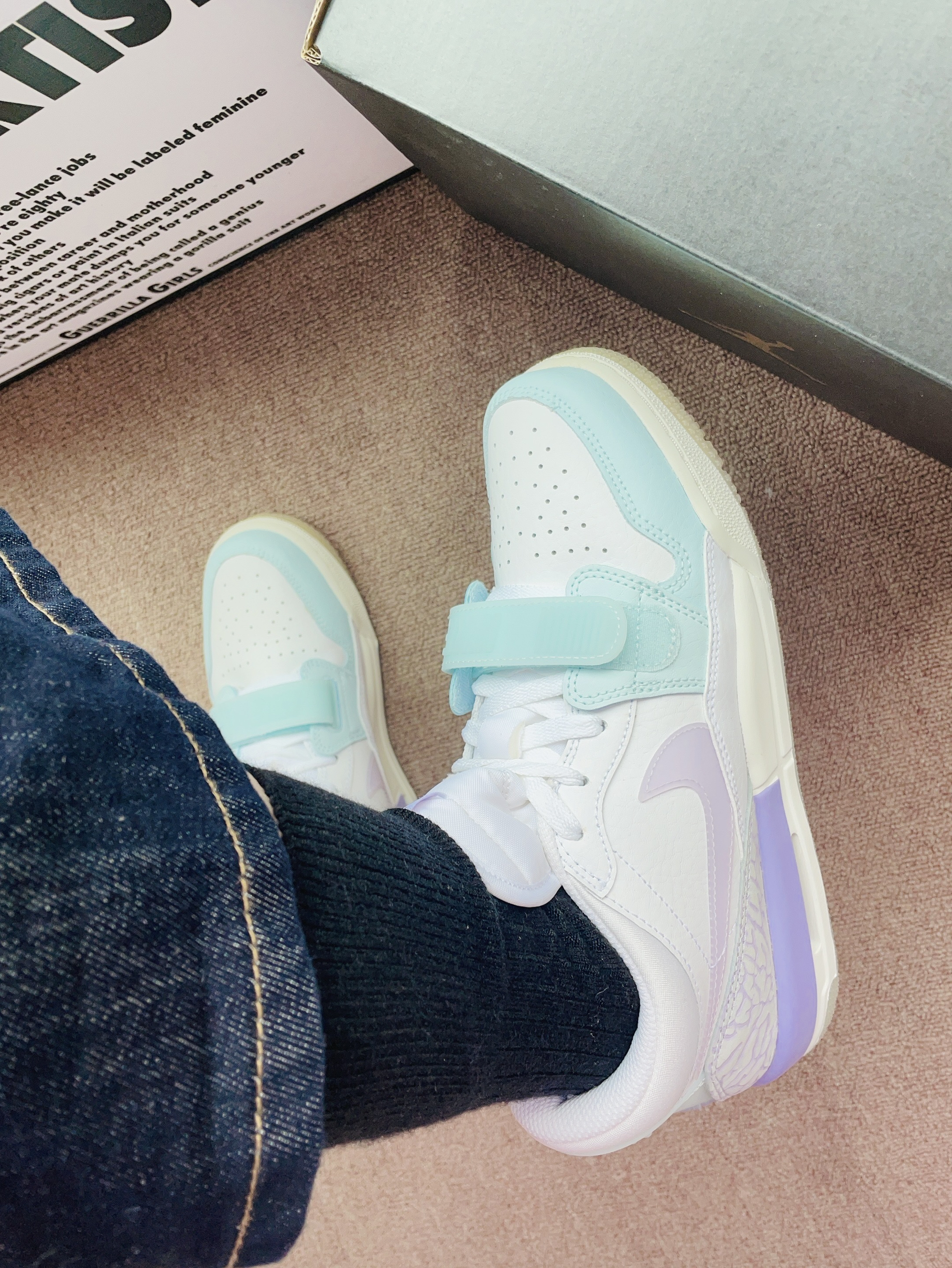 本篇笔记关联了Air Jordan Legacy 312 板鞋 运动休闲鞋 三合一魔术贴缓震复古回弹合成革 GS/白色/绣球花紫/冰川蓝等商品,为用户提供真实的使用体验和购买参考。