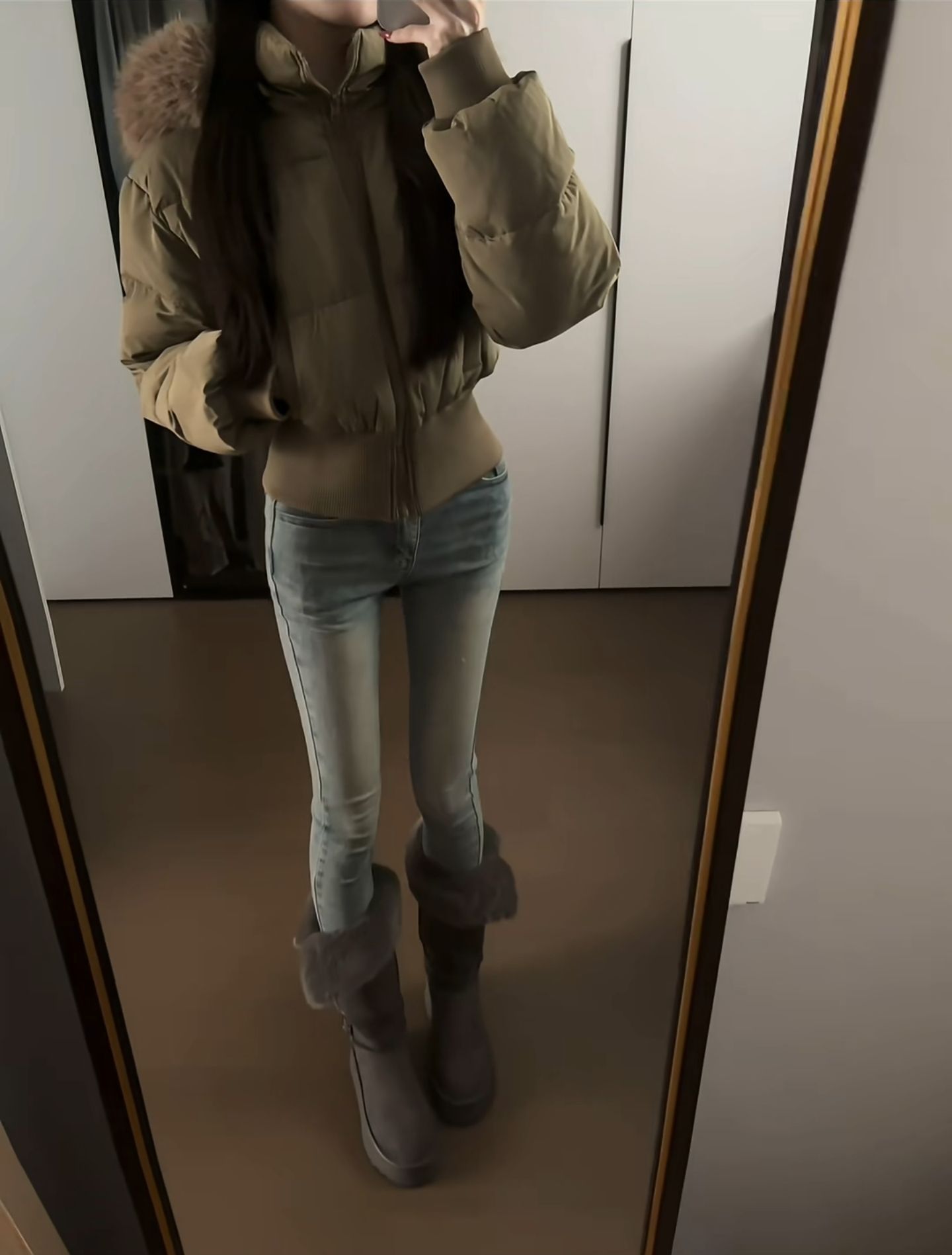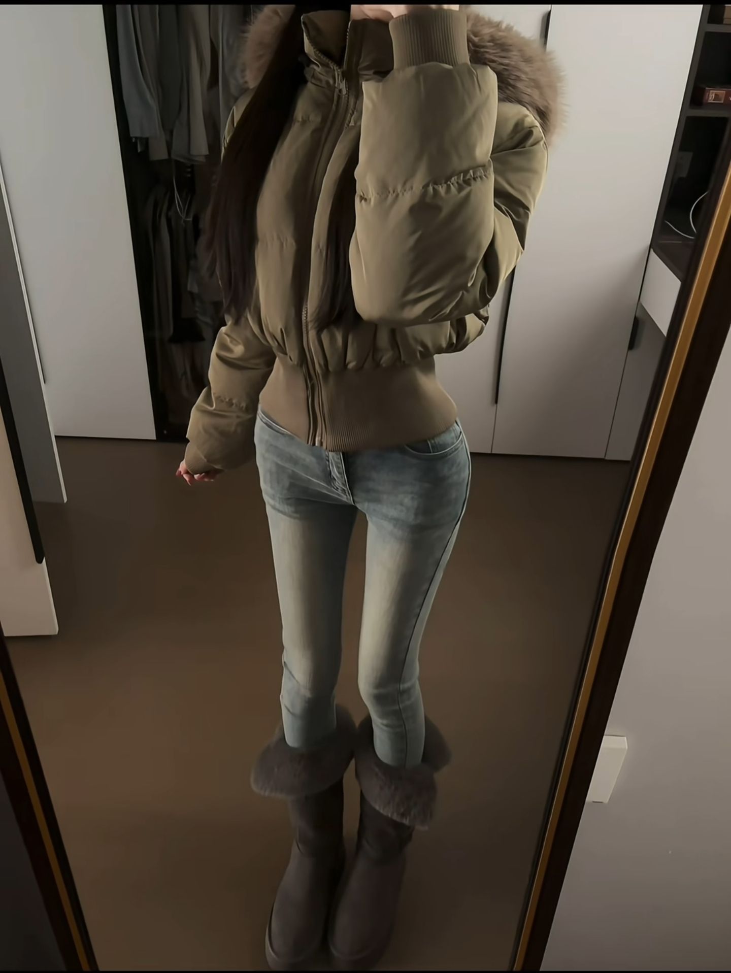 这套穿搭也太绝了吧!短款棉服把比例拉得好好,配上紧身牛仔裤和毛毛雪地靴,又甜又飒还很保暖,日常穿出门真的很吸睛,咱就是说一整个爱住这种风格!