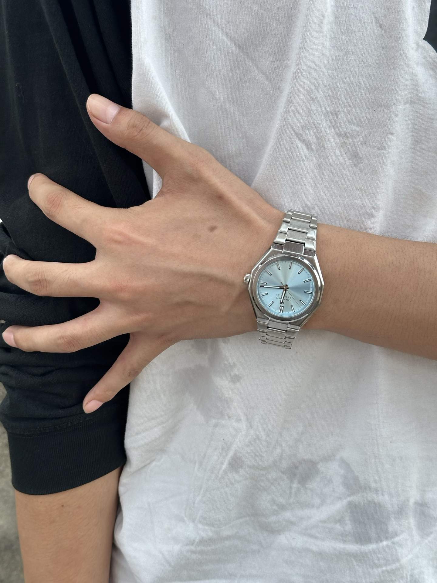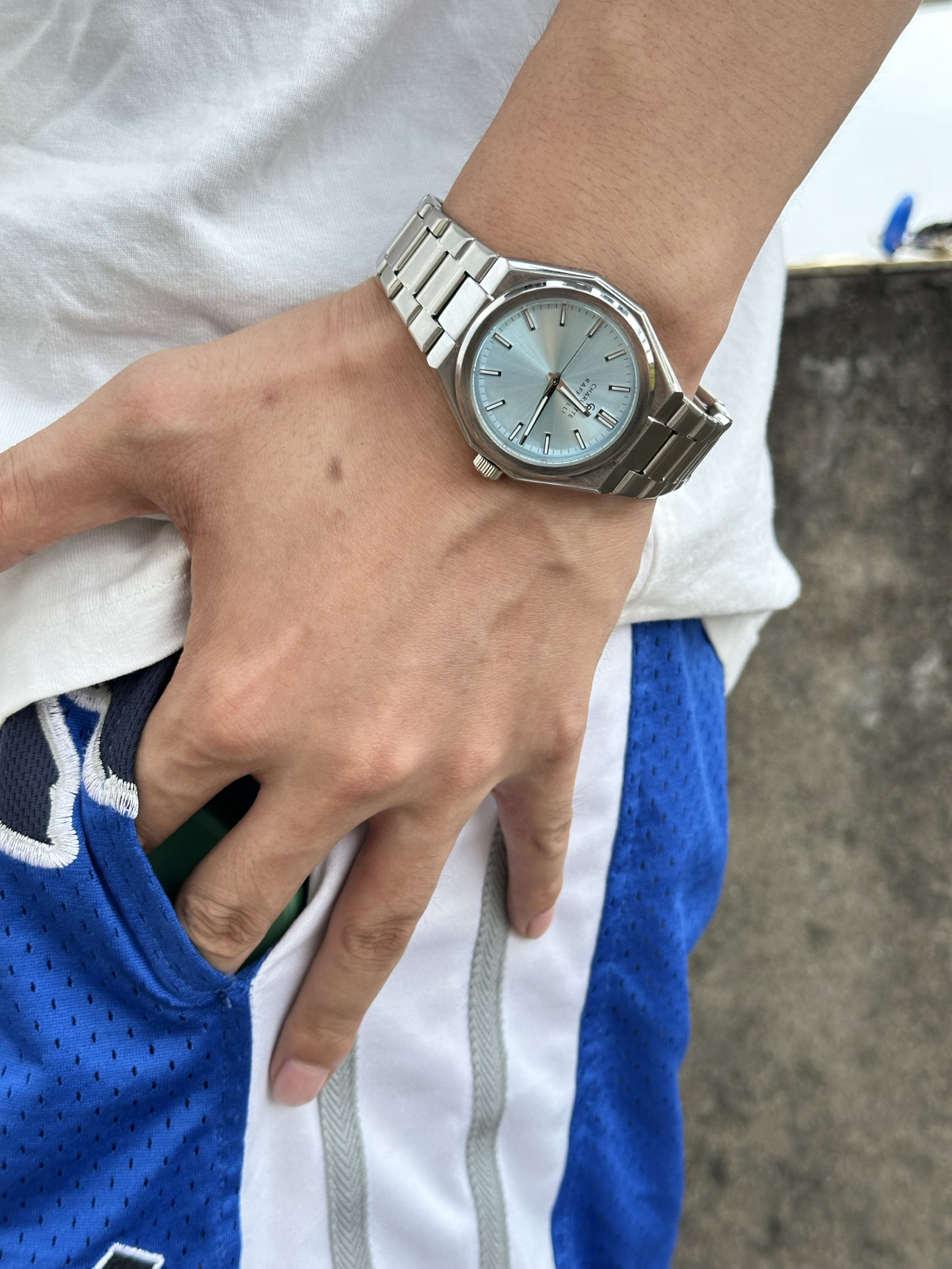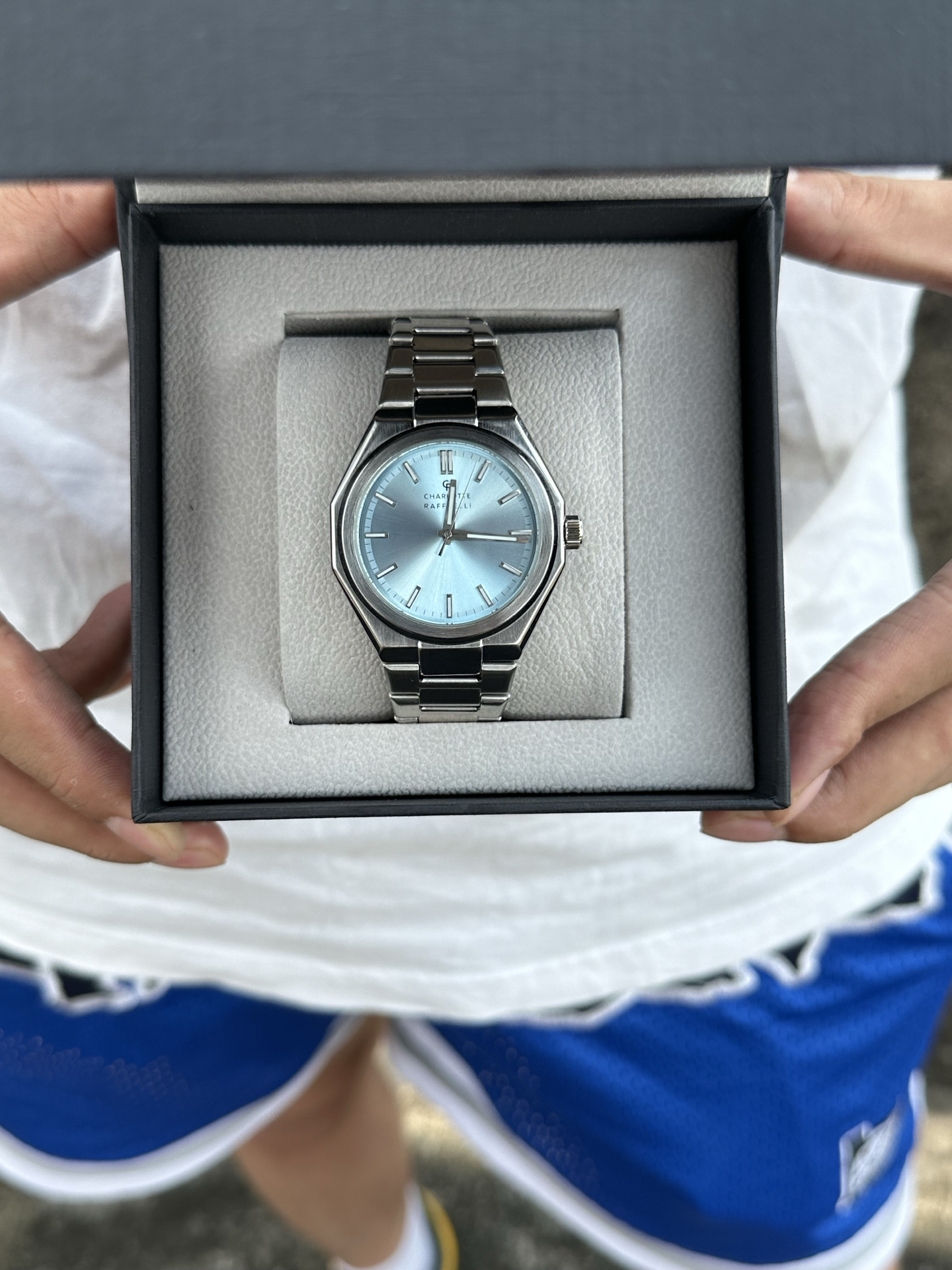 本来担心石英机芯表质感差,结果上手惊艳到我!蓝色表盘在秋阳下光泽好柔和,戴起来精致又不廉价~礼盒包装也用心,送礼品袋很大气🎁 日常搭衣服很百搭,不过防水只有30米,洗手得注意些~