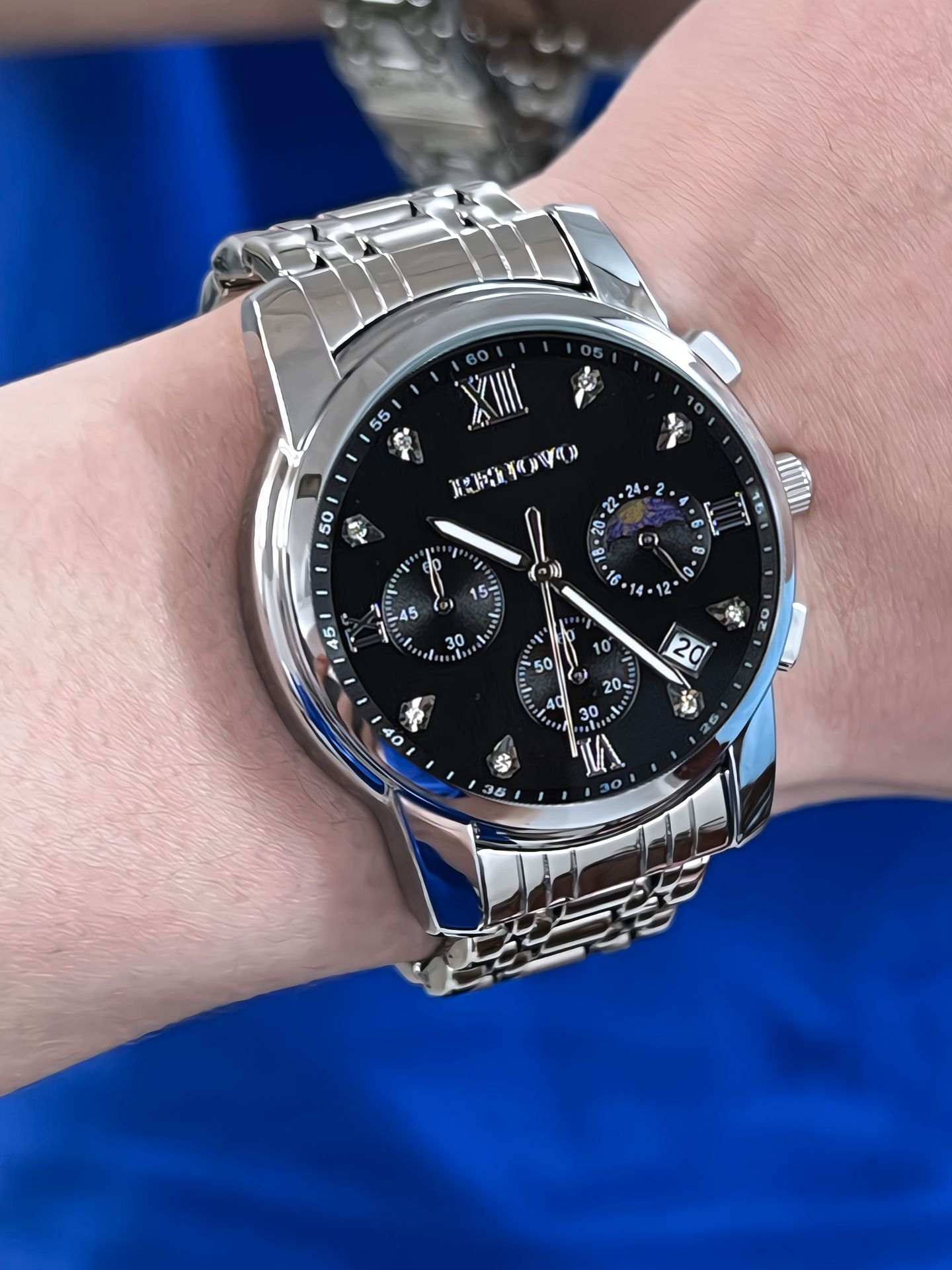 本篇笔记关联了RENOVO/罗诺威 精钢防水复古文艺石英男士手表 银黑、RENOVO 经典潮流时尚多功能三眼六针日月星辰镶钻防水夜光石英男士手表 银黑、Kangol 星辰大海系列 真皮表带时尚星空潮玩休闲职场通勤立体浮雕个性油画创意镂空夜光自动机械男士手表 银壳黑面等商品,为用户提供真实的使用体验和购买参考。