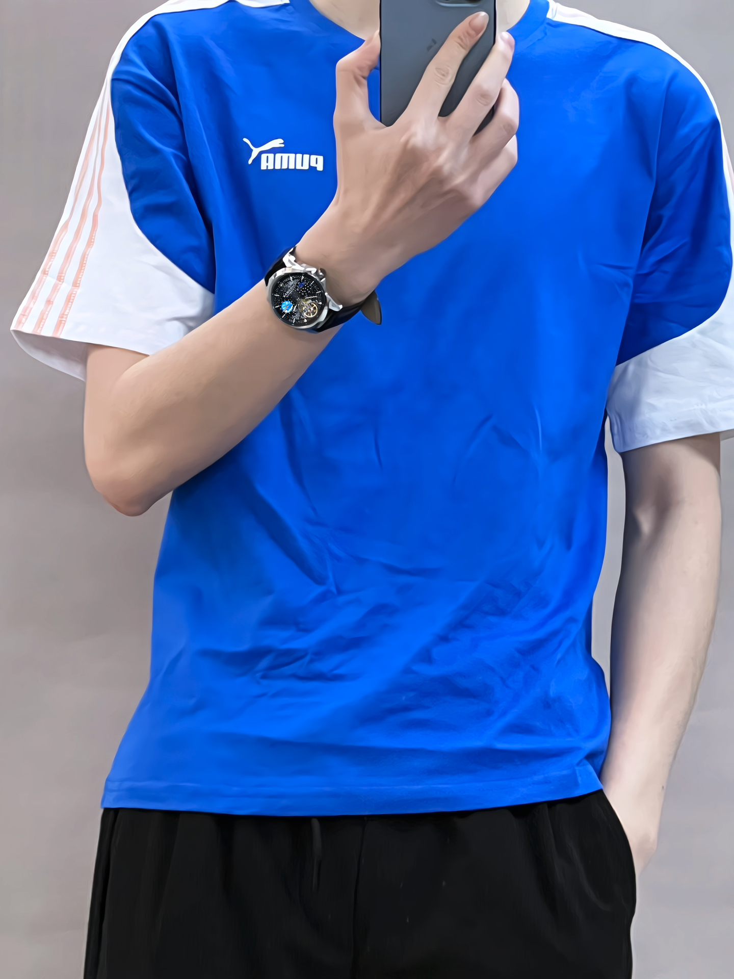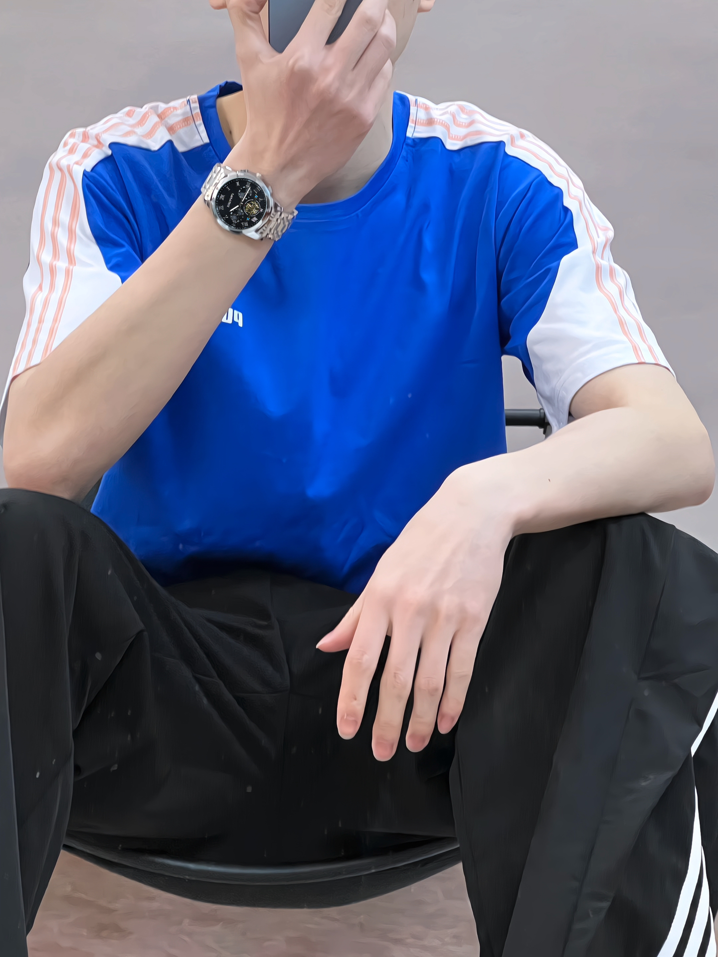 我发现不同风格的手表搭配对整体造型影响还挺大!像我正式场合就选银色精钢款,约会逛街换红色皮带款,日常通勤戴黑色皮带款,每块表盘设计感都很足~不过表带材质要是能多选选就更好了😉。搭配上我穿这件蓝色T恤配黑工装裤,简单又有视觉冲击,出门随手一套就有型,手表一搭细节感拉满,你们平时咋搭配手表呀🧐?