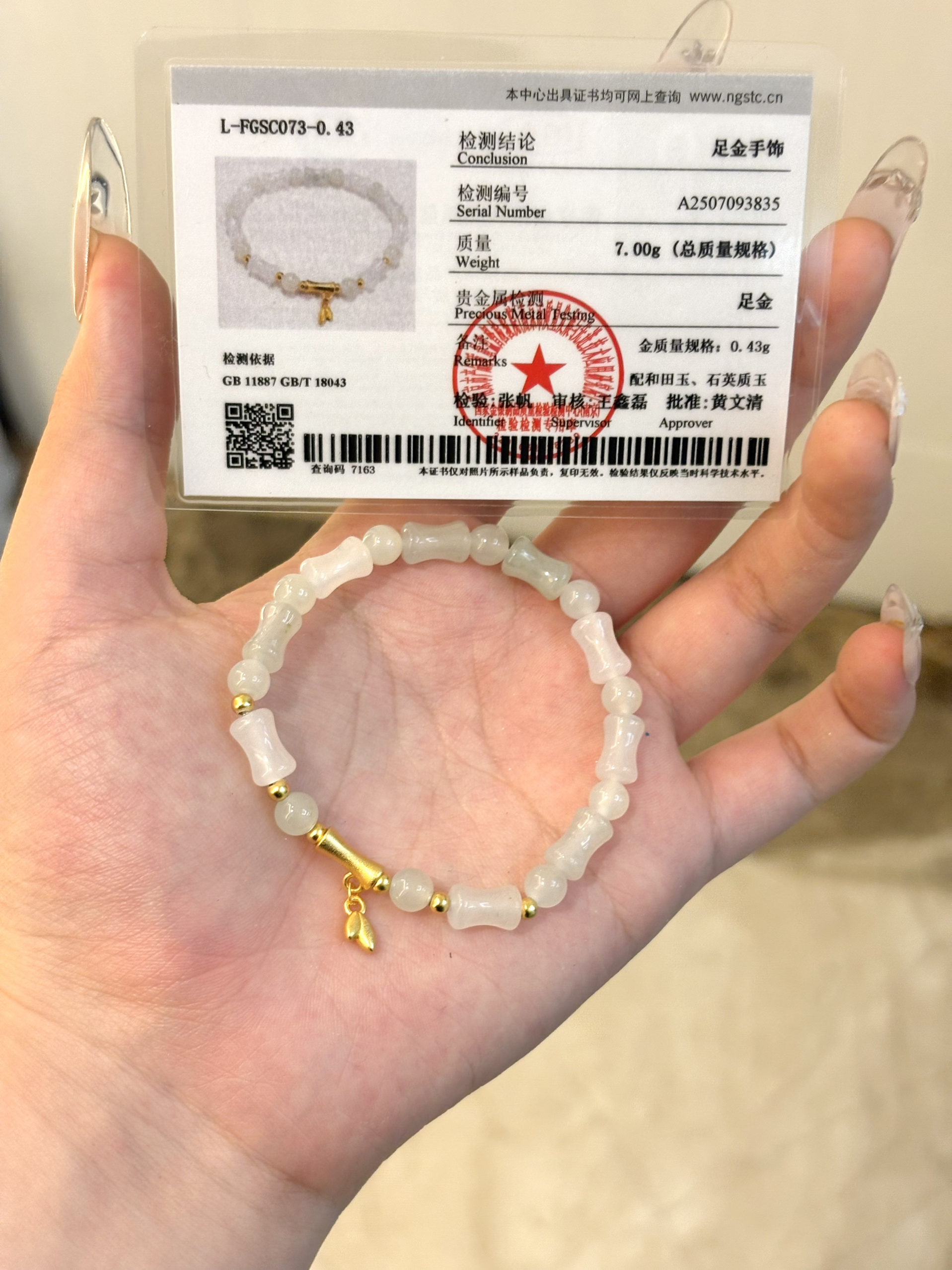 本篇笔记关联了中国黄金 节节高升竹节按克计价和田玉足金手链 J1SC178A-C 淡绿色等商品,为用户提供真实的使用体验和购买参考。