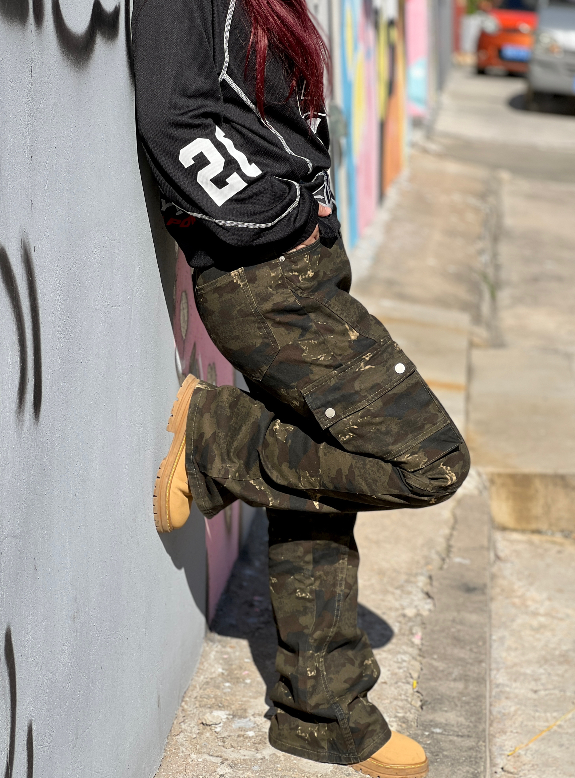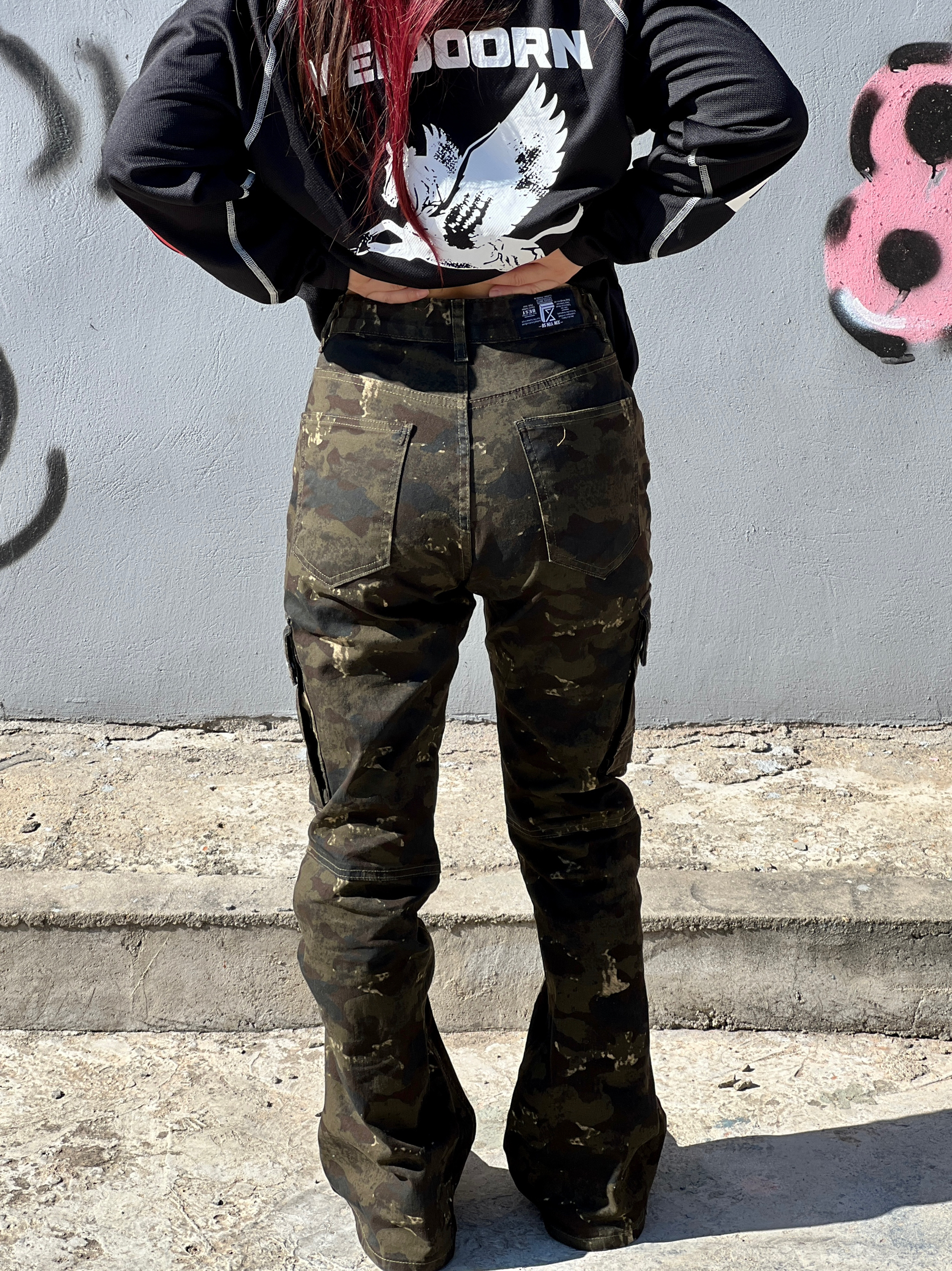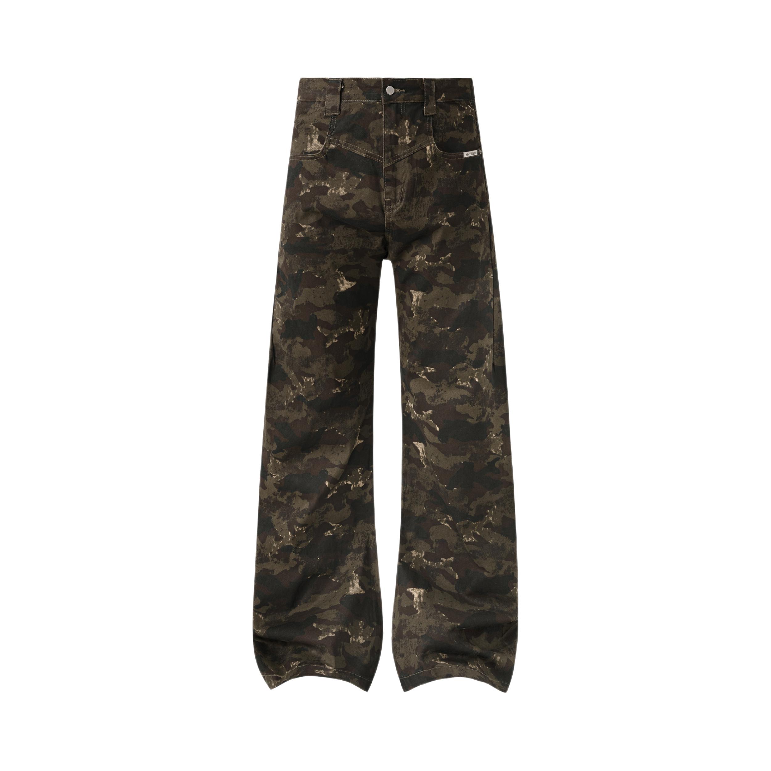 美式高街想穿点🆒🆒的 今天穿得这条🪖迷彩裤质感拉满 微喇设计修饰腿型还显腿长 我身高158cm,体重52kg 梨形身材,这条裤子是S码