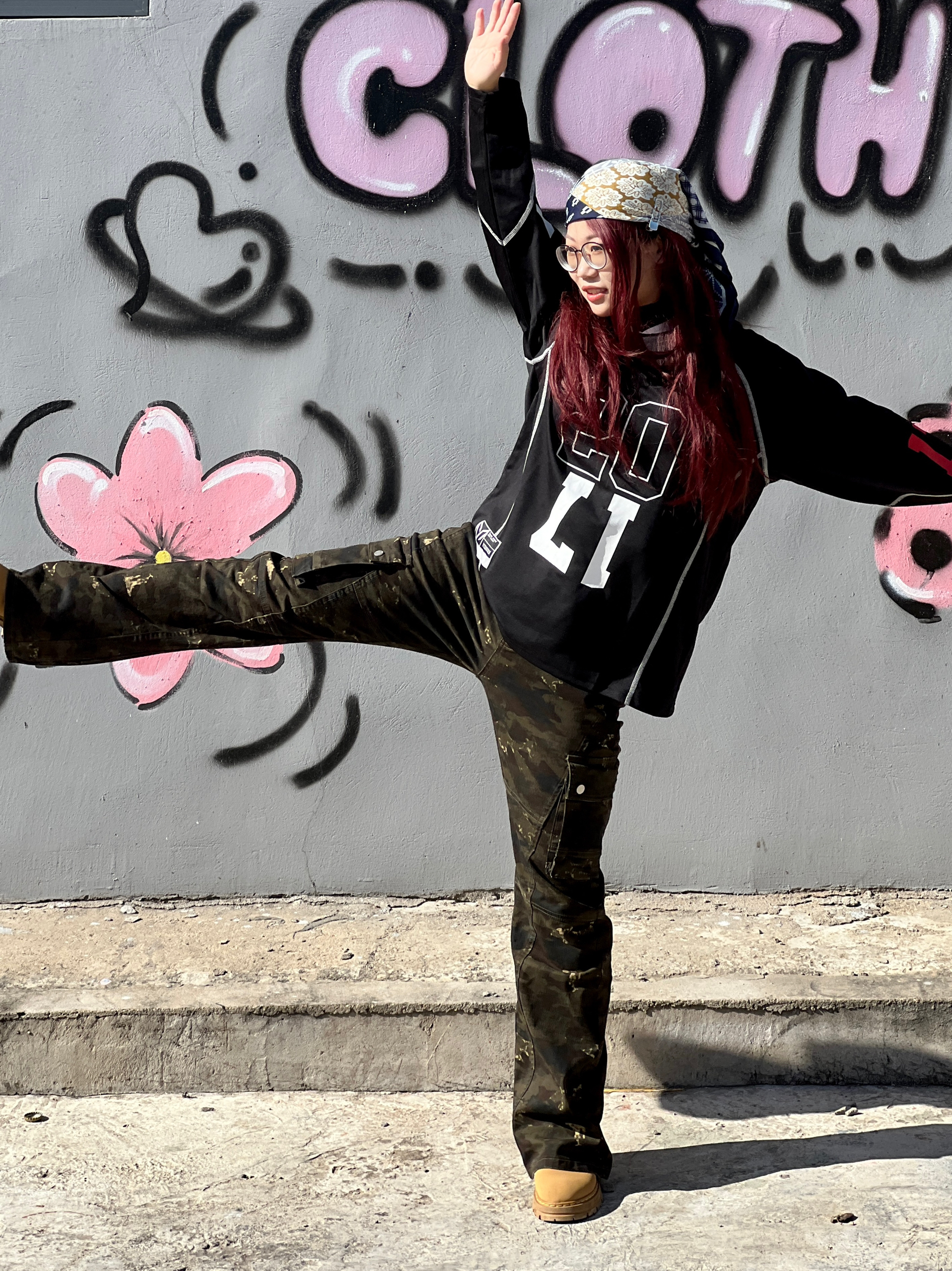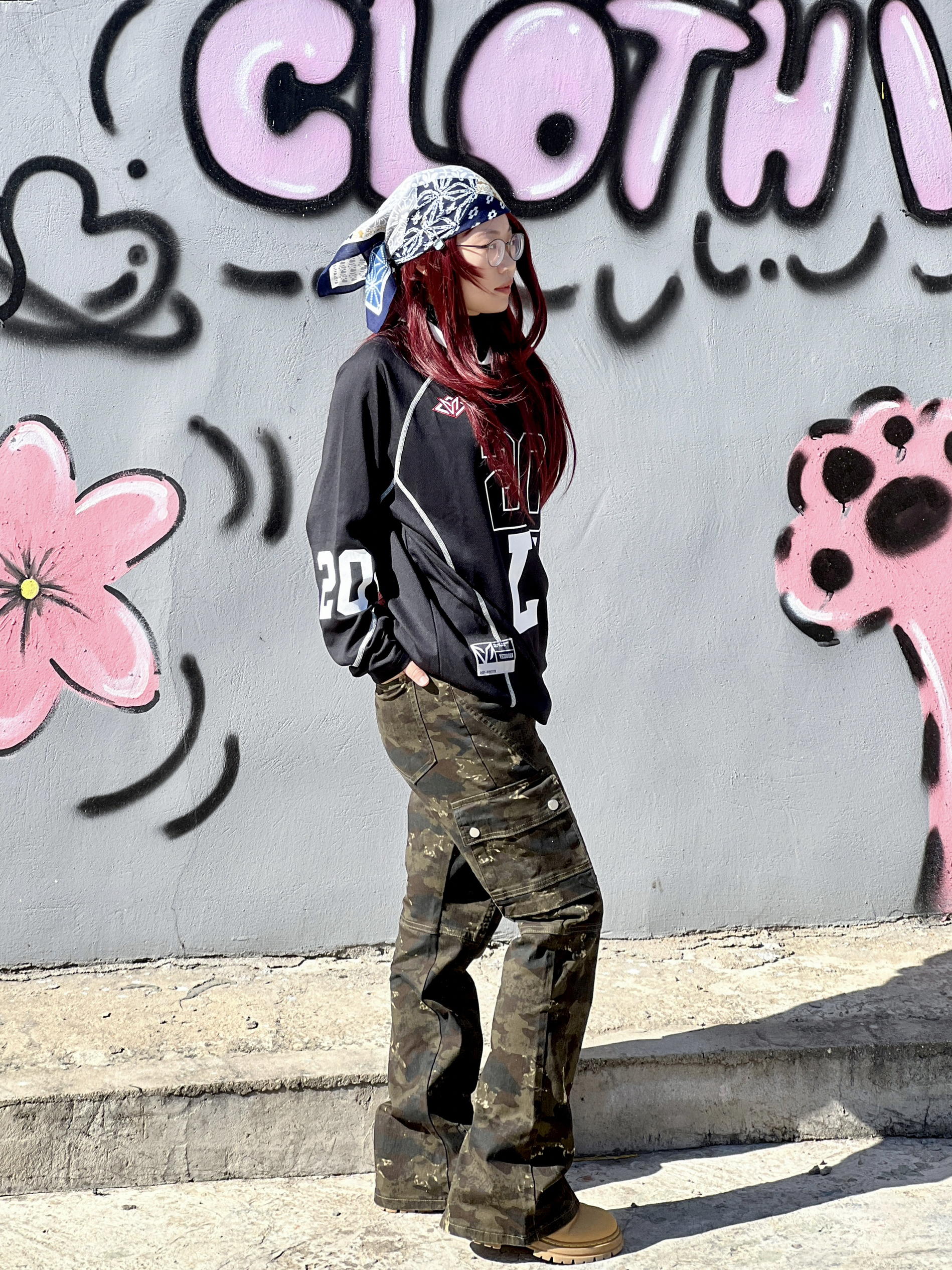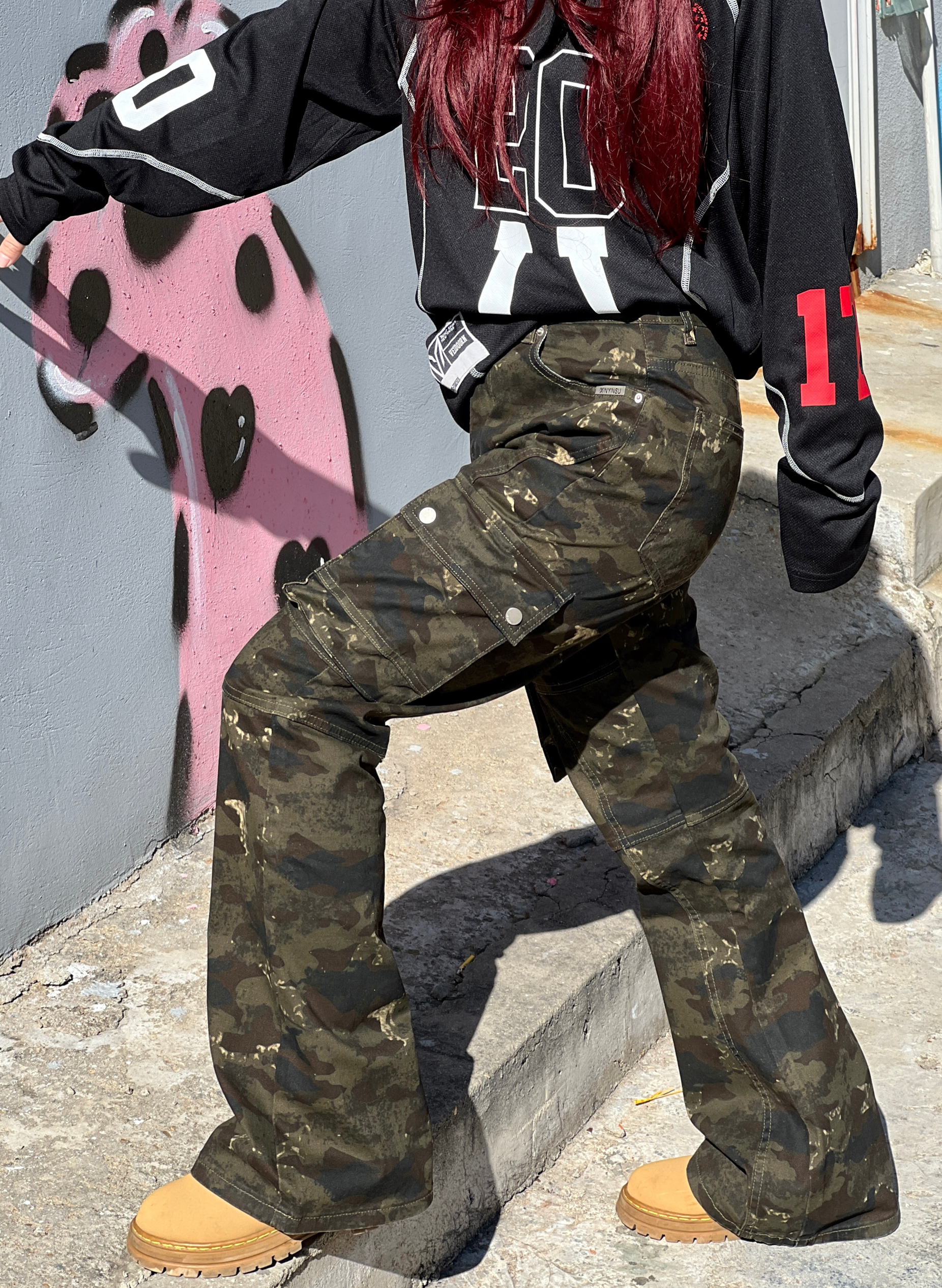 美式高街想穿点🆒🆒的 今天穿得这条🪖迷彩裤质感拉满 微喇设计修饰腿型还显腿长 我身高158cm,体重52kg 梨形身材,这条裤子是S码