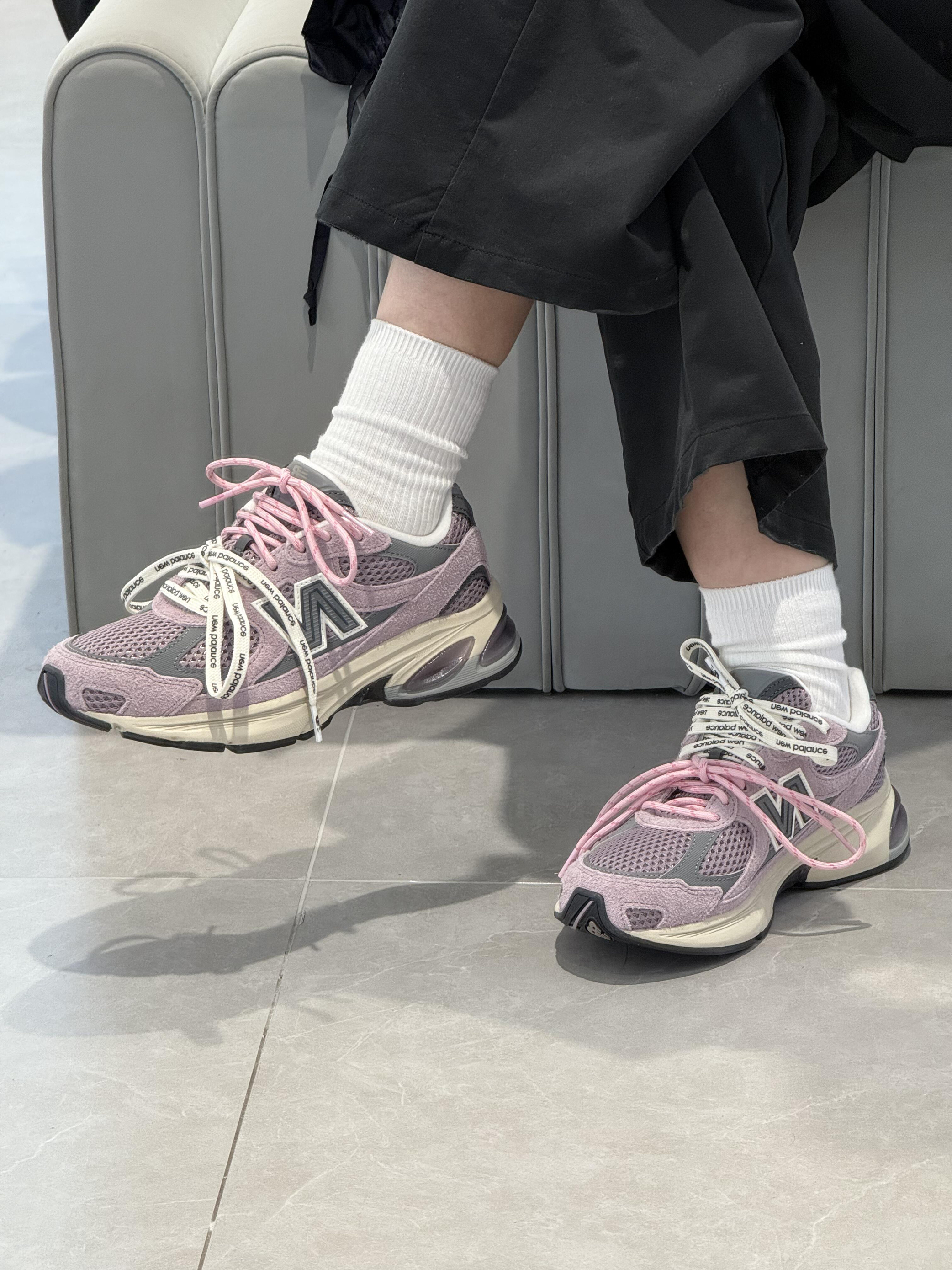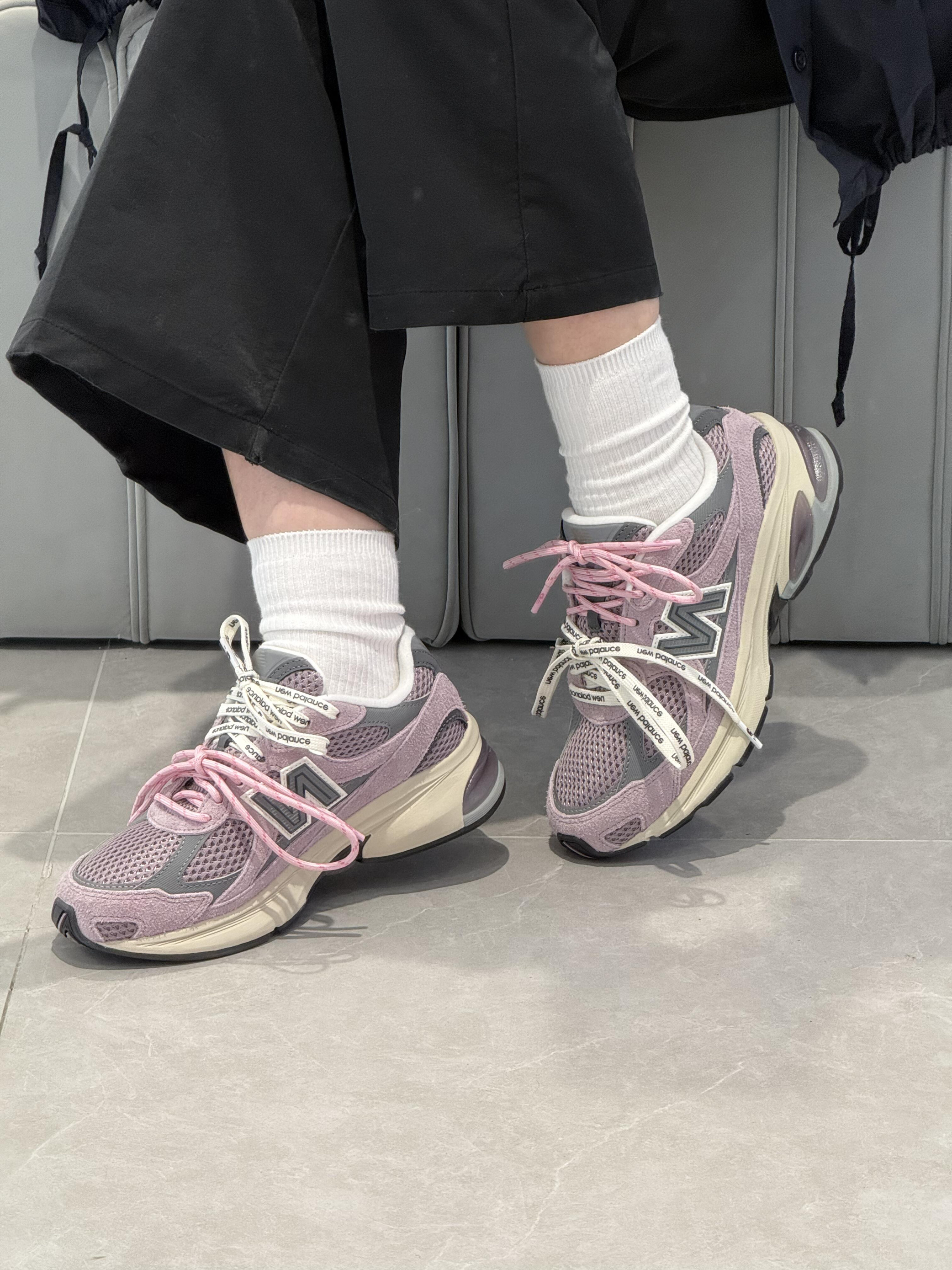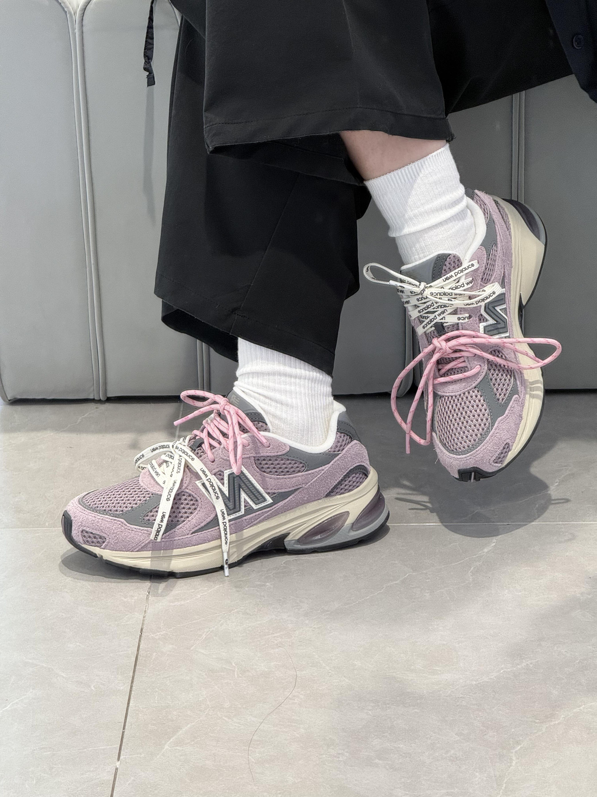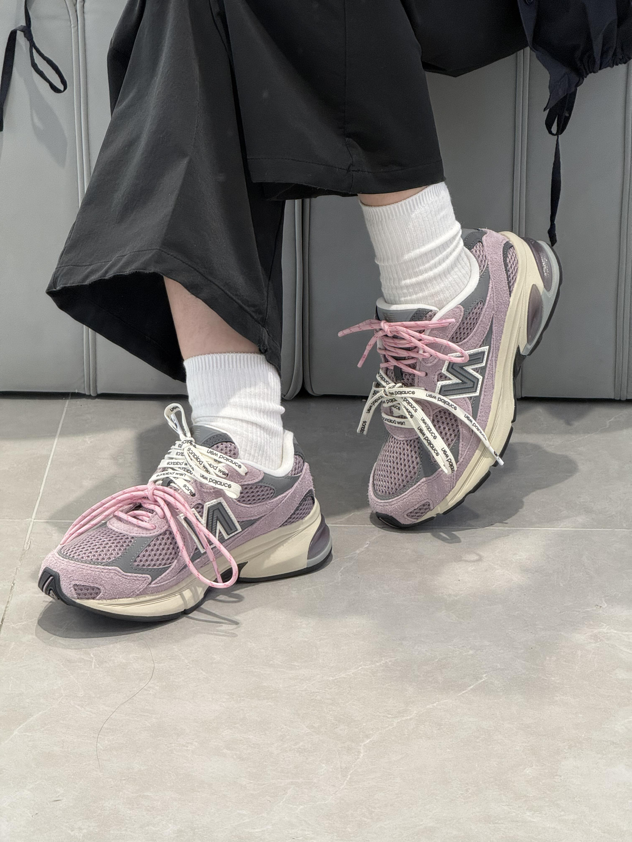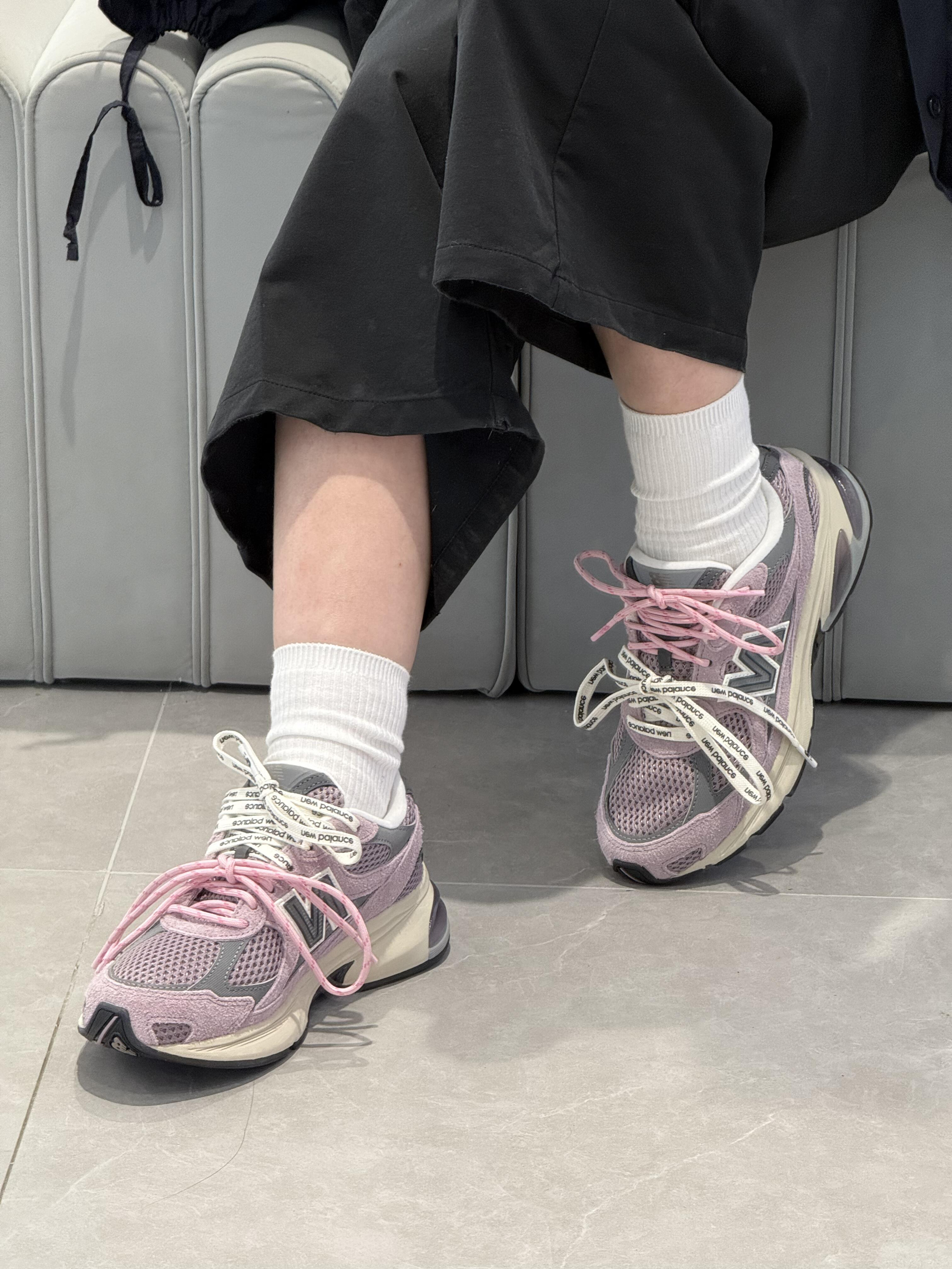 低头看见鞋侧粉灰撞色的瞬间,就懂了这双鞋的妙——它把“樱花落在潮牌卫衣上”的甜酷感裹在了脚边。 「粉雾里藏着的“甜酷小心机”」 • 配色是氛围王炸:淡粉搭浅灰的雾感撞色,像把“褪色樱花与水泥墙”穿在了脚上,甜柔又自带潮感;双色印花鞋带+网布拼接,跳出了单调,随便搭件基础衣都能有“不费力的小众感”; • 脚感是“踩软云级”适配:看着是厚底老爹鞋型,实际鞋底软弹到能走满一天的逛展路,哪怕挤地铁、...