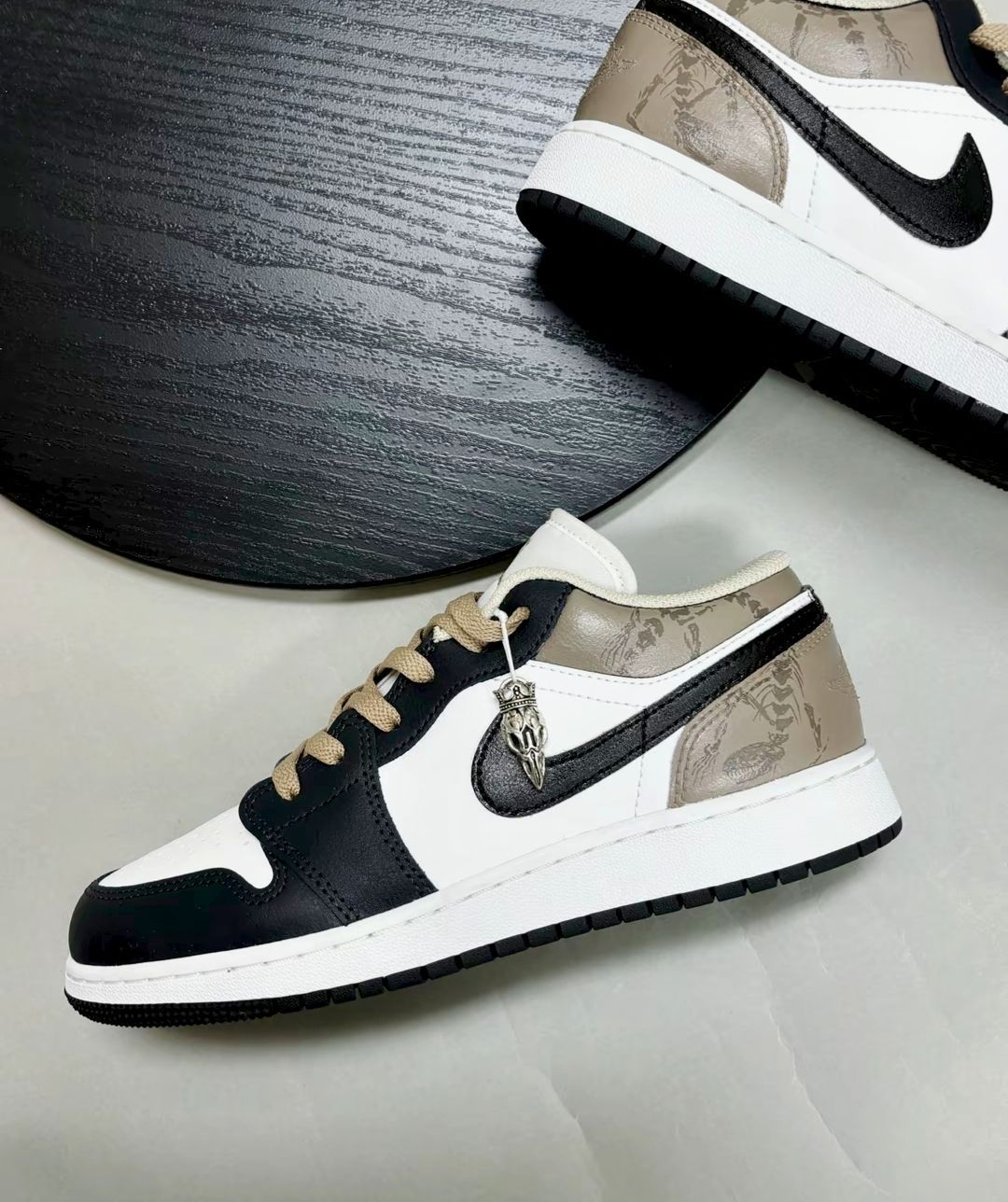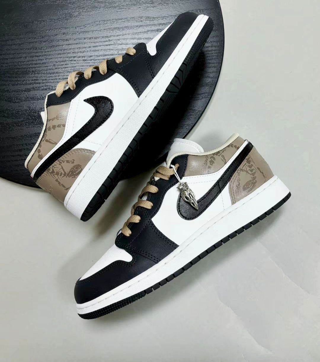 当暗黑美学邂逅复古球鞋潮流,这双 AJ1 低帮“骷髅图腾”限定款给出了绝佳答案。黑白棕的配色沉稳又富有层次,鞋身的骷髅图腾暗纹充满神秘质感,搭配带有骷髅头挂饰的鞋带,将暗黑风格拉满。皮革材质的拼接让鞋款兼具质感与复古韵味,无论是搭配工装风裤装打造街头潮酷感,还是与暗黑系裙装营造小众个性风,都能轻松成为造型的点睛之笔,为追求独特风格的鞋迷们带来一场暗黑复古的潮流盛宴。