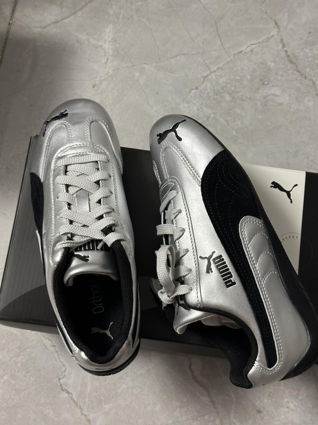 这双PUMA复古鞋直接戳中审美!银黑/灰黑双配色自带赛博机能感,金属光泽鞋面+经典美洲狮标,复古又潮酷。Ortholite鞋垫踩起来软乎乎,日常出街或搭运动风都适配,小众不撞款,脚感颜值双在线。