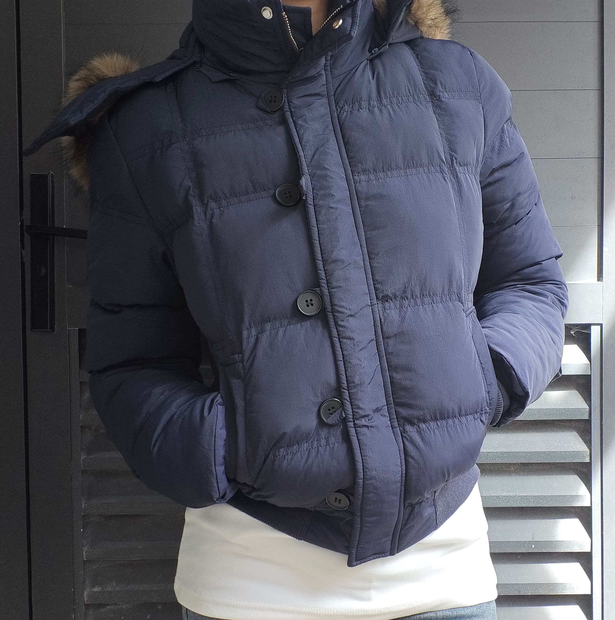 嘻嘻!冬季短裤棉服~ - 颜色:低调高级的藏青色 不挑肤色还特别显气质,秋冬穿自带沉稳氛围感; - 实用性:蓬松度看着就很保暖 口袋的设计也很方便,日常穿既好看又舒服~ - 设计:格纹绗缝让蓬松感更规整,不会显臃肿 大毛领+双排扣的组合复古又精致,细节里全是精致感;