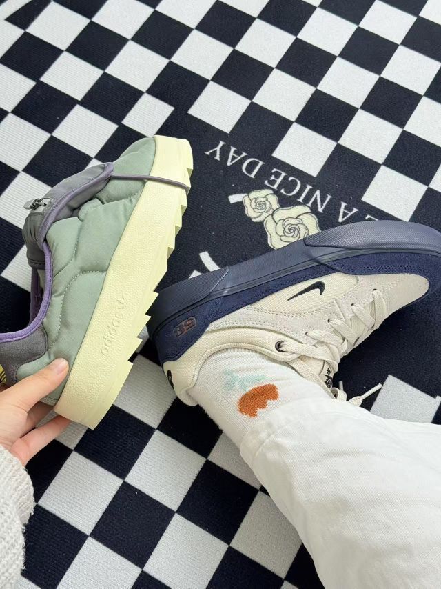 这两双鞋风格太不一样了,耐克的复古风经典耐看,阿迪这双“面包鞋”造型特别吸睛,走在街上回头率还挺高😊日常搭配牛仔裤很有那味儿;阿迪的棉服材质软乎乎的,冬天穿非常暖和。 不过得说个小缺点,阿迪这双鞋型有点臃肿,脚宽的朋友穿可能会觉得有点挤。舒适度方面,耐克鞋底偏硬,长时间走路脚底板会有点酸;阿迪的鞋底倒是挺软和,但透气性一般,只适合冬天穿。 胜在它们的设计都很有特色,耐克的复古感和阿迪的小众...