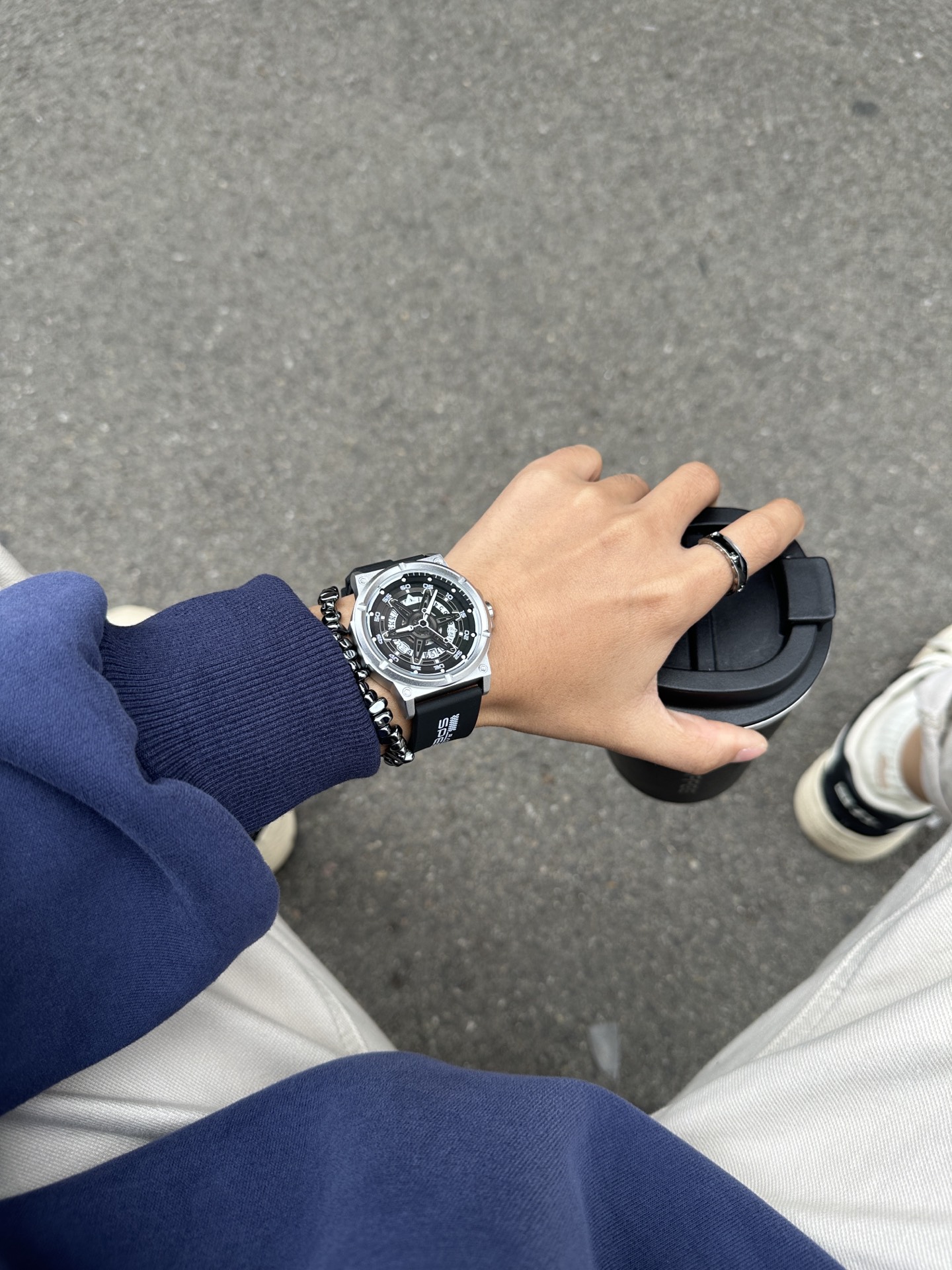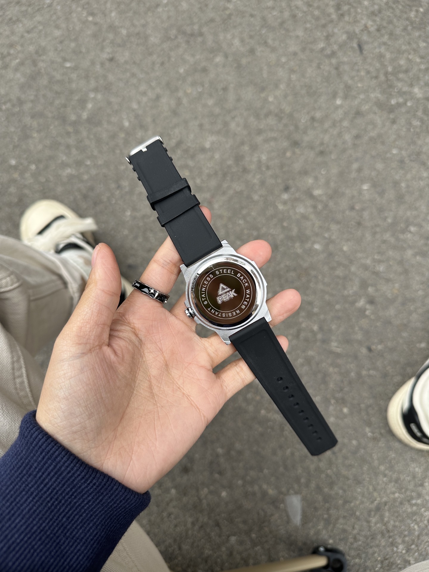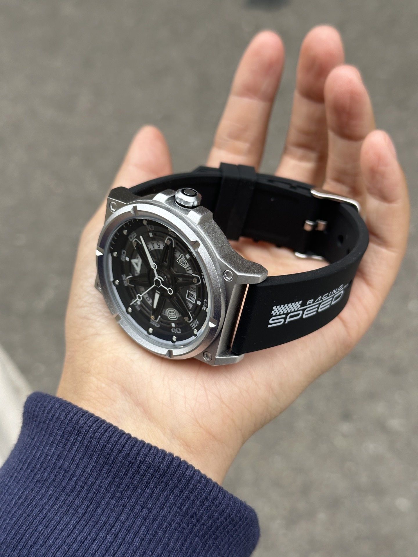 今天在学校老有同学瞅我左手,中午有人问我是不是换新表了才反应过来~银灰金属表壳配黑硅胶表带,多层表盘设计还有3D立体感,就是表径大,手腕细的可能得考虑下,我戴着倒挺合适😎