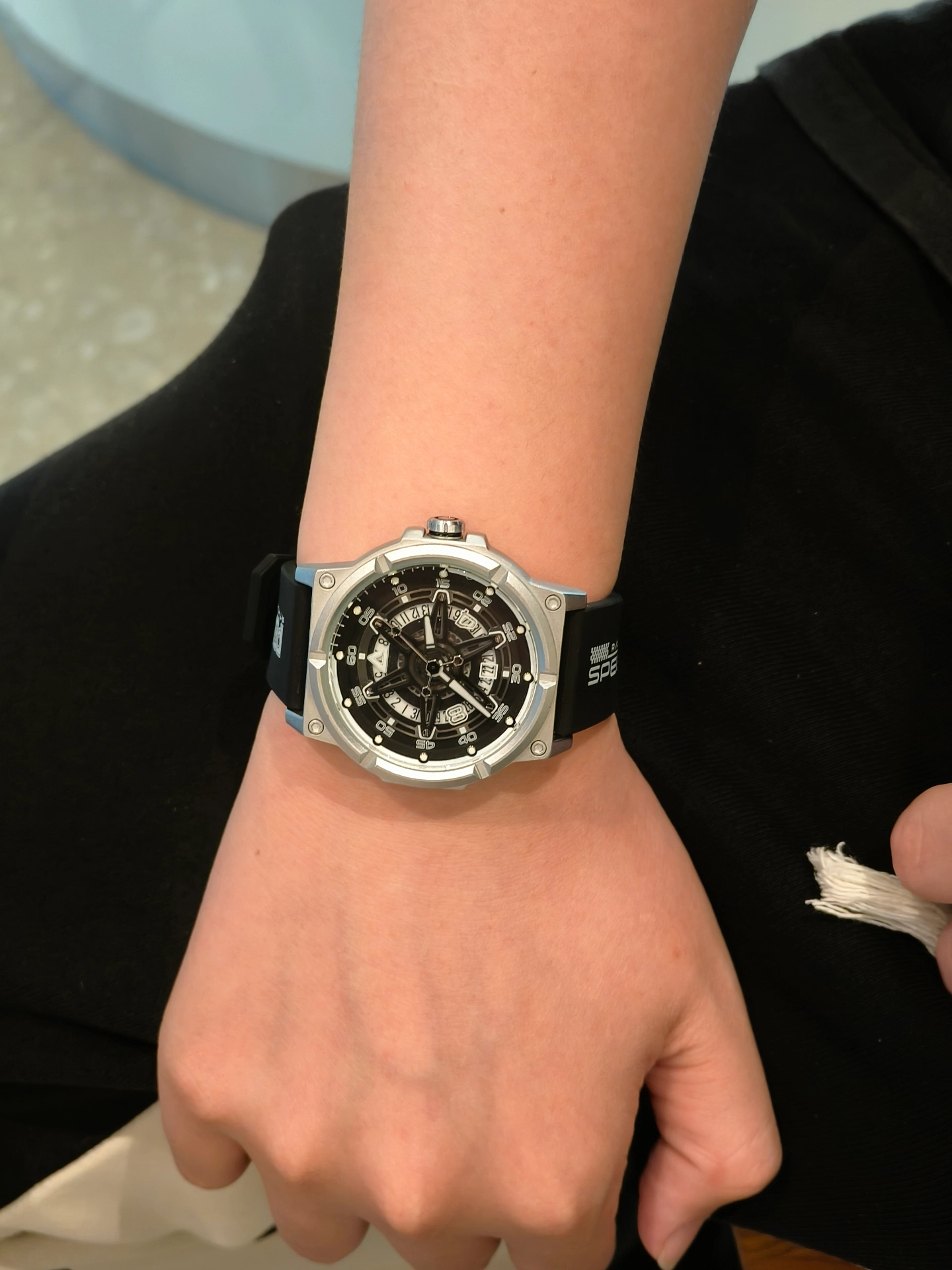 给老弟挑礼物挖到个宝!这表晚上有荧光星星✨ 男生看了能不心动? 我先试戴了下,硅胶表带贴手腕,运动时也没束缚感~ 不过表盘对我这种细手腕女生来说,确实大了点🤣 但老弟那壮实手腕戴肯定帅! 别的弟弟有的,我弟也得安排上,主打一个宠弟狂魔人设不倒~