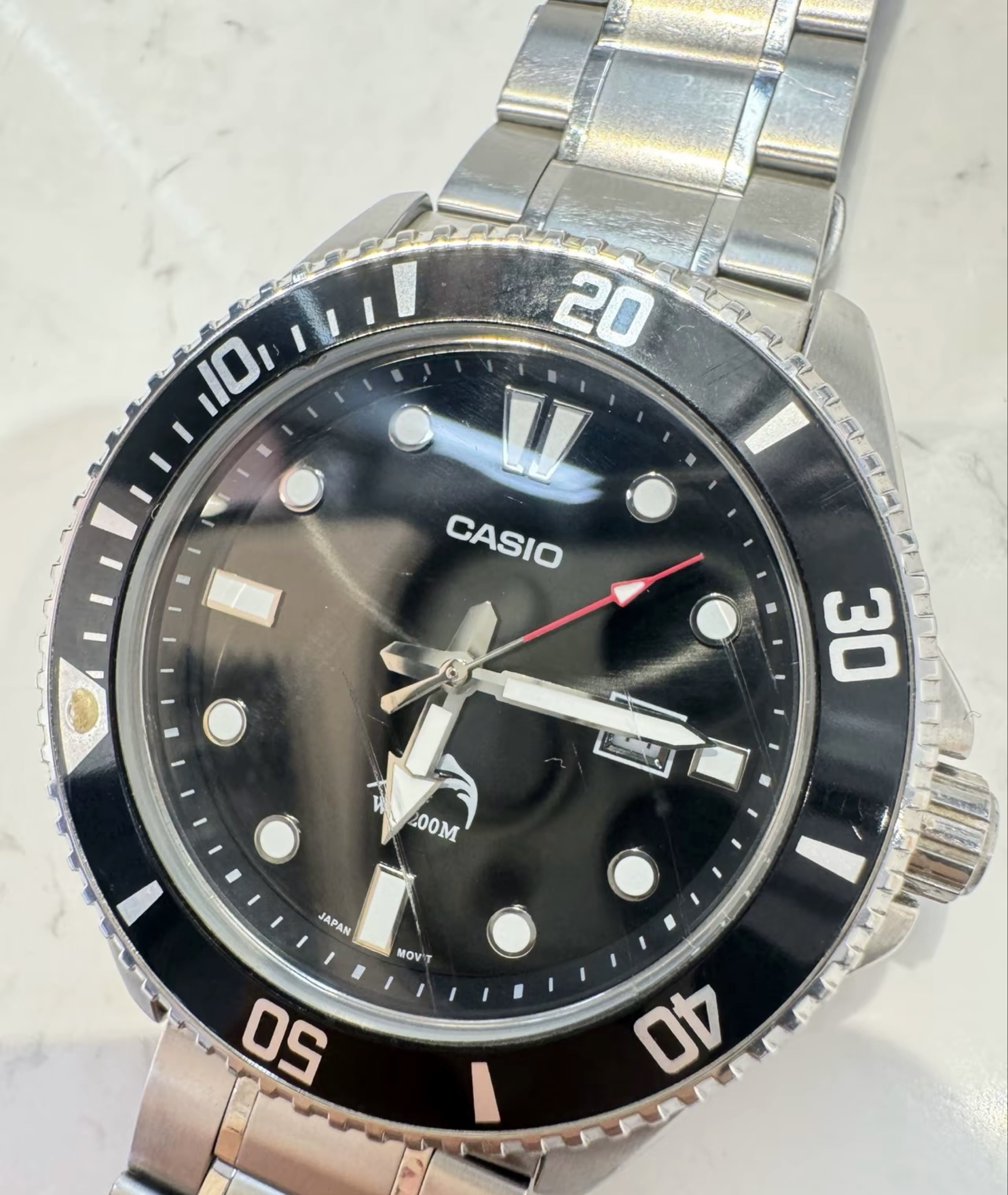 我这种懒人戴表就图省心!这表太阳能机芯,有光就走,不用操心换电池~39mm表盘我手腕戴着刚好,不夸张。蓝色表盘低调,阳光下还有细纹,质感绝! 就是钢表带刚戴有点硬,戴几天就贴合了~100米防水,洗手洗脸不用摘,日常太方便啦👏 商务场合戴也很合适,送男友也超有面~