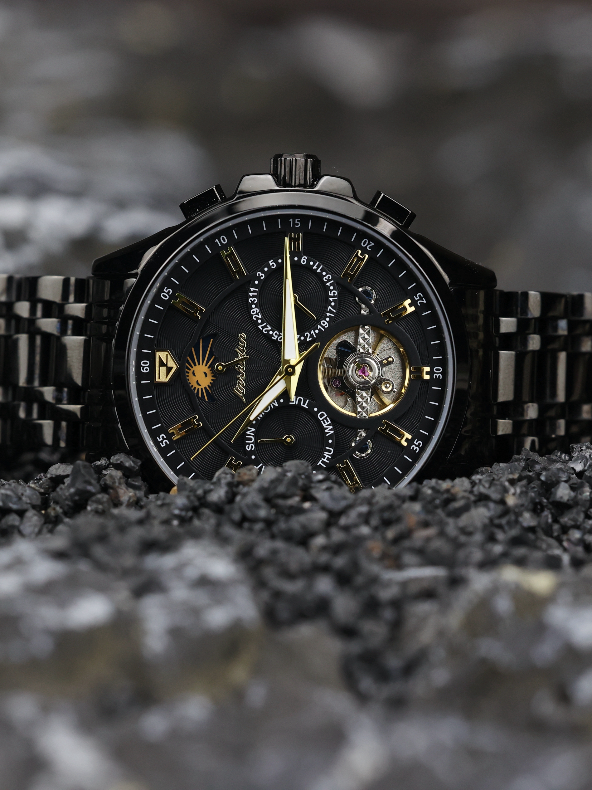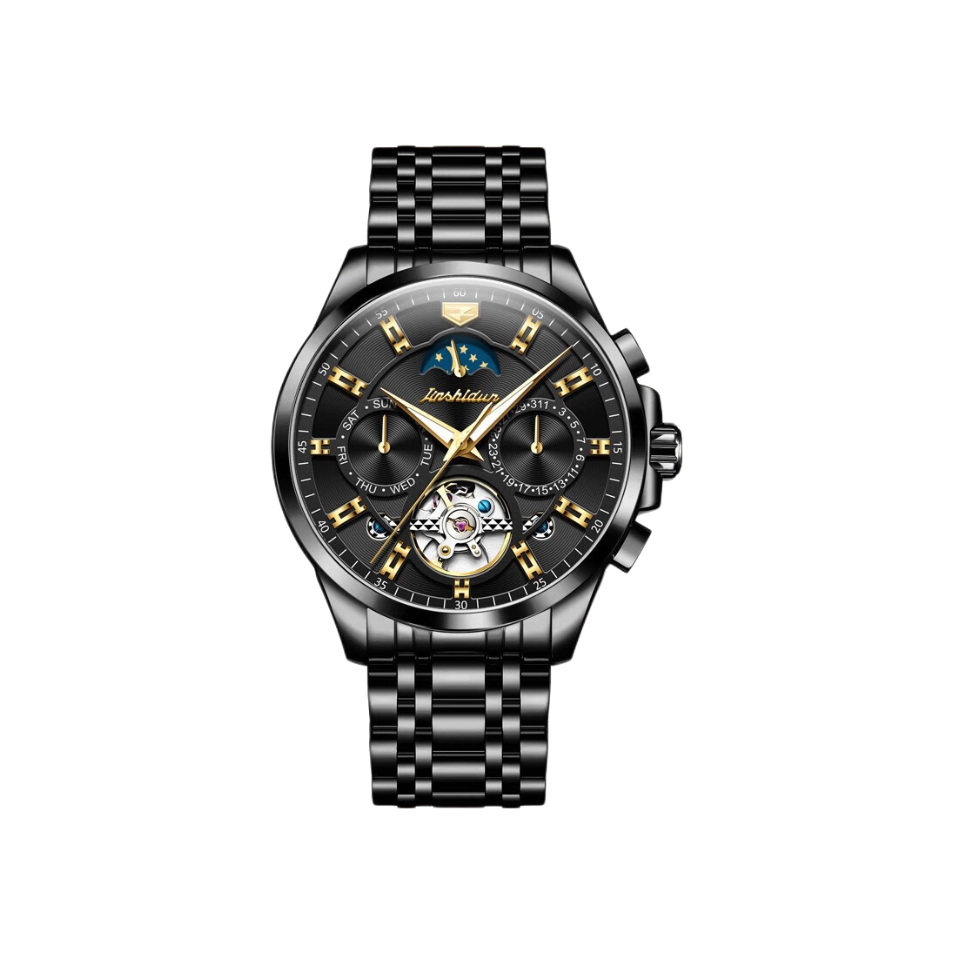 本篇笔记关联了JSDUN/金仕盾 40mm金属表带多功能时尚月相防水高档潮流机械男士手表 黑色等商品,为用户提供真实的使用体验和购买参考。