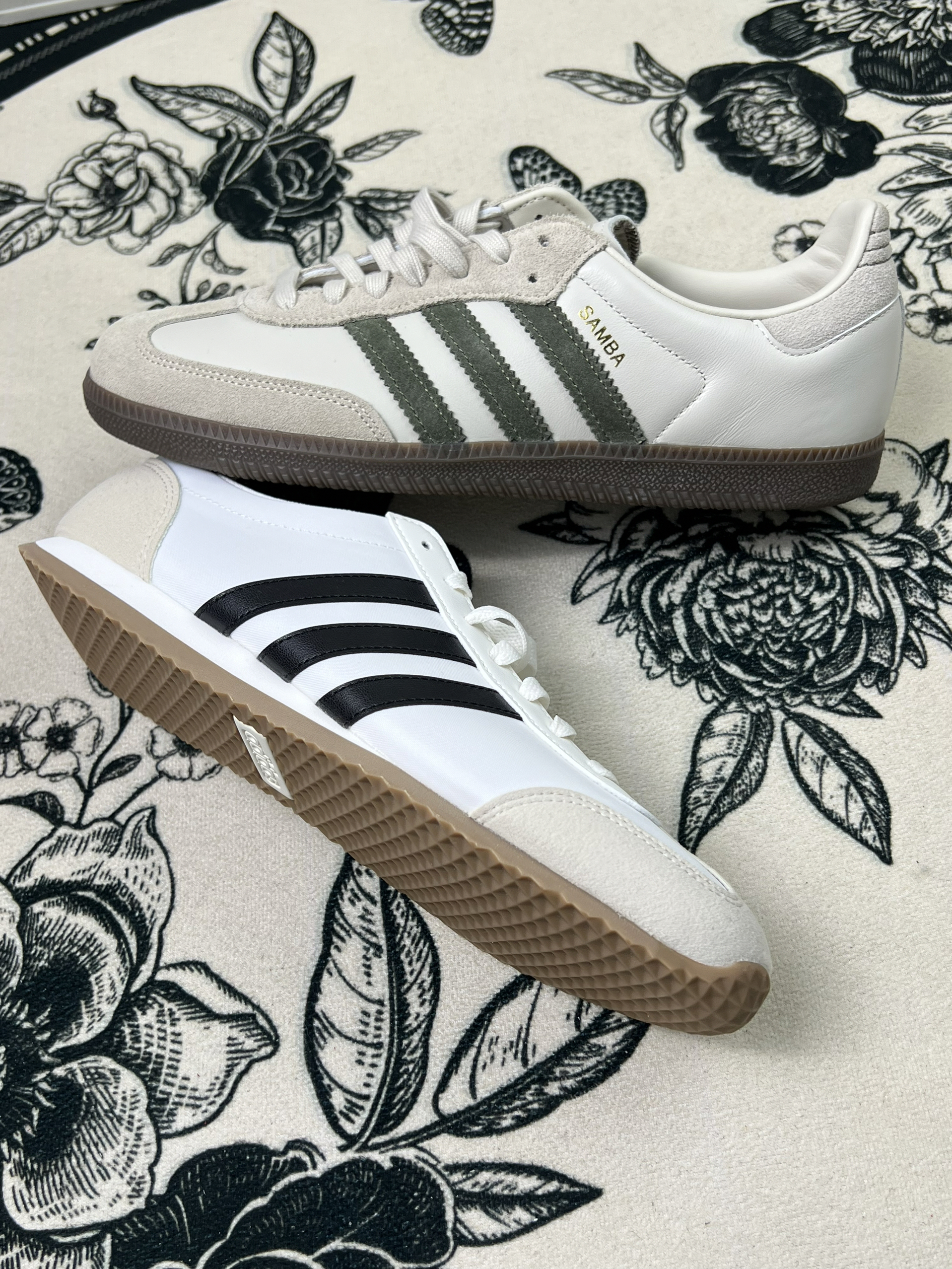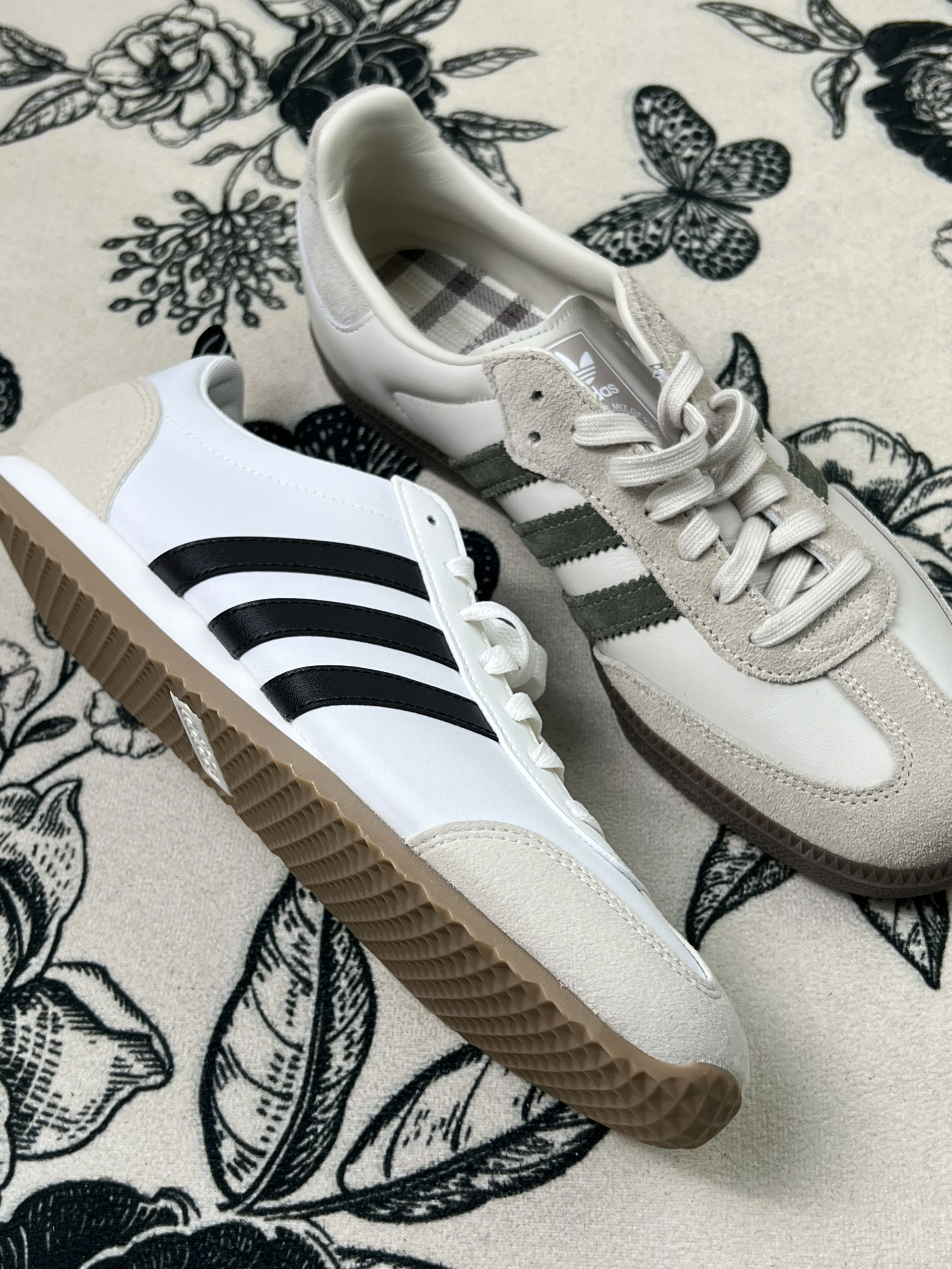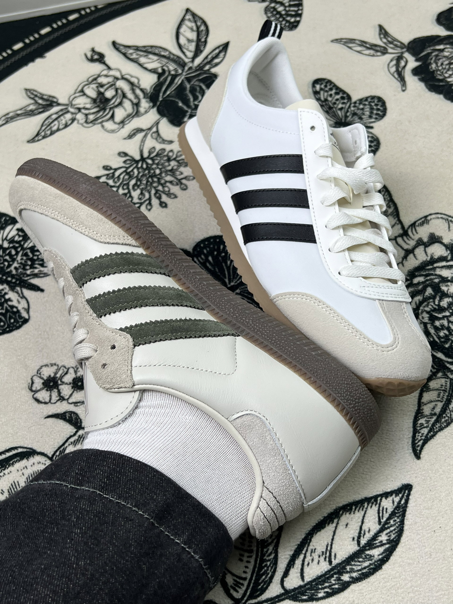 分享两双最近常穿的adidas三叶草鞋👟 左边这双鞋面是帆布材质,夏天穿挺透气,但也有个明显问题——下雨天千万别穿,一沾湿就容易皱巴,干了之后痕迹也挺明显。鞋底是生胶底,走路时抓地力还行,但长时间走硬地,脚底板会有点酸。不过日常搭配休闲装是真的省心,黑白三条杠经典到没话说。 右边这双是皮质和翻毛皮拼接,质感看着不错,但翻毛皮部分特别容易脏,稍微蹭一下就有印子,打理起来得格外小心。鞋型偏复古...