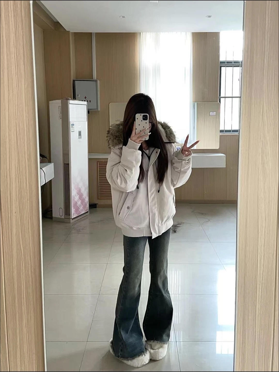 这件浅色系外套简直是秋冬穿搭神器!版型宽松不挑人,搭配牛仔裤简约又时尚,学生党通勤穿都很合适~