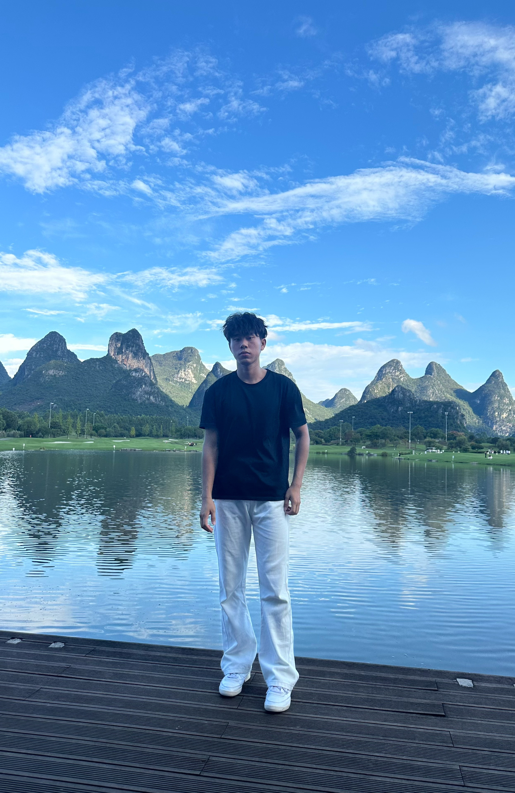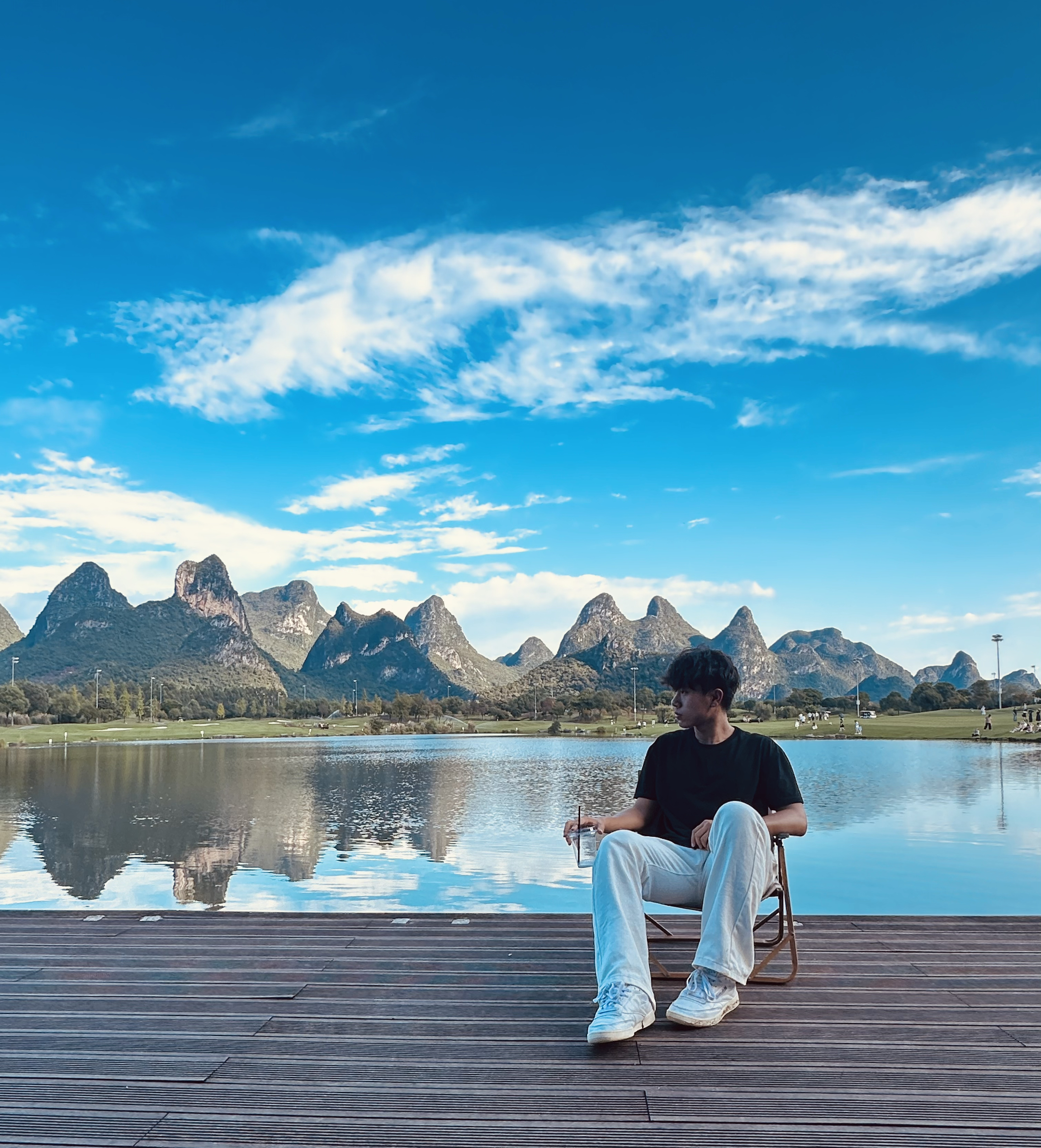 于是我驻足 享受无法复刻的瞬间 穿搭是黑色简约短袖T恤,简约大气易搭配;搭配白色阔腿休闲裤,垂坠感强显腿长,还能平衡上衣的厚重感;脚上是白色休闲鞋,与裤子颜色呼应,整体风格清爽协调。 搭配技巧上,利用黑与白的经典配色打造简约高级感,阔腿裤的宽松版型与修身T恤形成对比,在桂林山水的清新背景下,既休闲舒适又具时尚感,很适合户外休闲场景。 评论区你们觉得这套穿搭怎么样呀