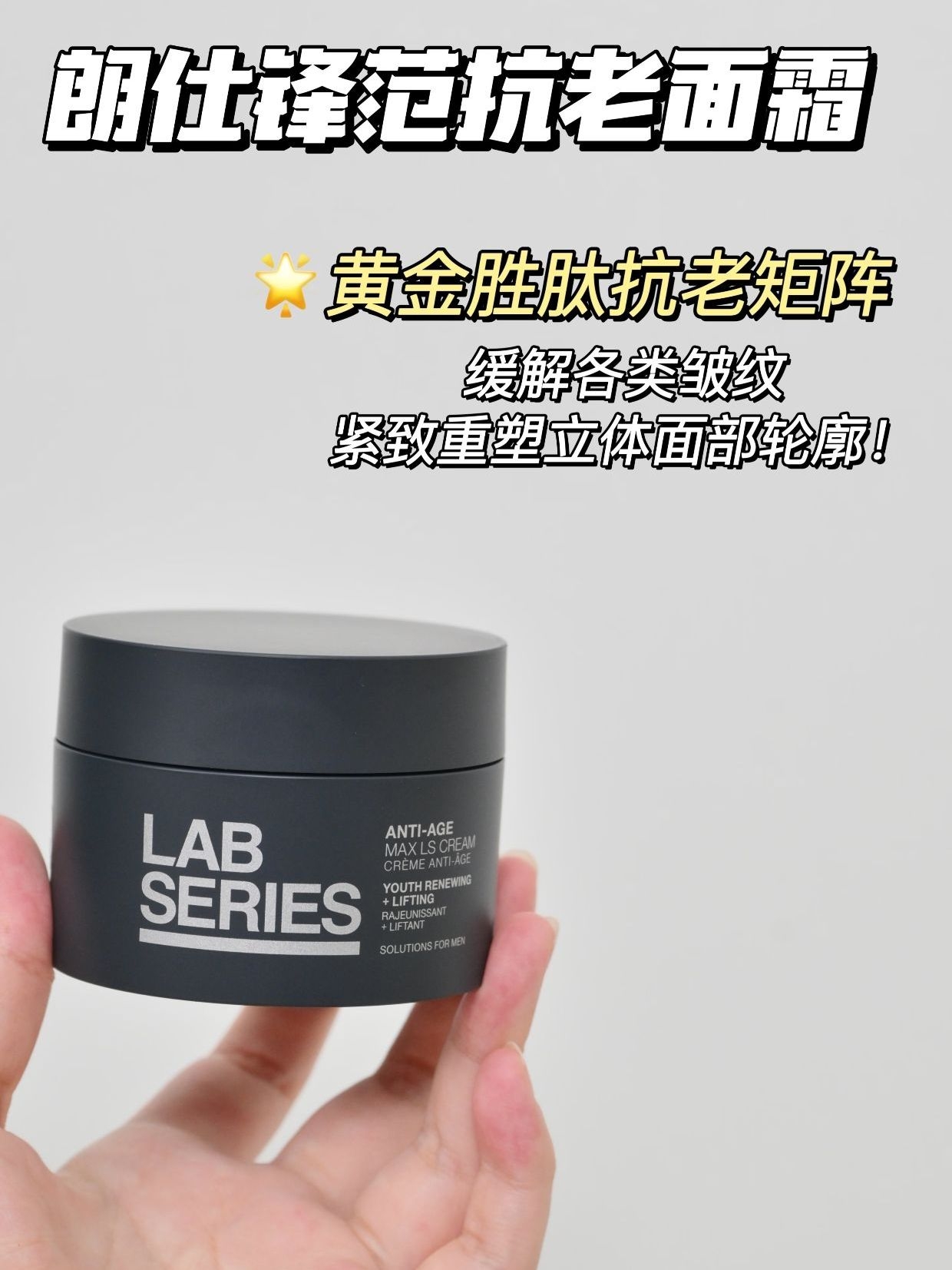 本篇笔记关联了LAB SERIES/朗仕 锋范抗皱钛金紧致活肤面霜 绵密 丰润 特润 50ml、【男士专用】LAB SERIES/朗仕 锋范紧致男士精华 补水保湿等商品,为用户提供真实的使用体验和购买参考。
