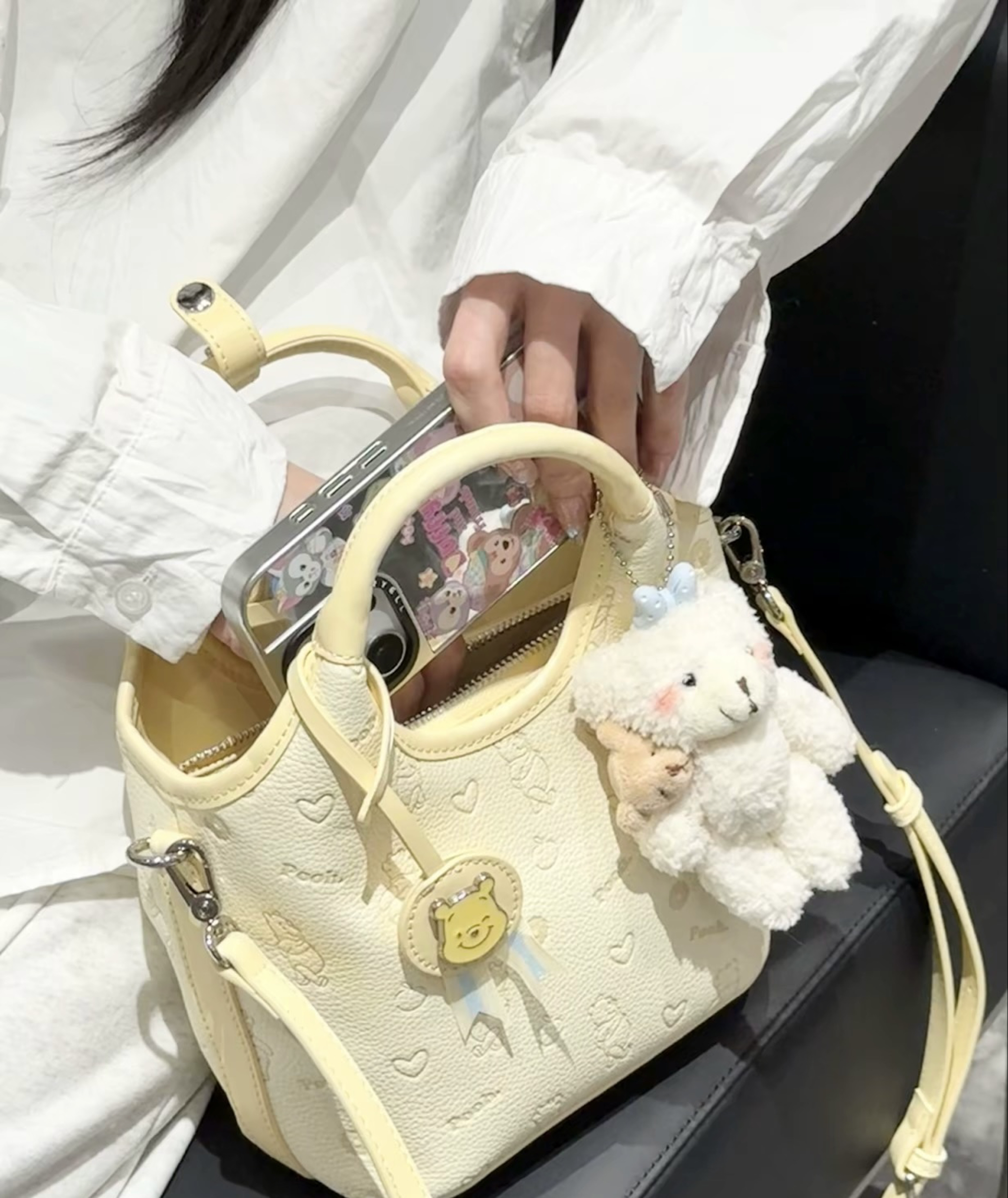 好喜欢 Disney/迪士尼 介个小熊维尼的菜篮子包包呀 奶fufu的配色简直泰有少女心啦 包身都是维尼小熊的压花敲可爱 实物质感蛮不错的 面料很细腻耐脏一擦就干净啦 上学或者出去玩随手一提就出门喽! #秋日松弛感背身上 #不买包的flag又破了 #我的百搭配神包 #高颜值手提包 #一眼心动的迪士尼单品