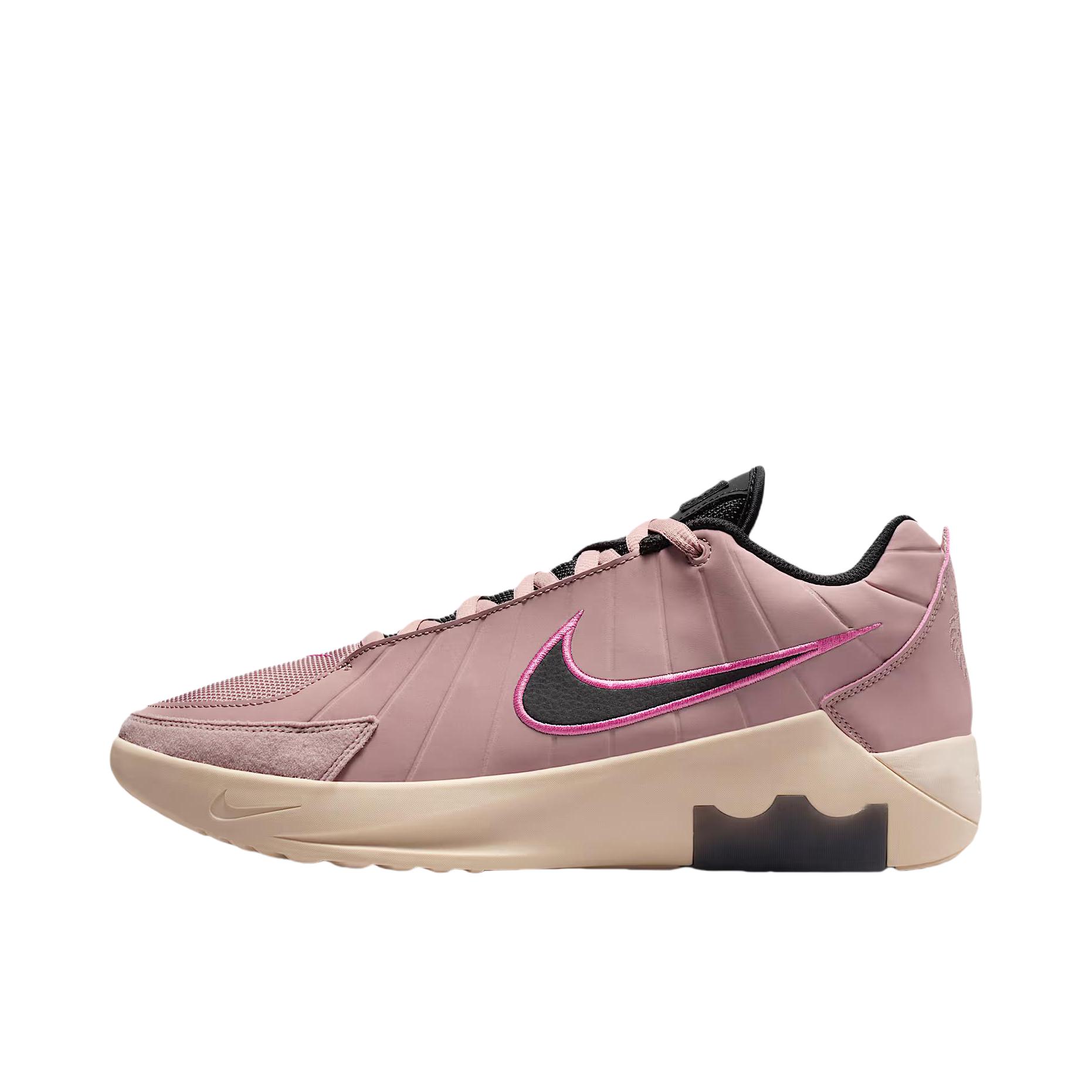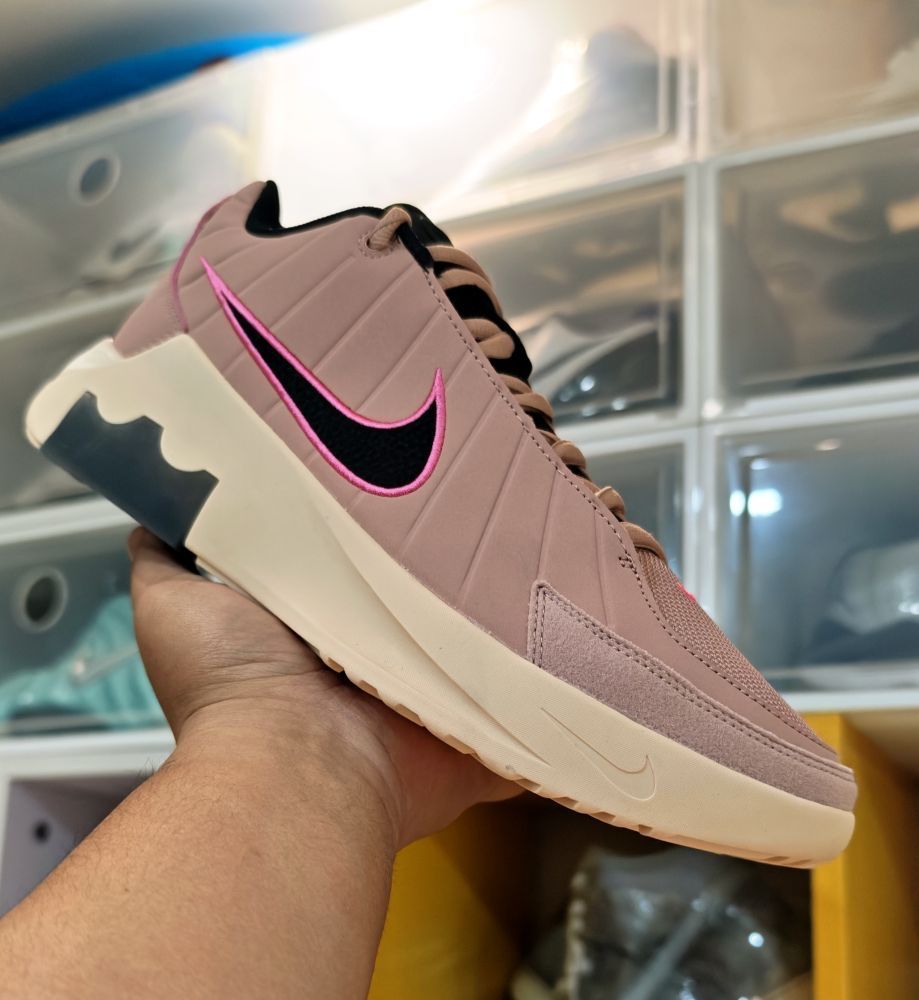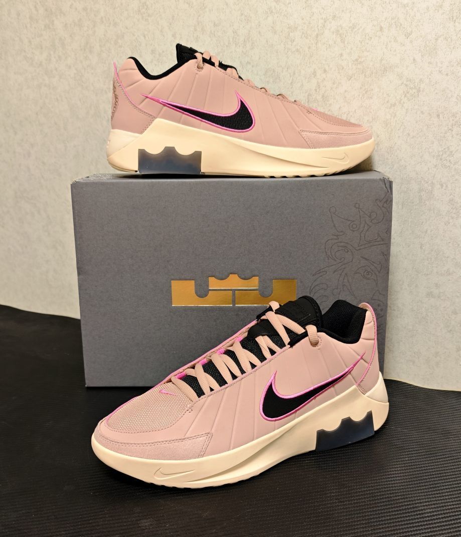 * 标志性Swoosh: 侧面的黑色Nike Swoosh被一道粉色的线条精巧地勾勒,增加了层次感和速度感。