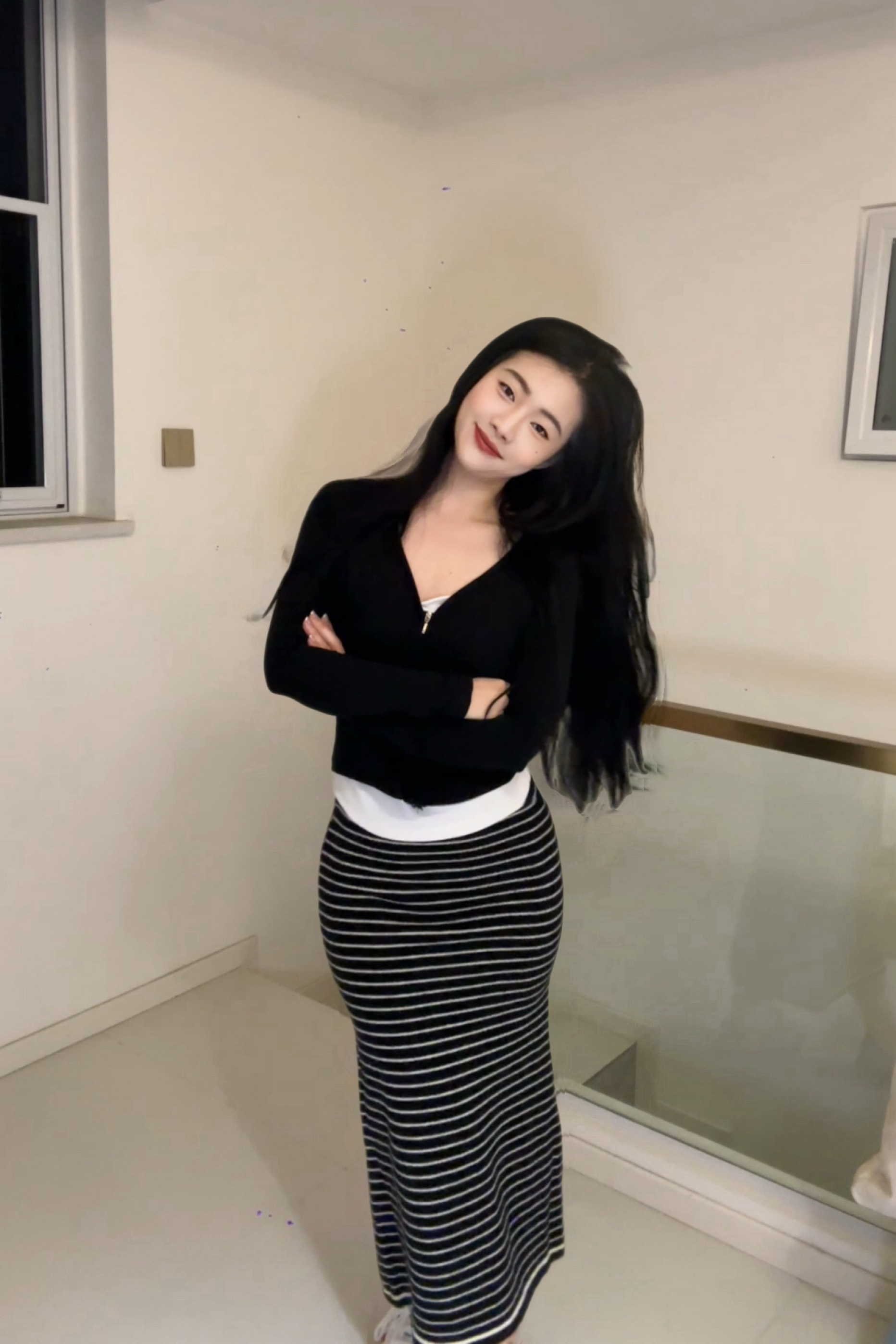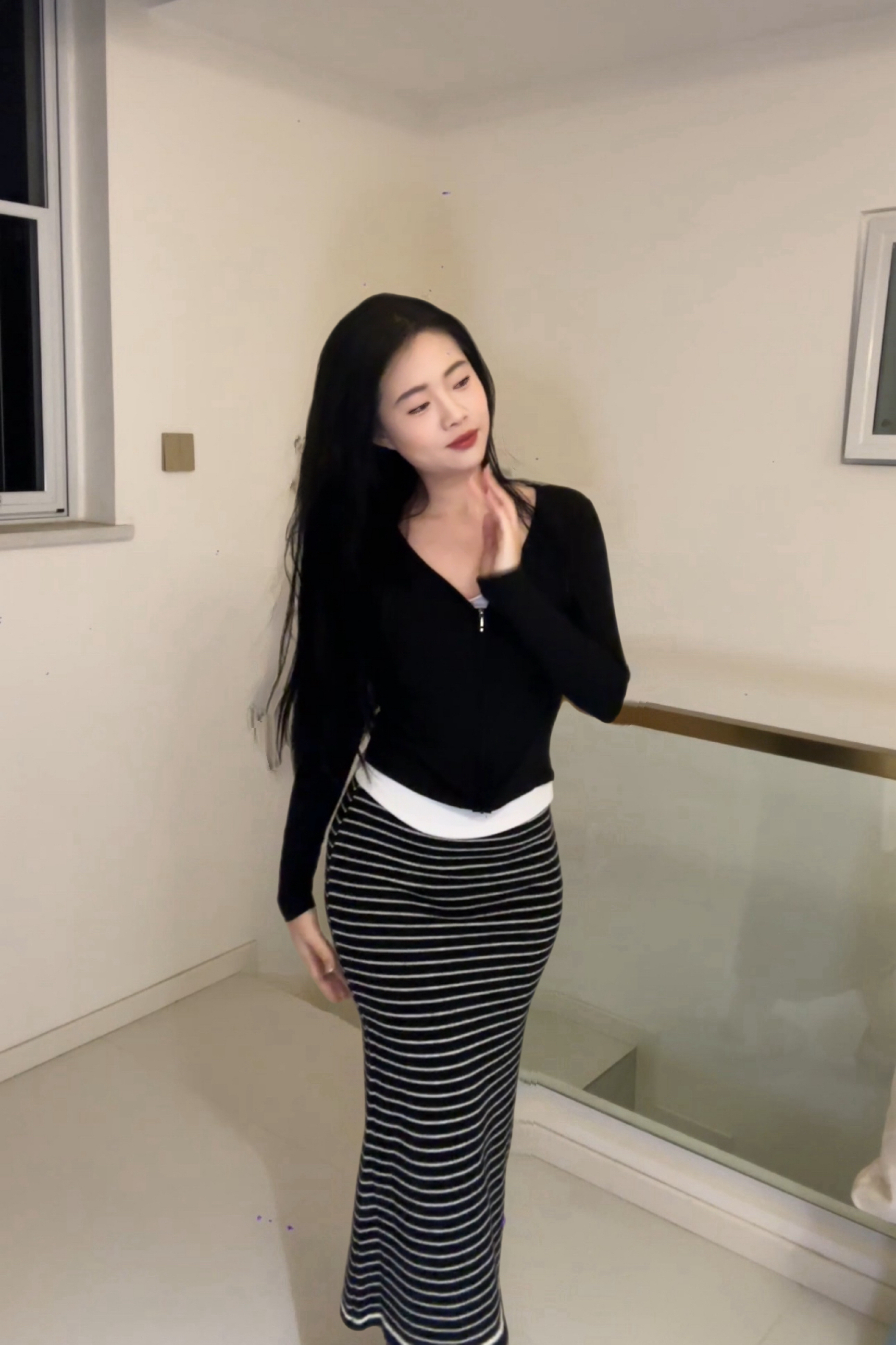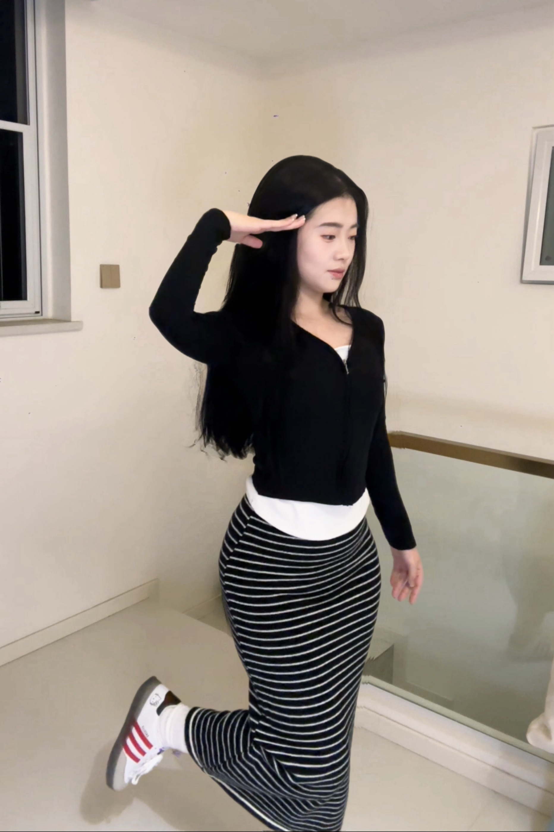 2025新款黑色拉链拼接T恤太戳了!假两件设计自带层次,修身版型超显腰细,拉链拉到锁骨还能露小性感✨。 搭titi小姐条纹羊毛裙绝配!2025款中长款超懂小个子,羊毛料春秋穿不冷不臃肿,条纹还能中和黑色的酷感。 踩阿迪Hello Kitty德训鞋👟,鞋侧Kitty标萌到心巴,走路软乎乎超舒服~通勤约会都出片,辣妹这套直接闭眼冲!