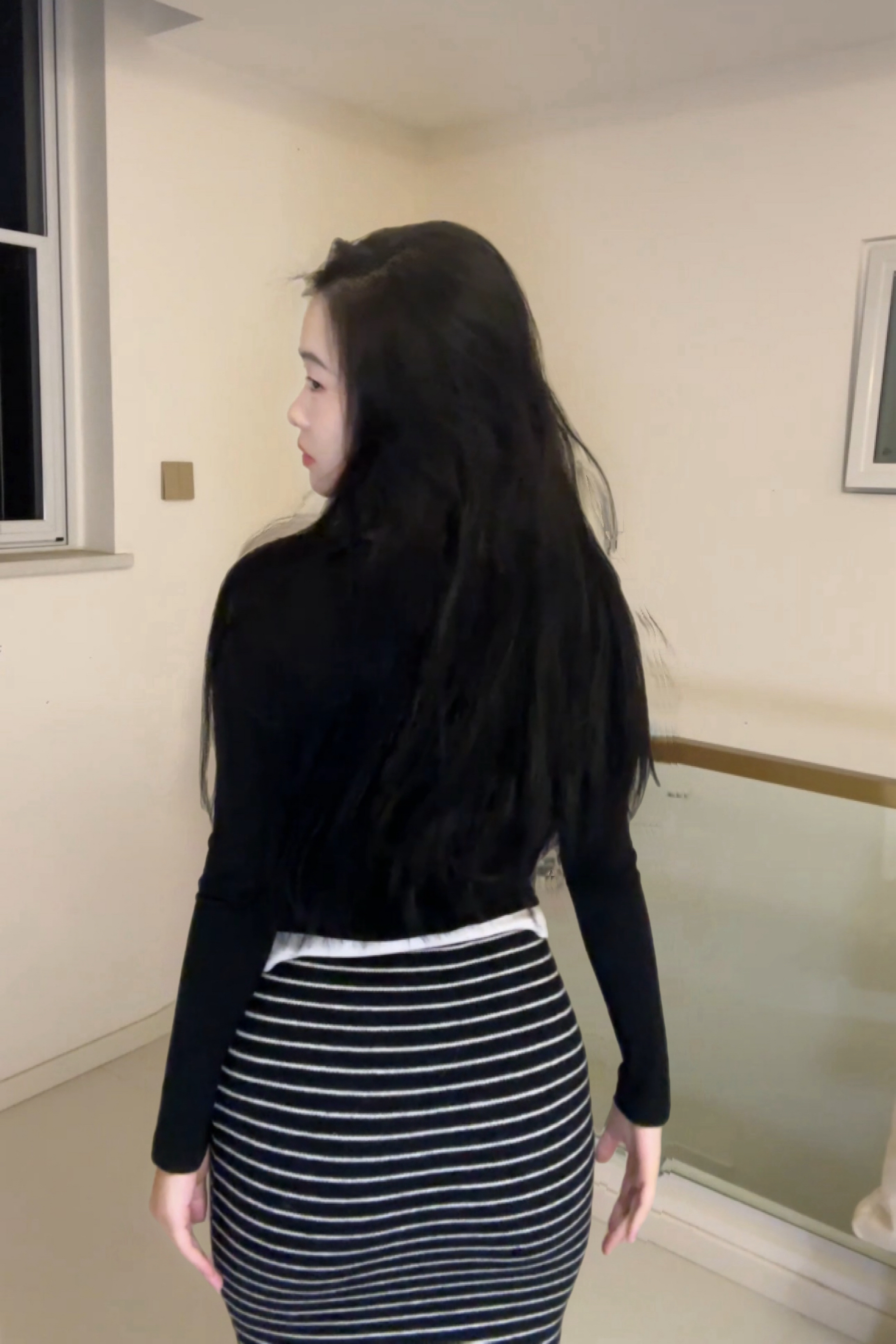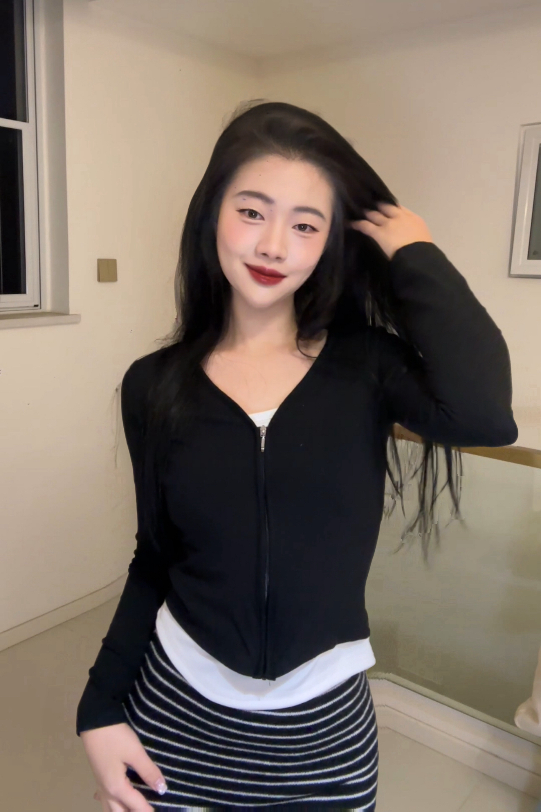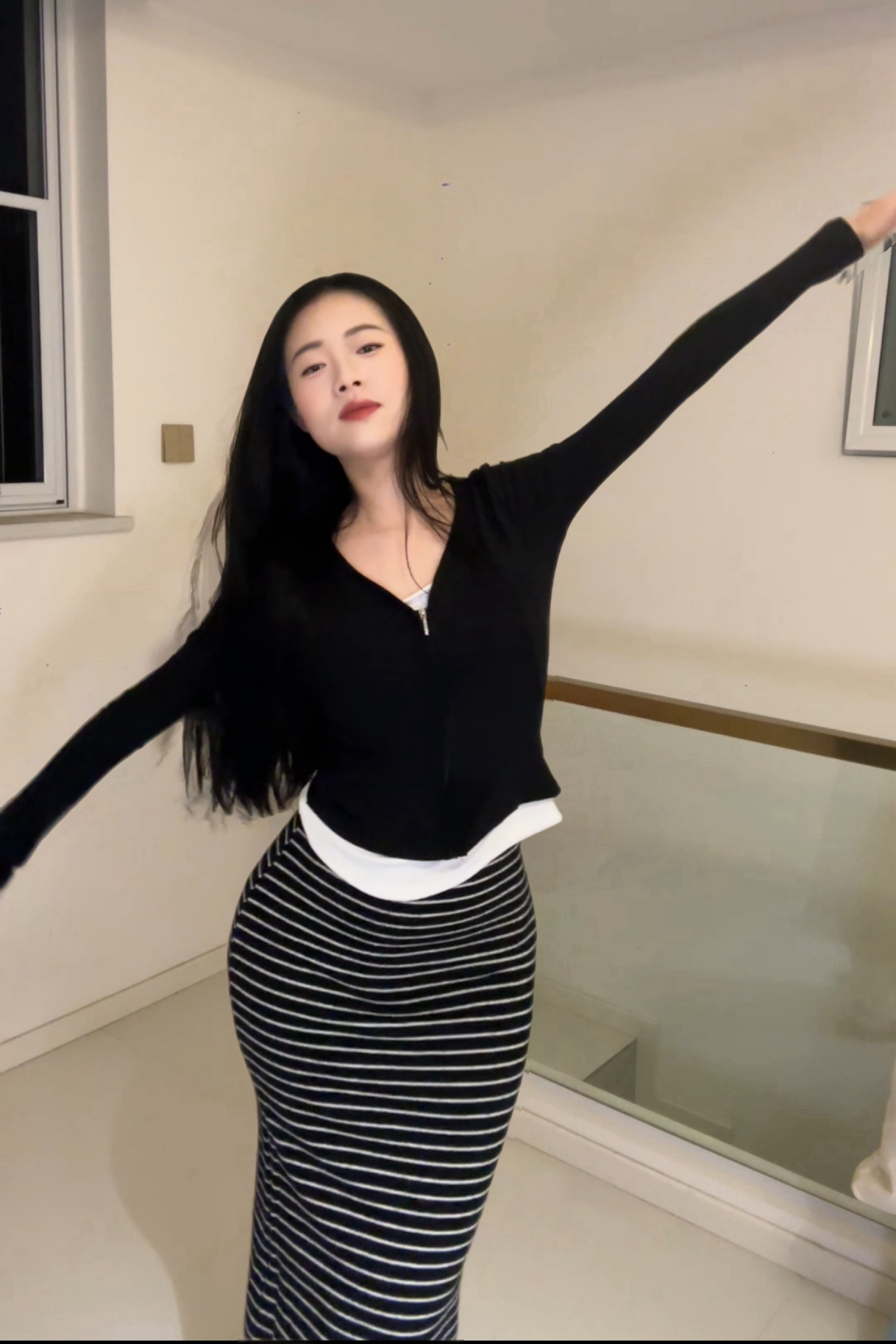 2025新款黑色拉链拼接T恤太戳了!假两件设计自带层次,修身版型超显腰细,拉链拉到锁骨还能露小性感✨。 搭titi小姐条纹羊毛裙绝配!2025款中长款超懂小个子,羊毛料春秋穿不冷不臃肿,条纹还能中和黑色的酷感。 踩阿迪Hello Kitty德训鞋👟,鞋侧Kitty标萌到心巴,走路软乎乎超舒服~通勤约会都出片,辣妹这套直接闭眼冲!