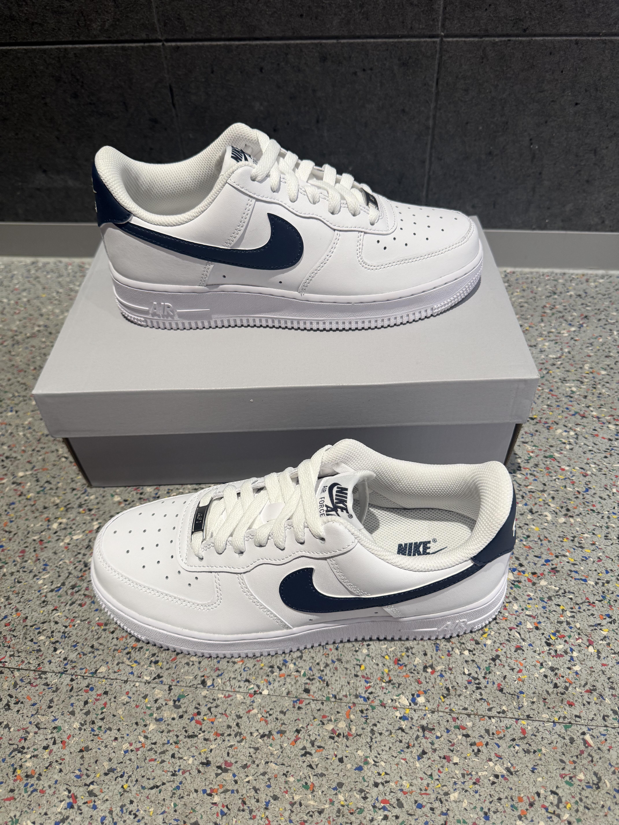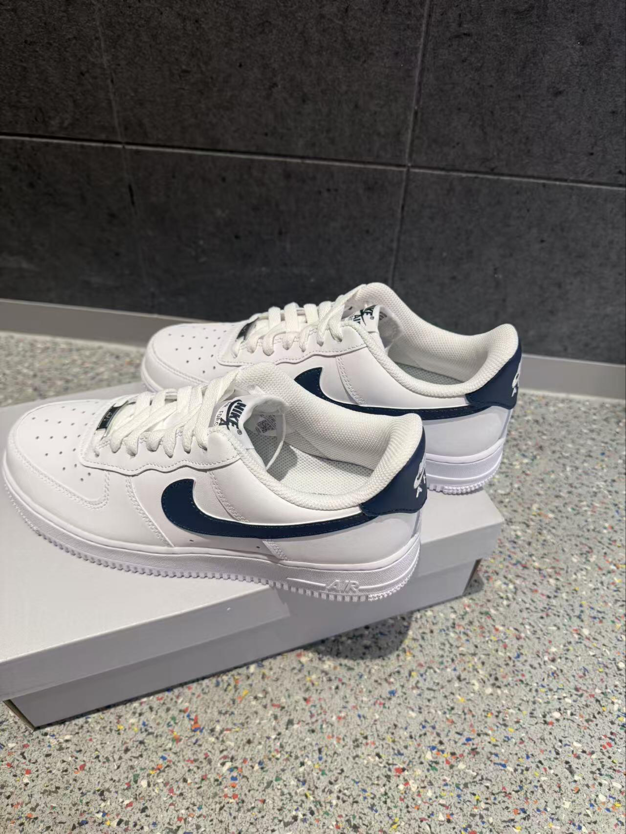 「它刚好接住你的穿搭」 是不是总缺一双“既能撑场面又能踩日常”的鞋?这双精准适配: • 经典AF1鞋型自带“百搭基因”,藏青勾在纯白基底上像“低调的点睛笔”,比全白款多了细节感却不张扬;皮质鞋面软而挺括,好打理还能适配各种季节;气垫脚感软弹不板脚,久站通勤也能稳住舒适。 • 解决搭配难题:别觉得AF1只能走街头风!它搭黑色直筒西装裤+白衬衫是“轻熟通勤感”,配浅蓝牛仔短裤+宽松T恤是“美式校...