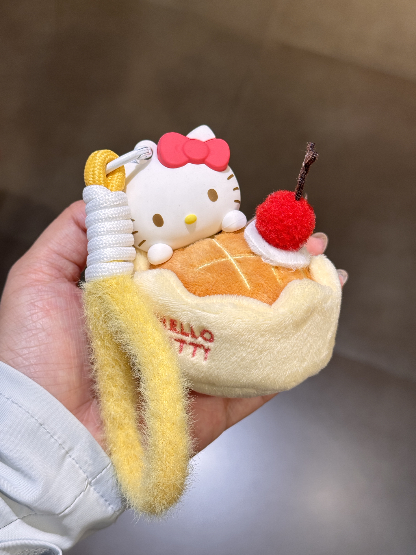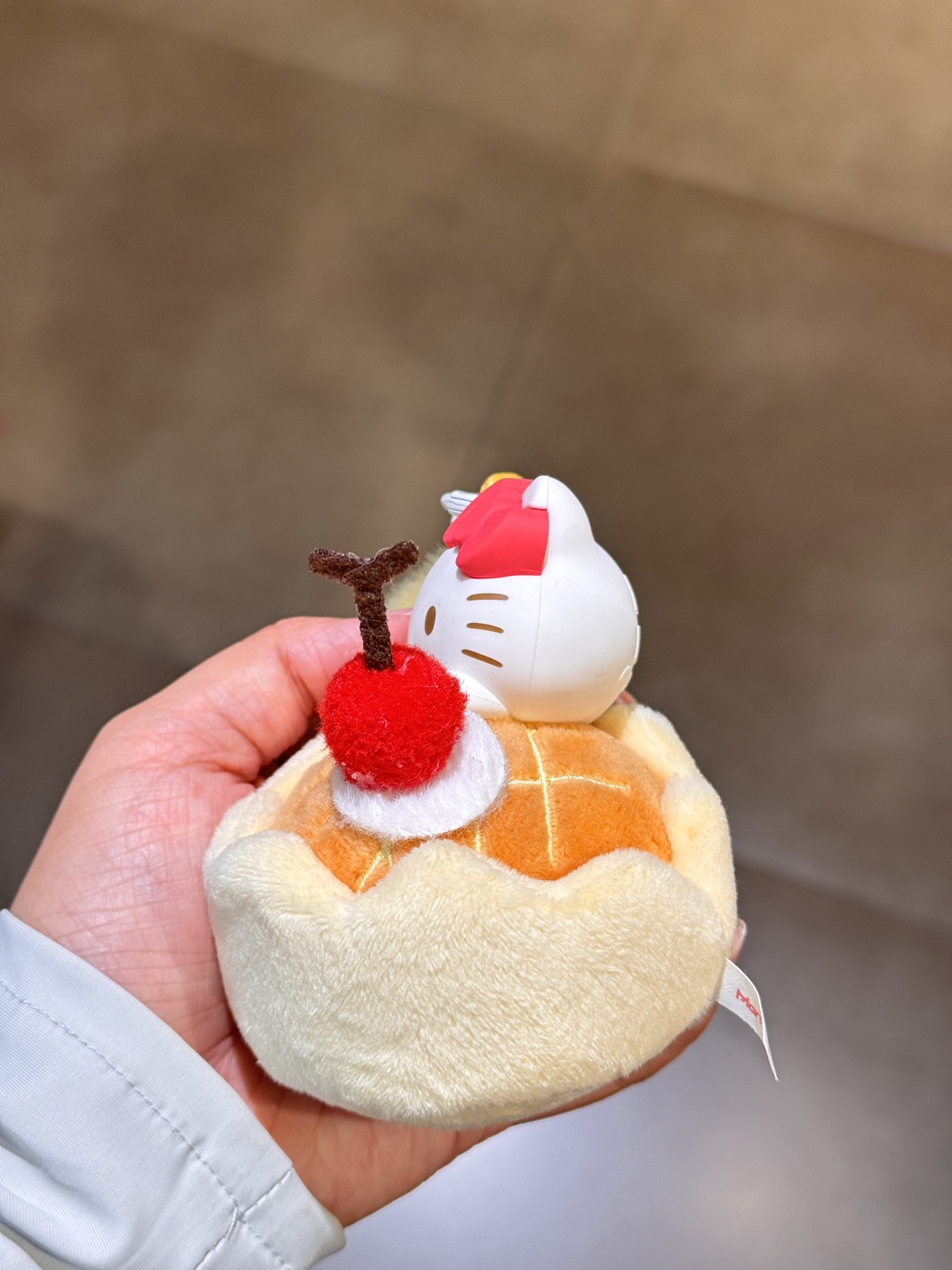 逛名创发现HelloKitty下午茶盲盒挂件,抽到的是带樱桃的小甜品造型,Kitty脸圆圆的好乖🥹 每只都是不同甜点设计,少女心拉满~不过盲盒就是有不确定性,要是能选款就更贴心啦,喜欢KT的宝可以冲!