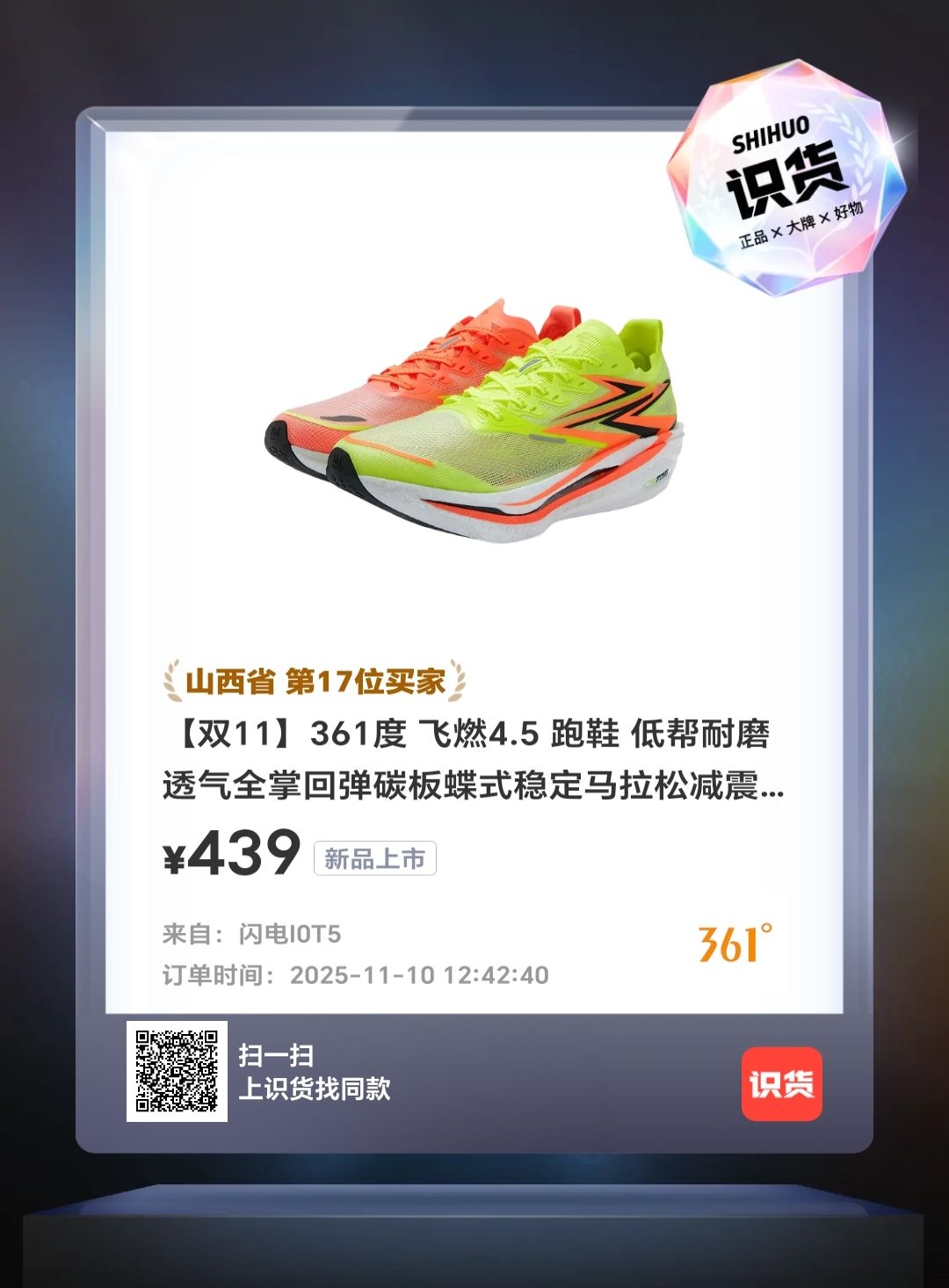 本篇笔记关联了361度 飞燃4.5MIX 跑鞋 竞速减震透气碳板田径训练回弹全掌体测马拉松轻便长跑 识货联名/三角梅等商品,为用户提供真实的使用体验和购买参考。