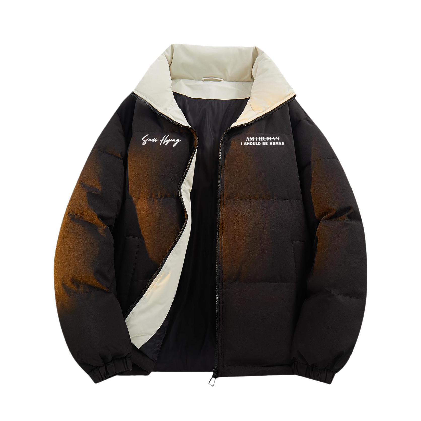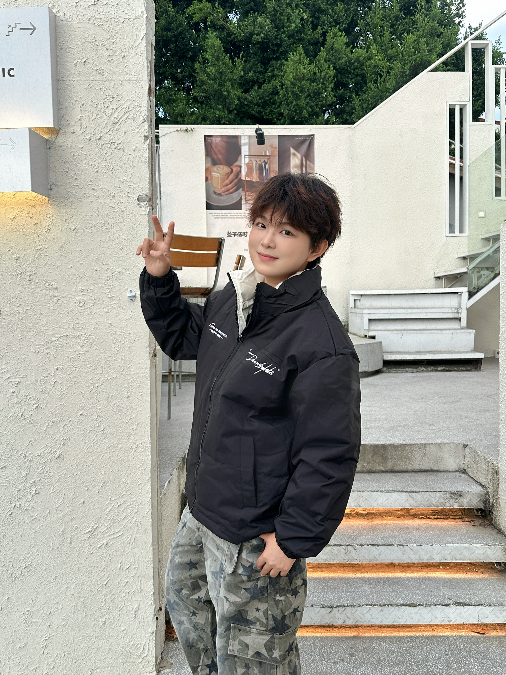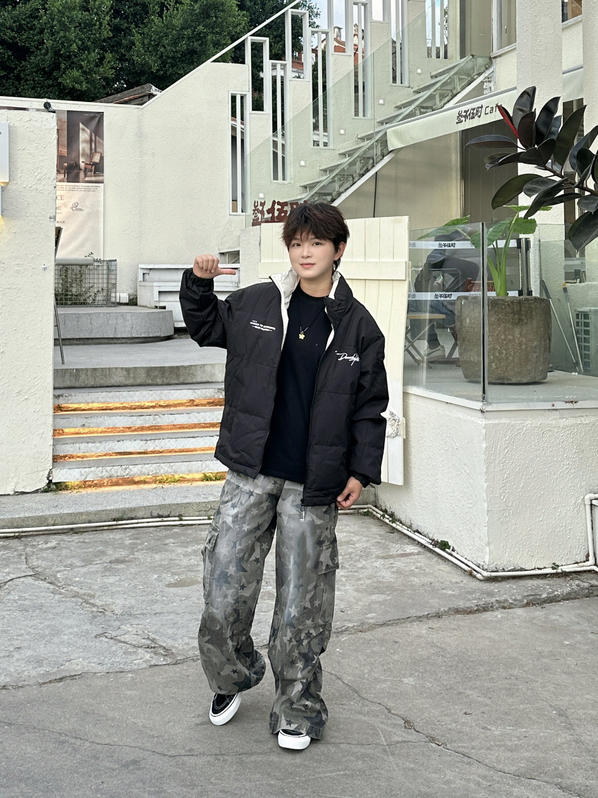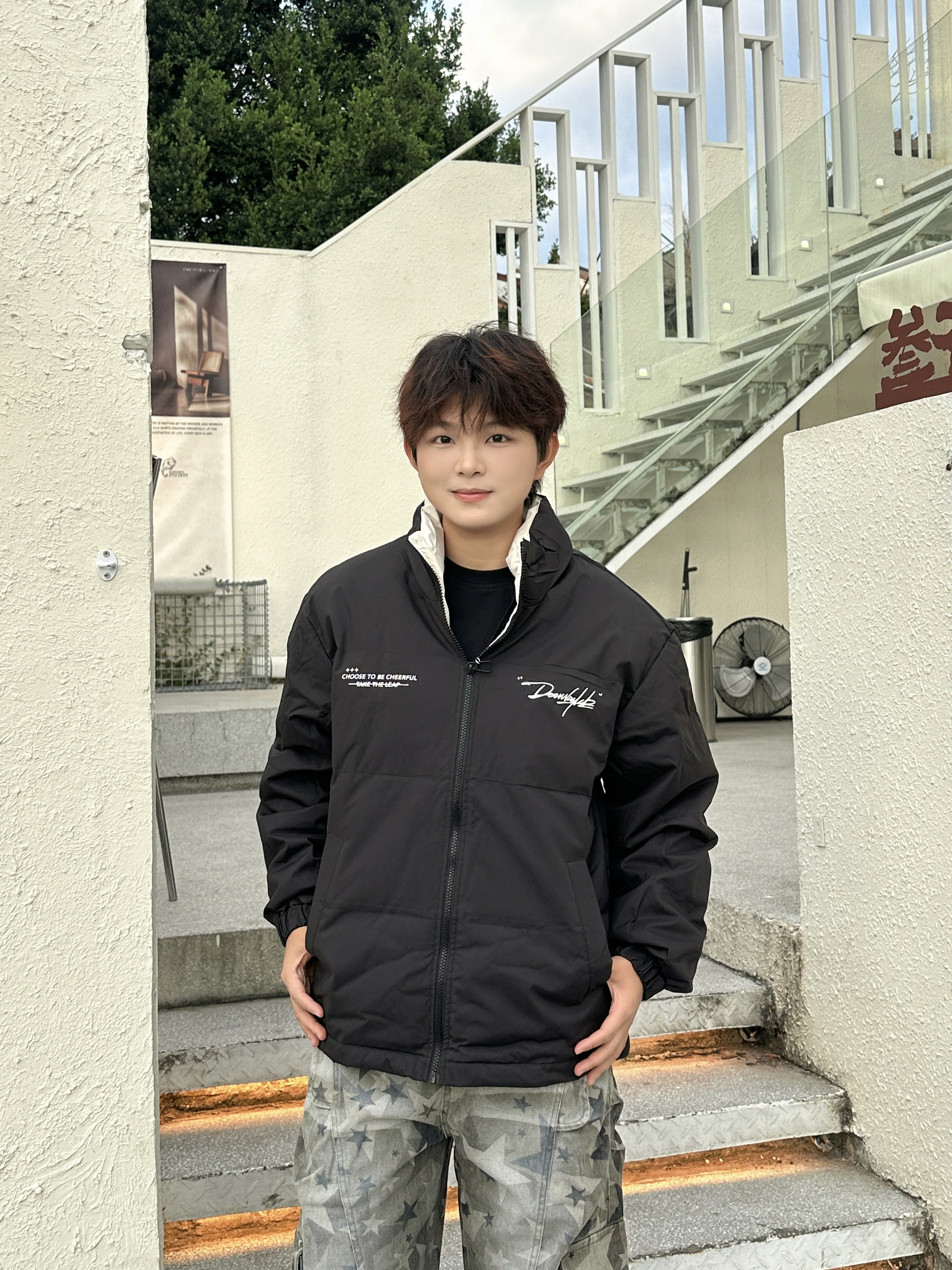 家人们快来看这件黑色羽绒服!😎 简约版型超百搭,胸口的白色字母设计还挺有细节感~内搭黑T,下身配条星星工装裤,街头潮酷感直接拉满!冬天穿它保暖又时髦,出门炸街绝绝子~咱就是说,这种风格谁不爱啊!👍