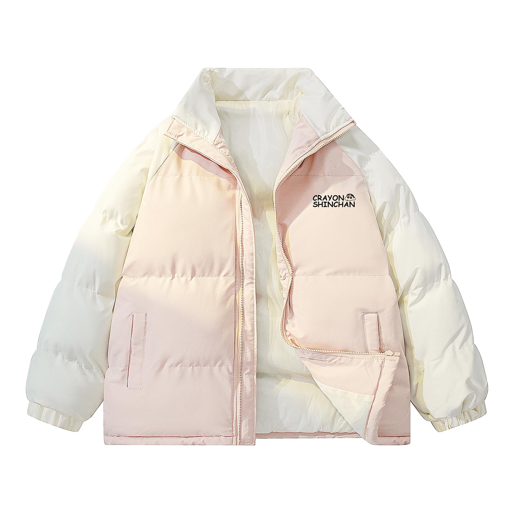 hi朋友们,蜡笔小新棉服太好看了! 浅浅的粉色恰到好处,粉白拼接好漂亮哇 🦁️穿s码,加厚款灰常保暖~带上小新和他的朋友们溜街吧