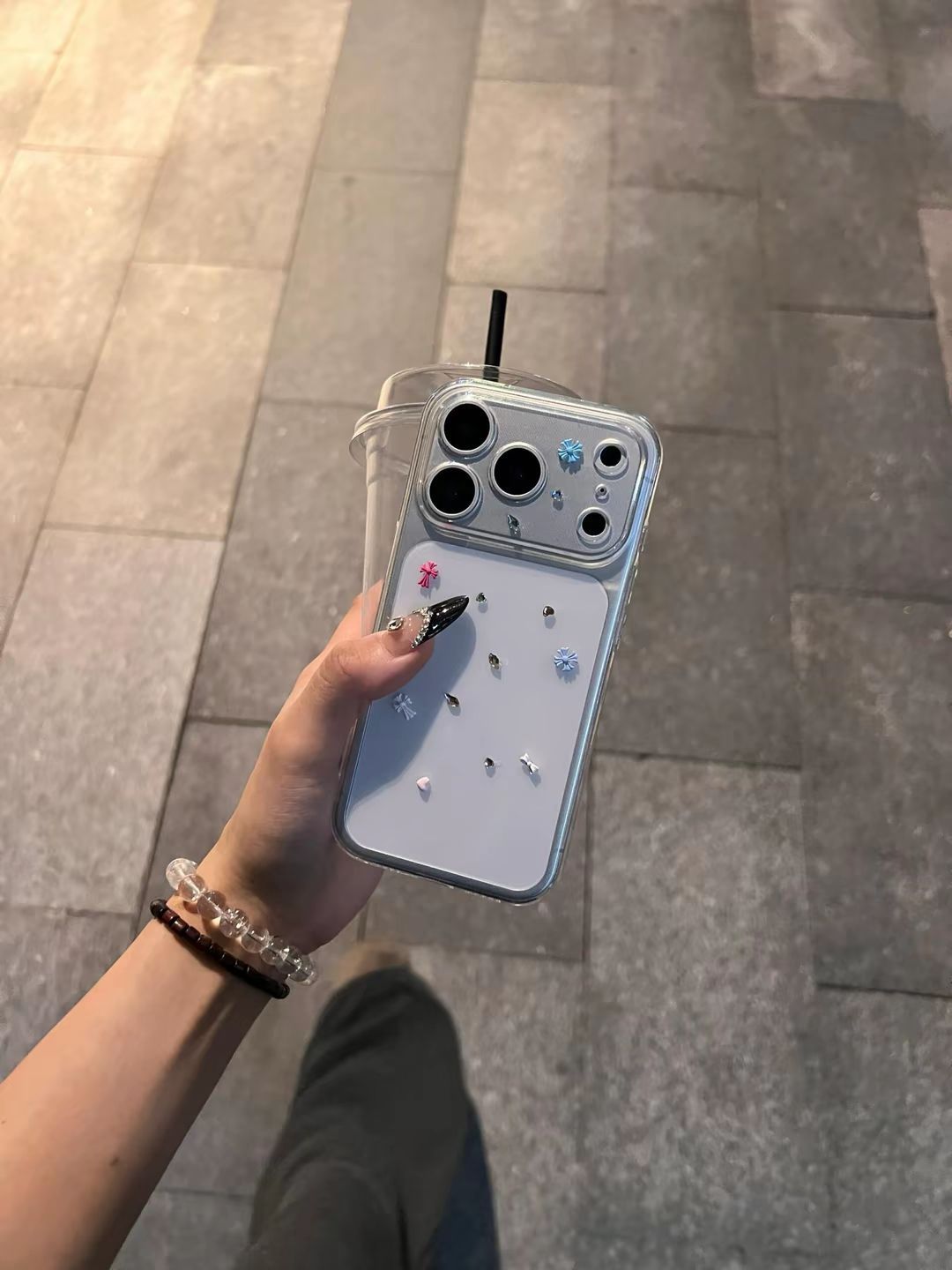你们的17pro银色都是什么搭配吖 bulingbuling闪钻克罗心手机壳好高级!!