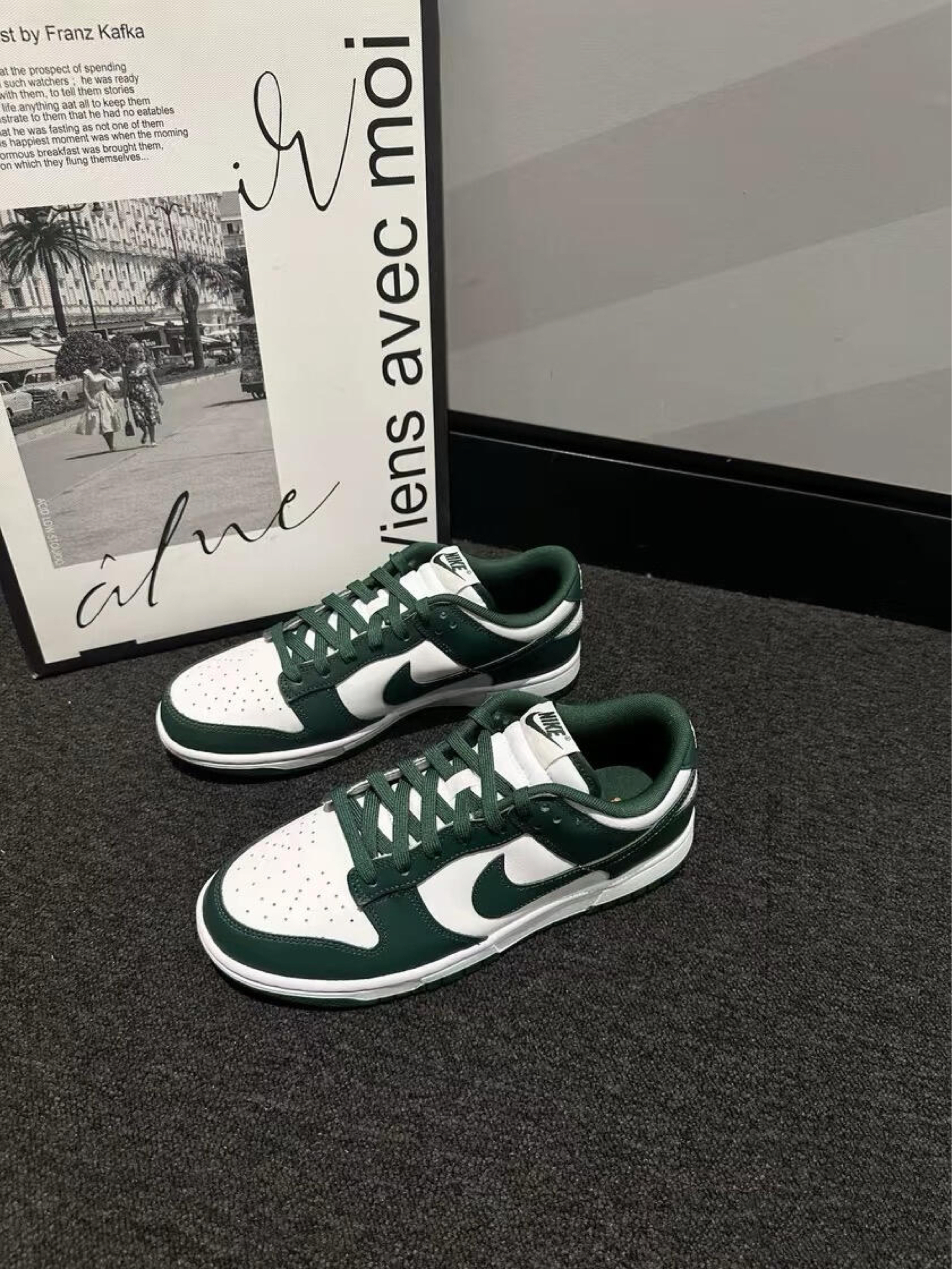 谁能拒绝这双“墨绿撞白”的Dunk?它直接把“深色鞋显闷、板鞋磨脚”的老顾虑揉开了——系上墨绿鞋带的瞬间,连通勤的枯燥都被这抹复古衬得有了质感。 它最懂深色板鞋爱好者的痛点—— 是不是总怕“深色鞋显笨重”“新板鞋磨得后跟红”?这双鞋的墨绿是“深而不暗”的调调,和白拼接像“墨茶加奶”,沉稳里带着清透,完全不会压个子;鞋面软到新鞋不用踩跟,第一次穿逛满街潮店,后跟都不会磨出印子。连鞋舌的橙勾都是“藏...