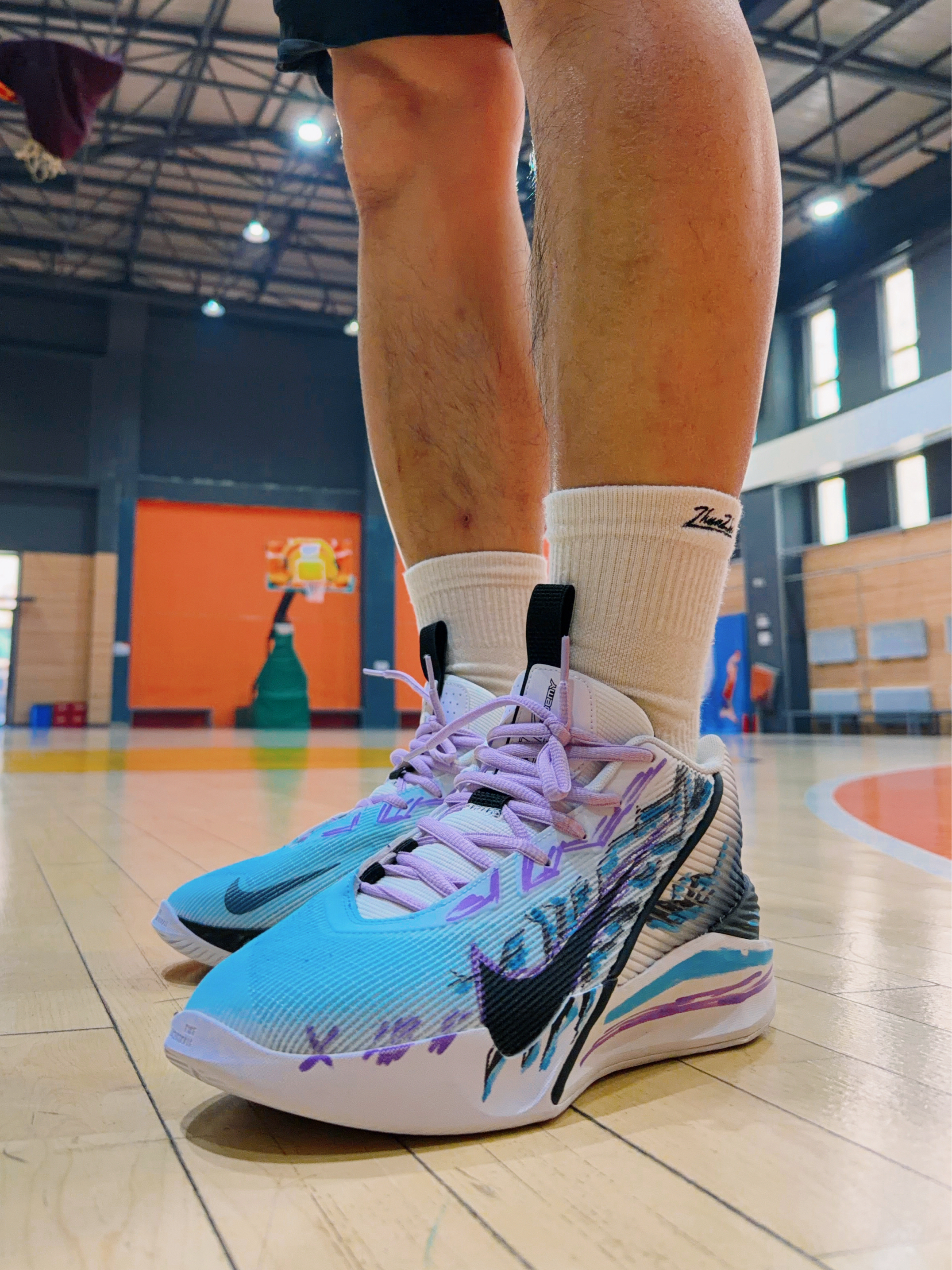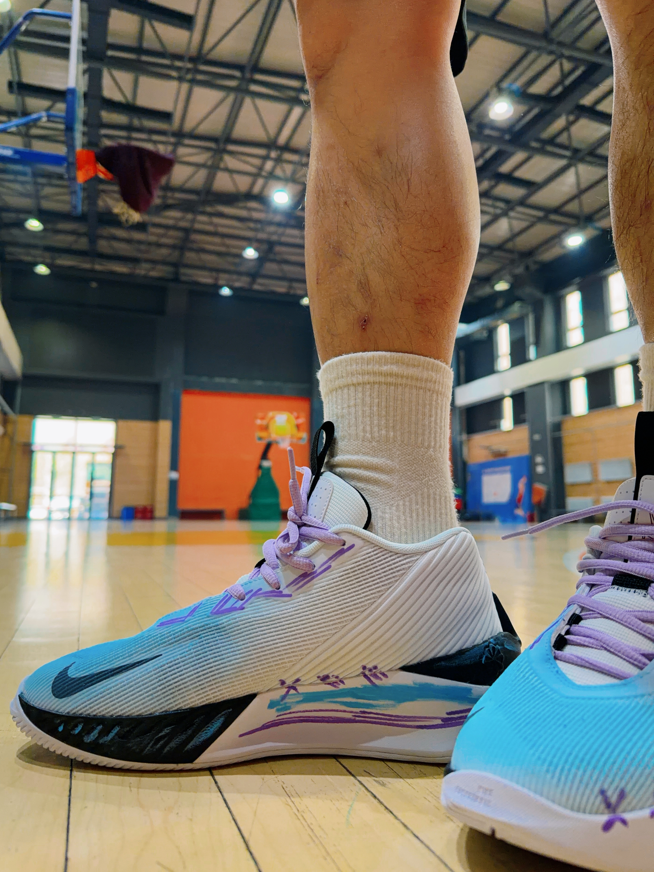 第一次定制自己的个性篮球鞋一双G.T. JUMPacademy属于一个团队款 本身颜值没有太大的特点不过定制一下焕然一新 蓝色紫色黑色搭配在一起 涂鸦的风格 还是很好看的颜值 绝对是球场上最靓的仔 脚感方面包裹很紧实 缓震比较适合中等体重的球员 在室内防滑耐磨很优秀 身高178cm 体重75kg 平时耐克穿 42.5码 这个也选择了42.5码是比较合适的!其实定制的颜值这么独一无二的 不论是打球还...