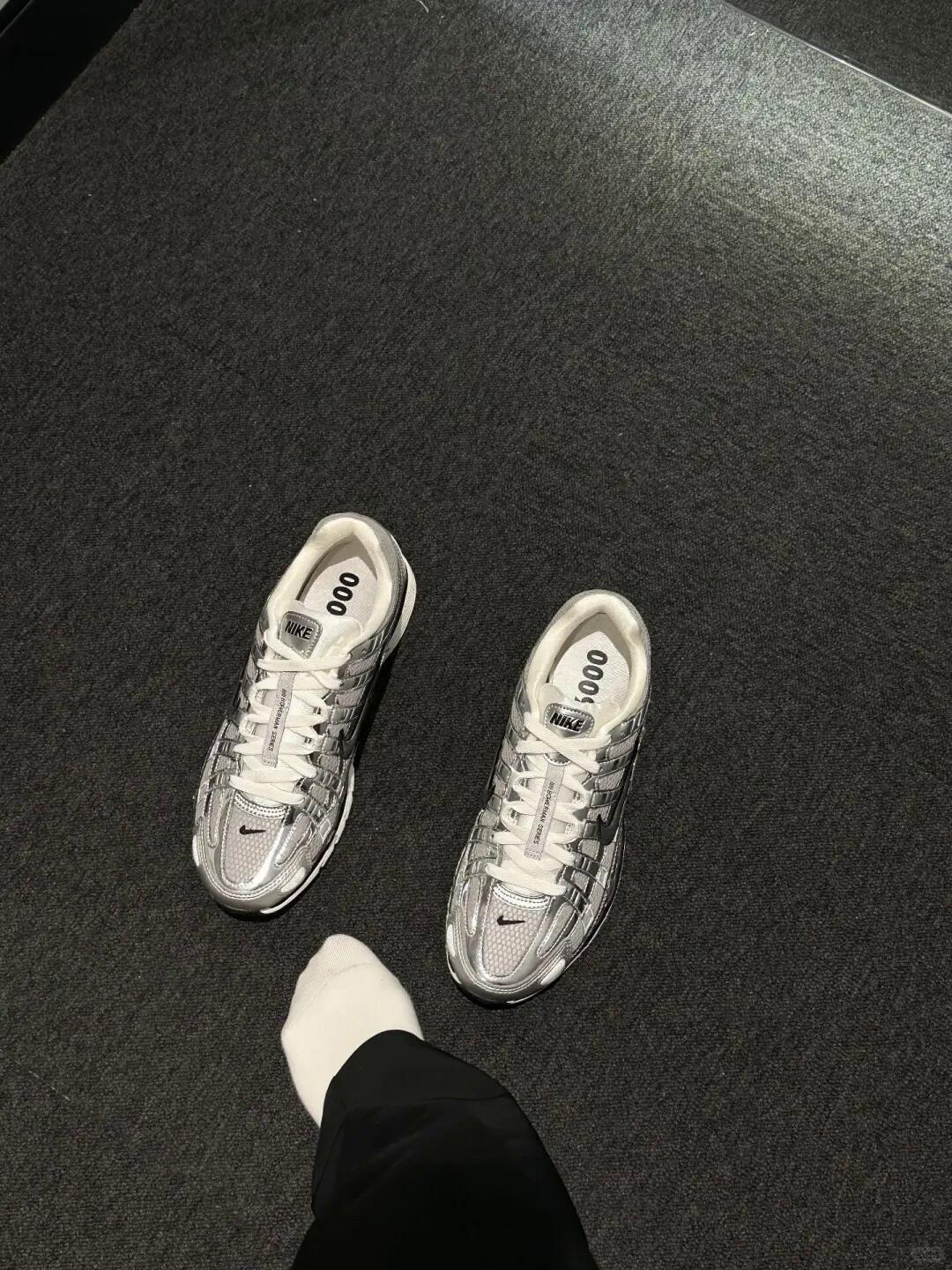 谁能拒绝一双像「被旧胶片裹住的复古潮」的鞋啊——这双银灰P-6000老爹鞋,踩上的瞬间连等地铁都自带「不费力的复古松弛感」。 「一眼沦陷的3个心动点」 1. 质感是「复古不笨重」的神调调 不是臃肿的厚底,是银灰渐变的流线型鞋身,网面+亮面的拼接软乎乎的,像把「90年代街头的风」穿在了脚上,搭黑裤都能衬出清瘦感。 2. 脚感是「踩在软弹枕头上」的舒服 鞋底软到每一步都像被轻轻托住,通勤挤地铁、...