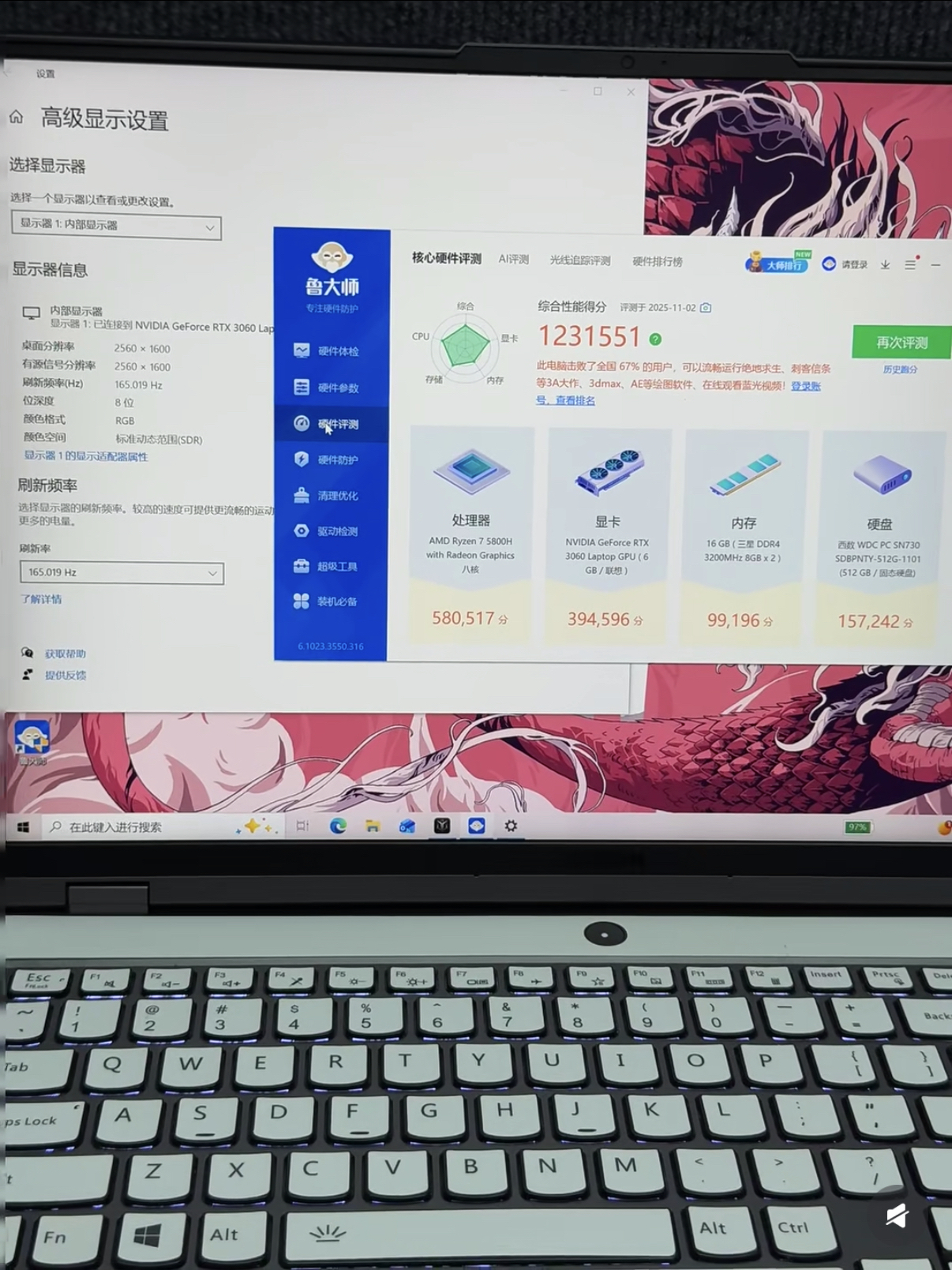 拯救者R9000P,2.5K分辨率 165hz屏幕 屏幕清晰细腻 显示效果极好 用料做工确实很棒 支持独显直连 性能很猛 所有大型3A游戏流畅运行 黑神话悟空等大型3A轻松拿捏 原机灰色贴了白色的膜 ,很推荐