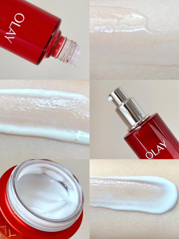 救命!被秋冬和初老双重暴击的痛谁懂啊!脸又干又垮,细纹还往外冒,直到被闺蜜按头安利了Olay大红瓶这套,直接把补水抗老做到了我心坎里! 质地与肤感:润而不油,干皮狂喜 爽肤水:清透的水漾质地,上脸秒吸收,完全不黏腻。拍两下就感觉每个毛孔都喝饱了水,为后续护肤打开了绝佳的通道。 乳液:流动性很好,一抹化水,轻薄却超能锁水。涂完皮肤是那种自然的水润感,不是油光,摸起来软软嫩嫩的。 面霜...