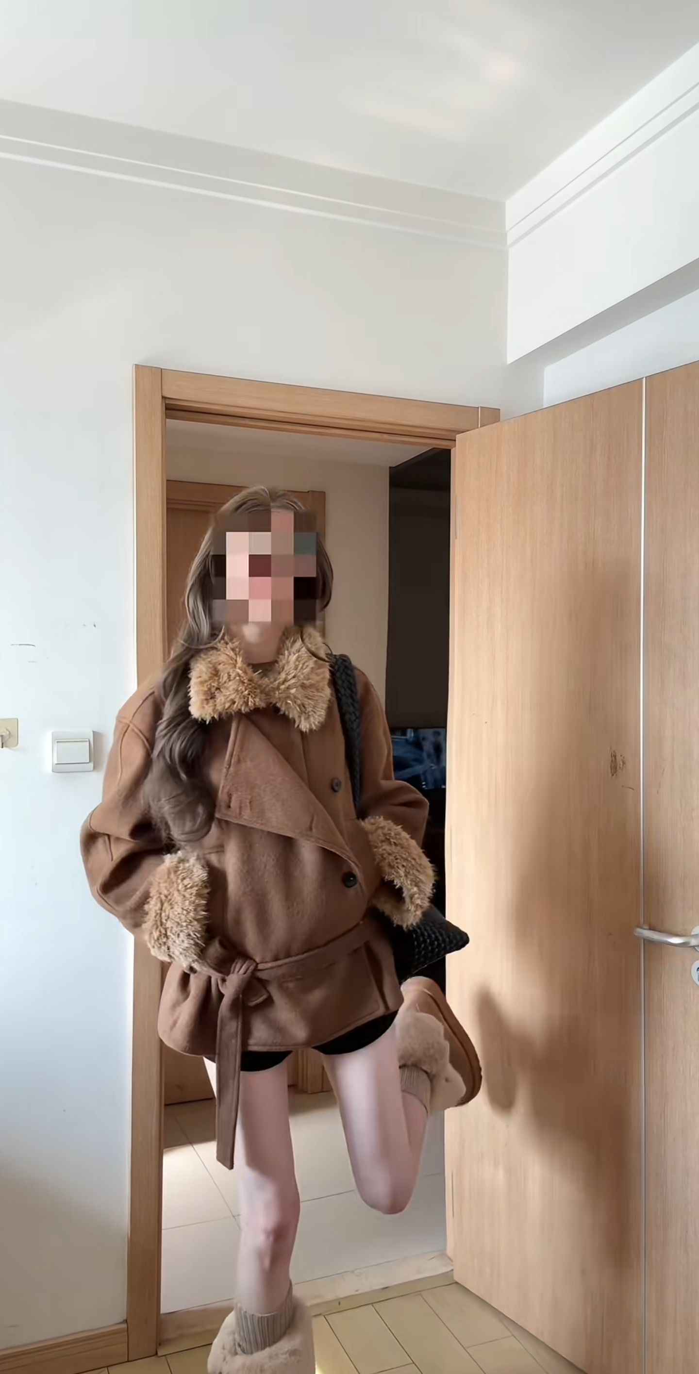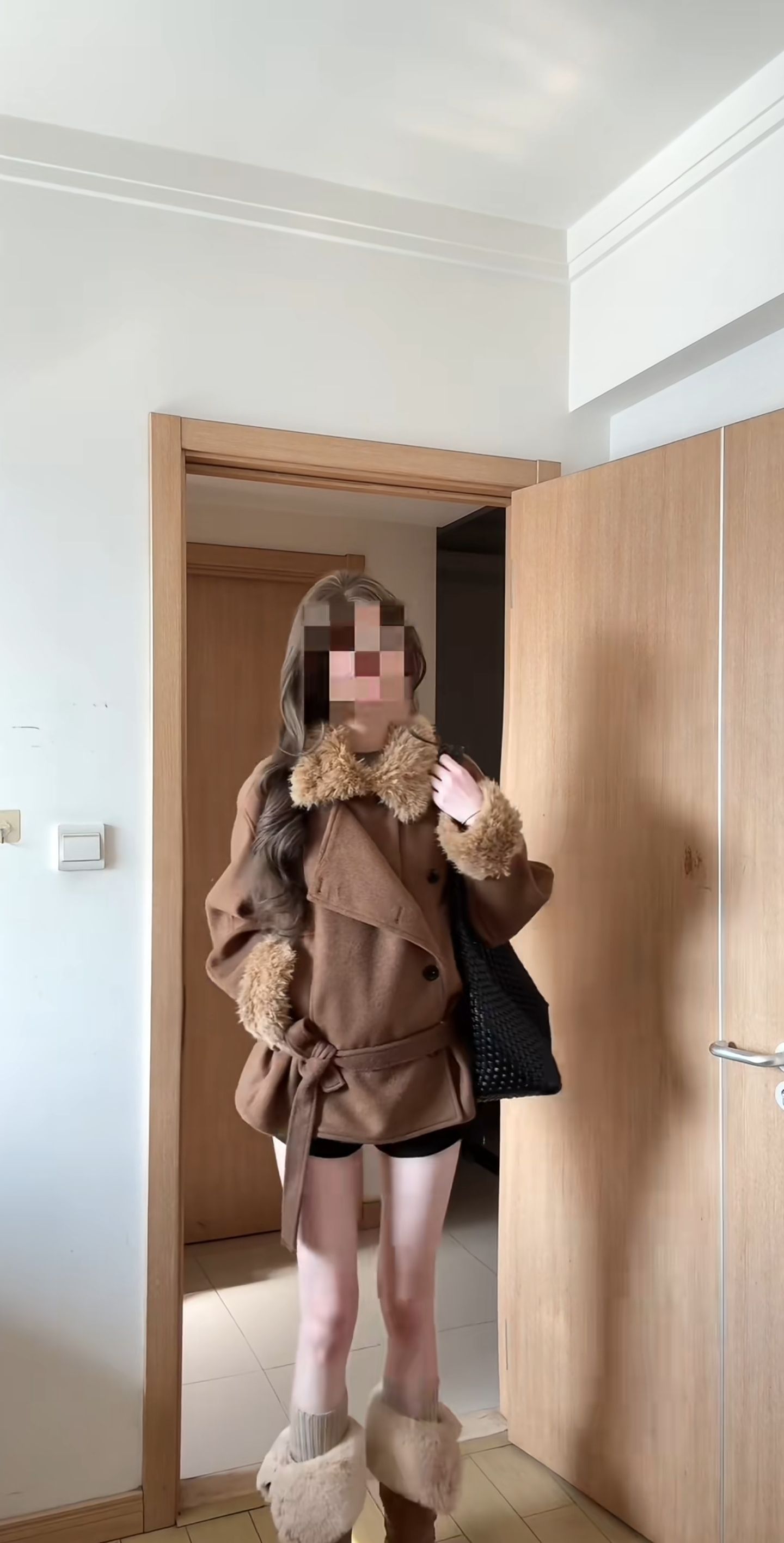 这套秋冬穿搭也太会拿捏氛围感了吧!焦糖棕大衣配毛绒边,又暖又显贵,绑带收腰刚好把比例拉得超绝~下装露腿+同色系毛绒靴,甜酷又不臃肿,搭个黑包包还添了点随性,出门约会逛街都超亮眼!
