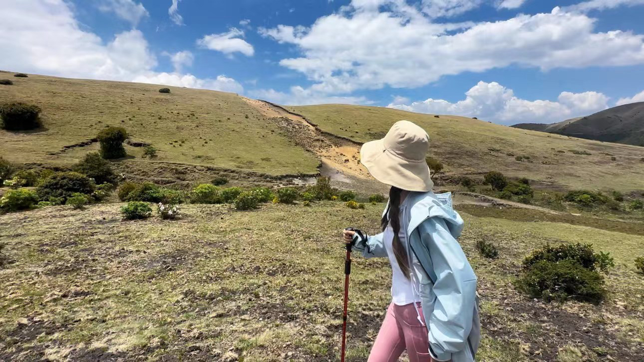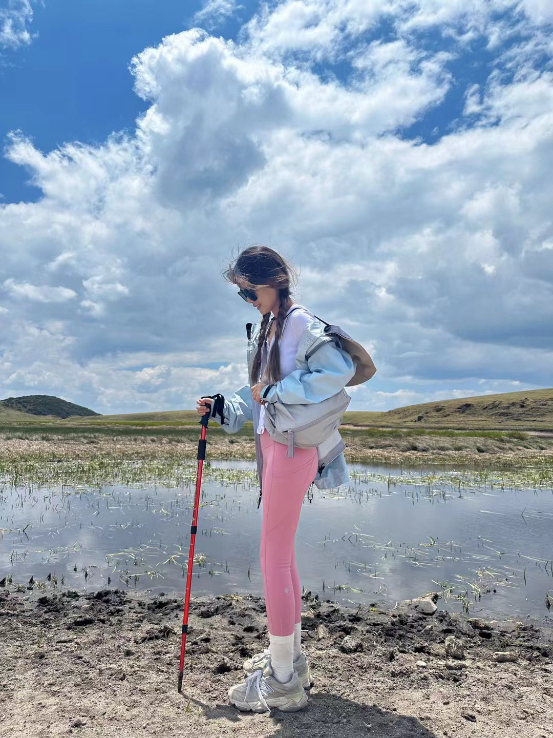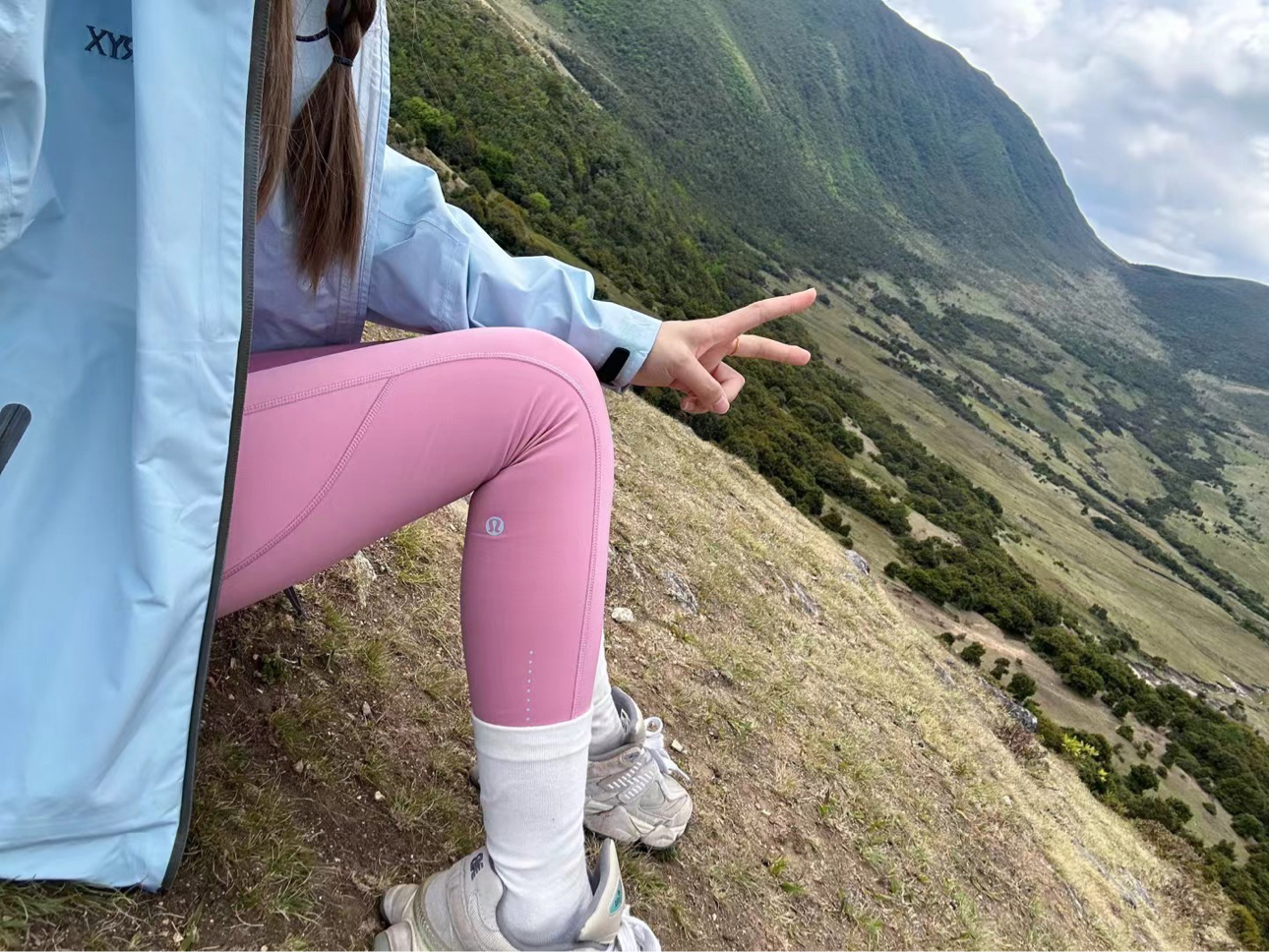 谁懂啊!以太蓝+粉的配色在山里也太绝了!! 始祖鸟防风外套的防水面料真的顶 lululemon瑜伽裤延展性绝绝子 翻山越涧还能保持颜值在线 三套动作直接抄: 1️⃣湿地徒步侧身抓拍 2️⃣山坡草地回头比耶 3️⃣溪流石头蹲姿玩水 原图直出九宫格根本不用挑!