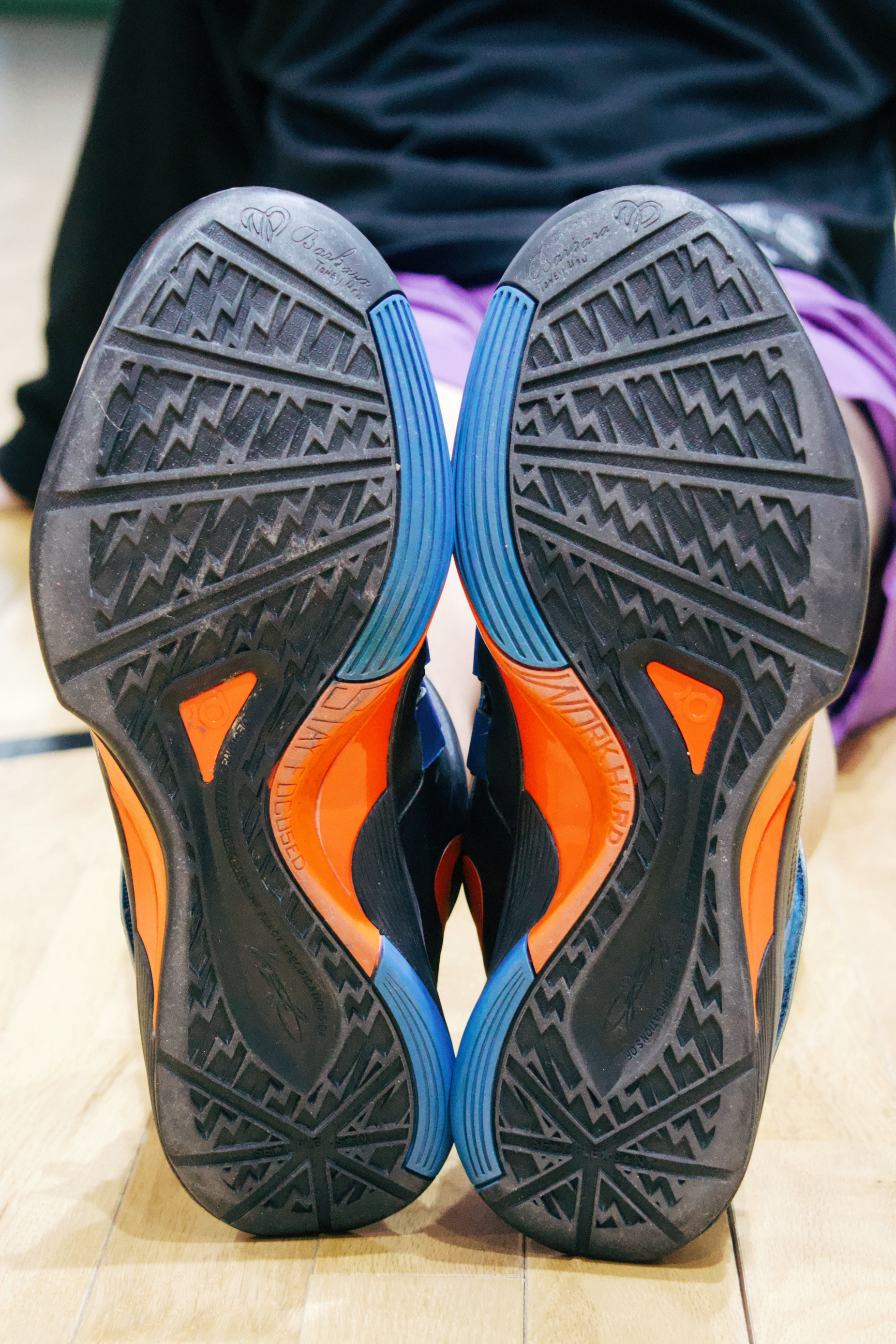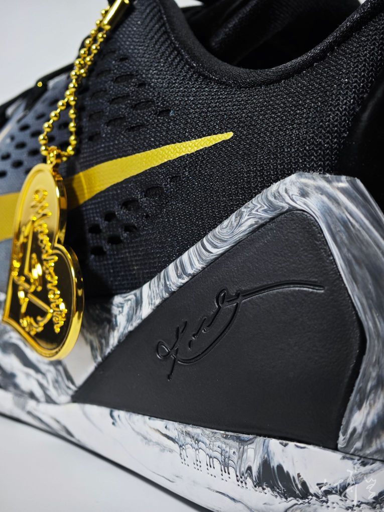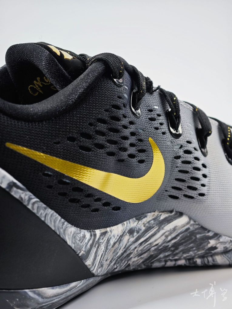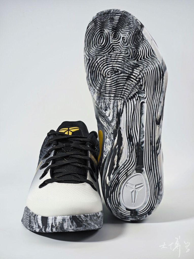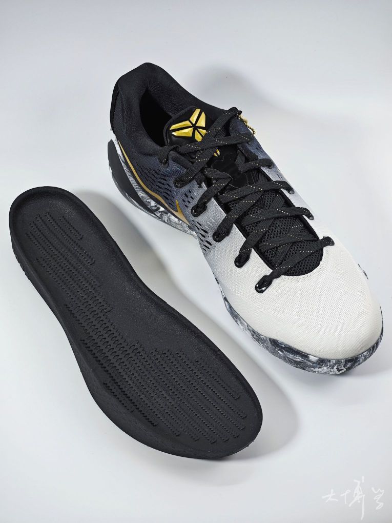 一双低帮的科比9 为纪念科比女儿Gigi推出的特别配色 以黑、白、金为主色 鞋身黑白撞色简洁大气 金色Swoosh点缀 鞋盒内侧印有天使翅膀图案和科比Logo 搭配金属心形吊牌,纪念意义拉满 工程网布鞋面透气性优于高帮Flyknit材质 脚部闷热感明显减轻 鞋码我觉得偏紧,适配大多数脚型