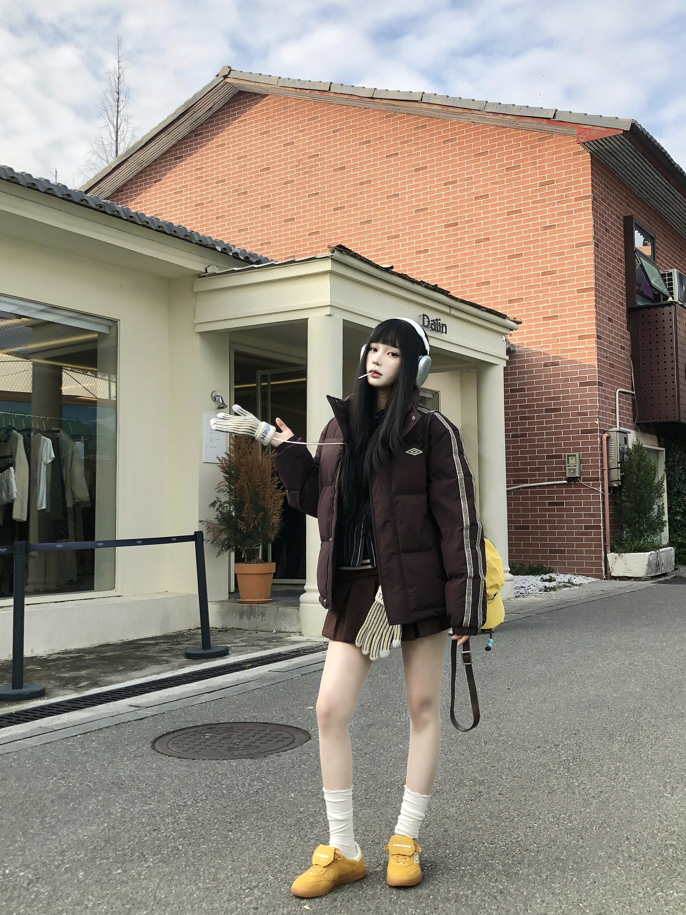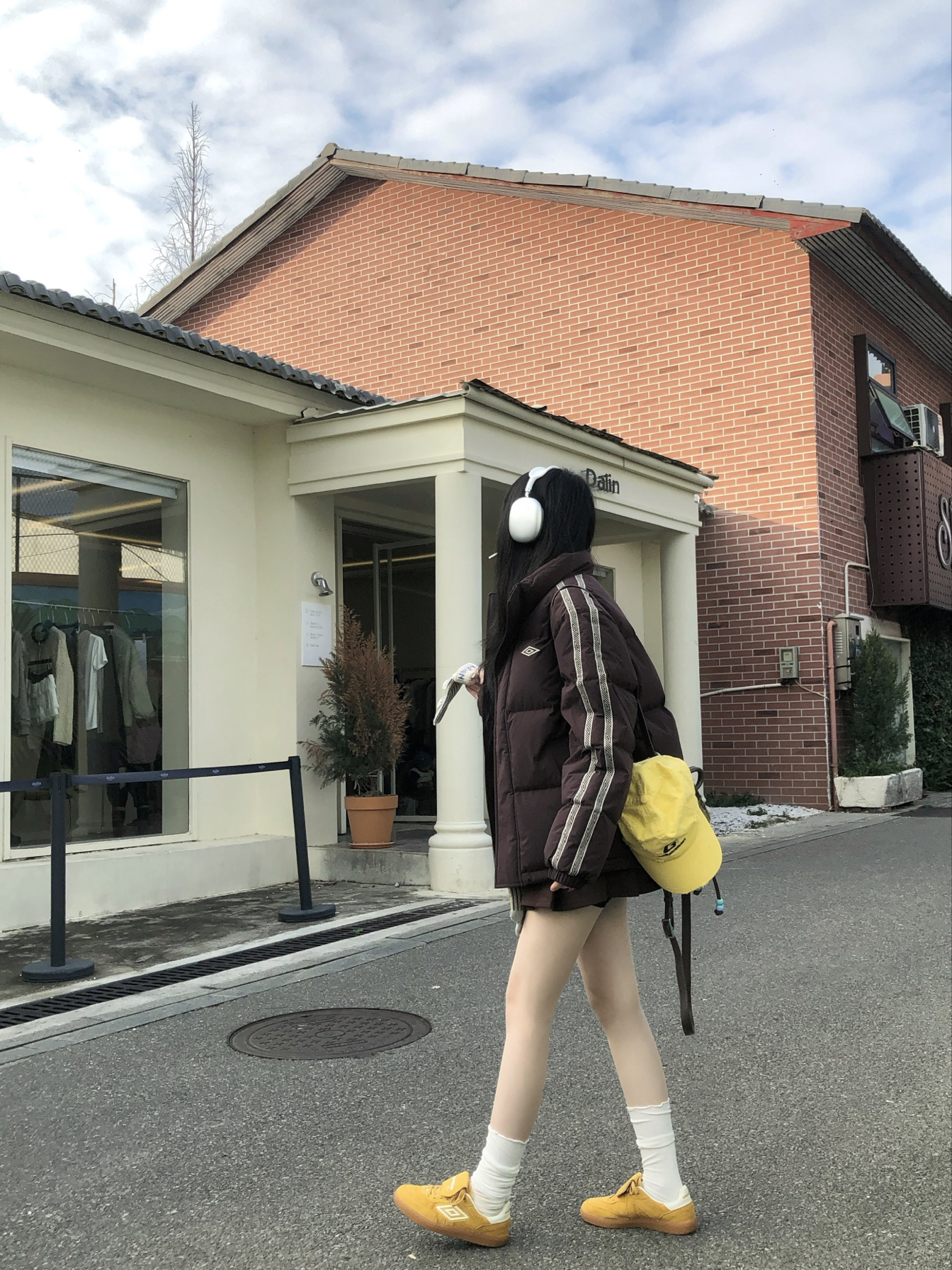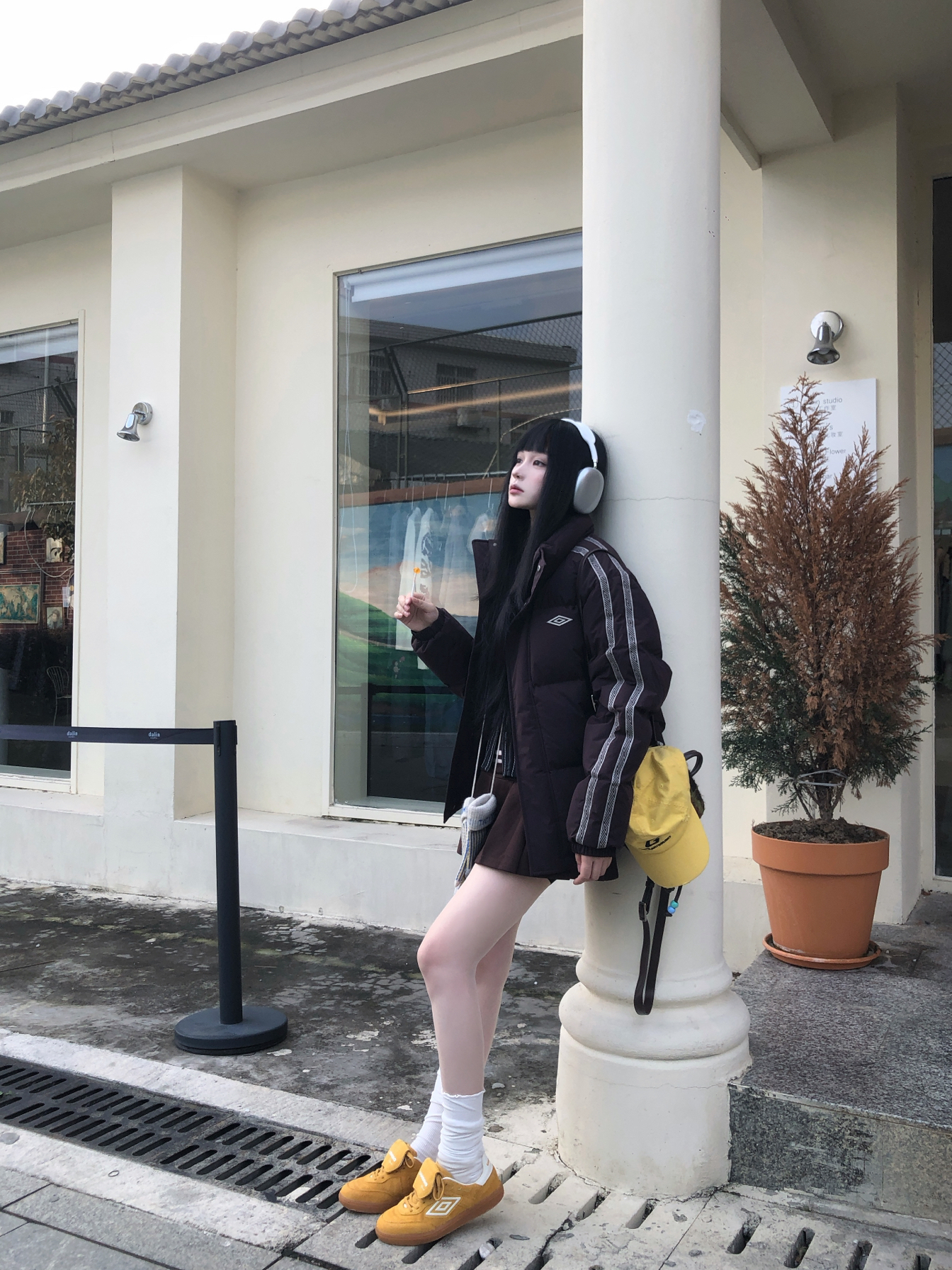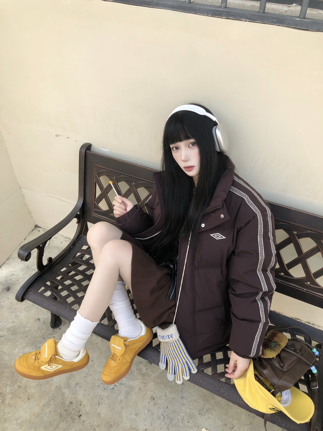 沉闷的穿搭就需要亮色系点缀🧀 这个秋冬街头穿羽绒服➕针织裙 上半身是宽松打底搭配羽绒服🤍 搭棒球帽同色系幸运星板鞋👟 黄色给人眼前一亮的感觉 上脚很舒适 一套出街又潮又运动阳光☀️双十一一起get吧