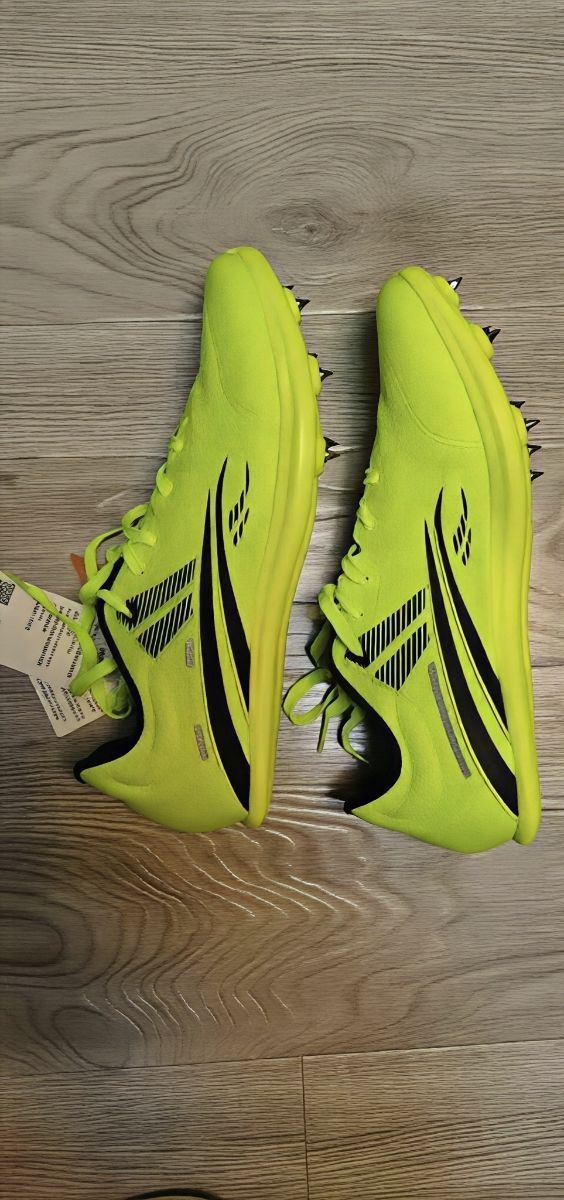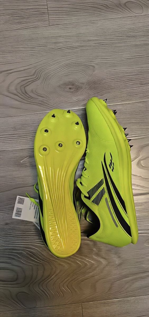 刚拿到手就被这荧光绿惊艳到了,实物比图片还亮眼!上脚第一感觉:这是三开价位的钉鞋?脚感居然卡在大蝉翼和Maxfly之间,软弹又不卸力,舒服到懵😯 优点真的顶:7钉+轻量化,跑起来没负担;全场碳板+PEBA X太猛了,全掌PEBEX纤维板刚性直接翻3倍,蹬地那一下推进力跟装了弹簧似的,100到800米都能打。超临界泡棉中底落地又稳又弹,黑底纹路抓地力拉满,鞋面透气还贴脚,爆发式起跑时斜顶设计直接...