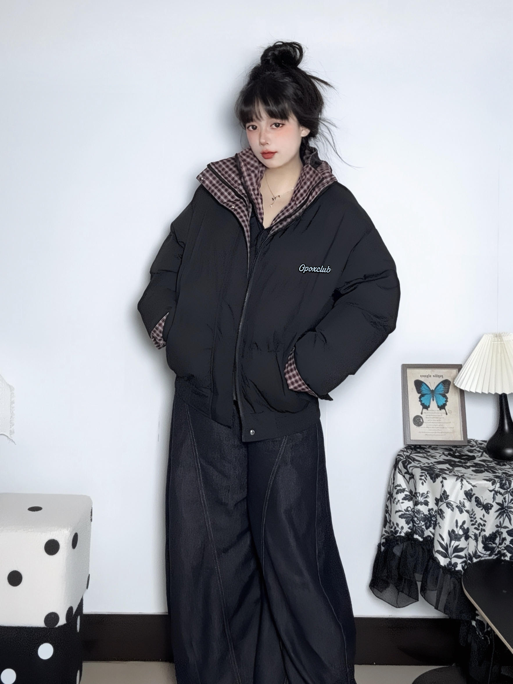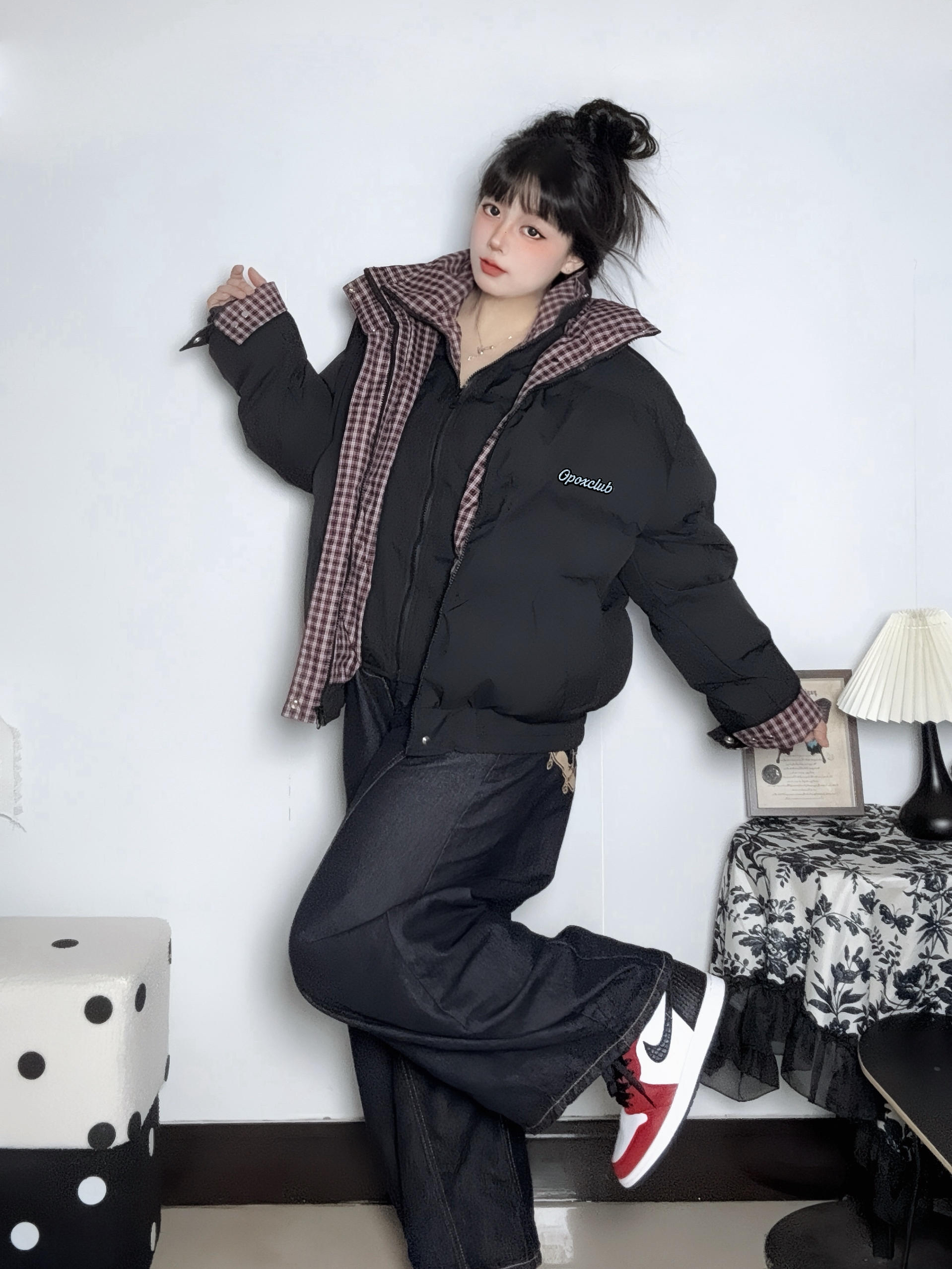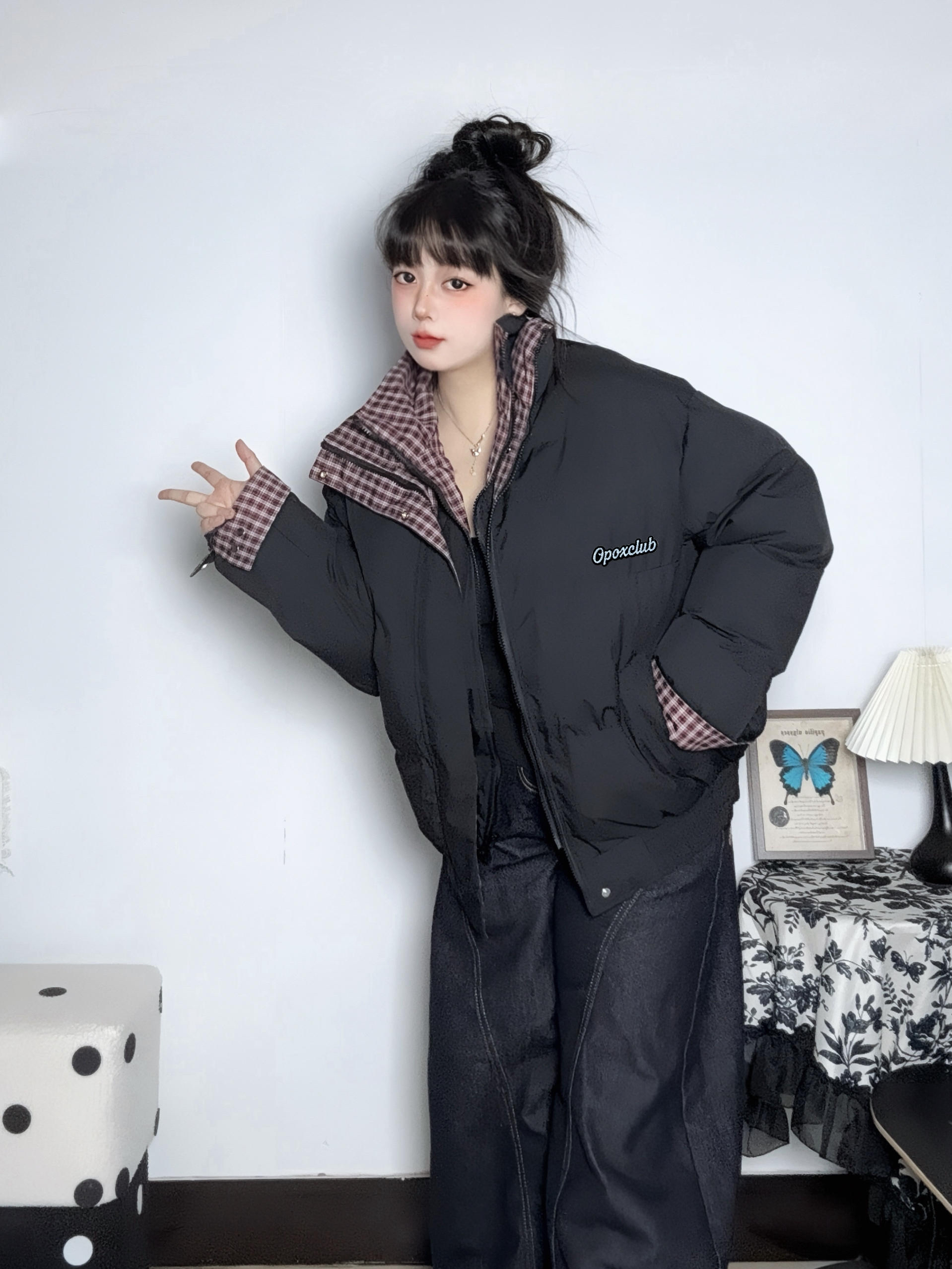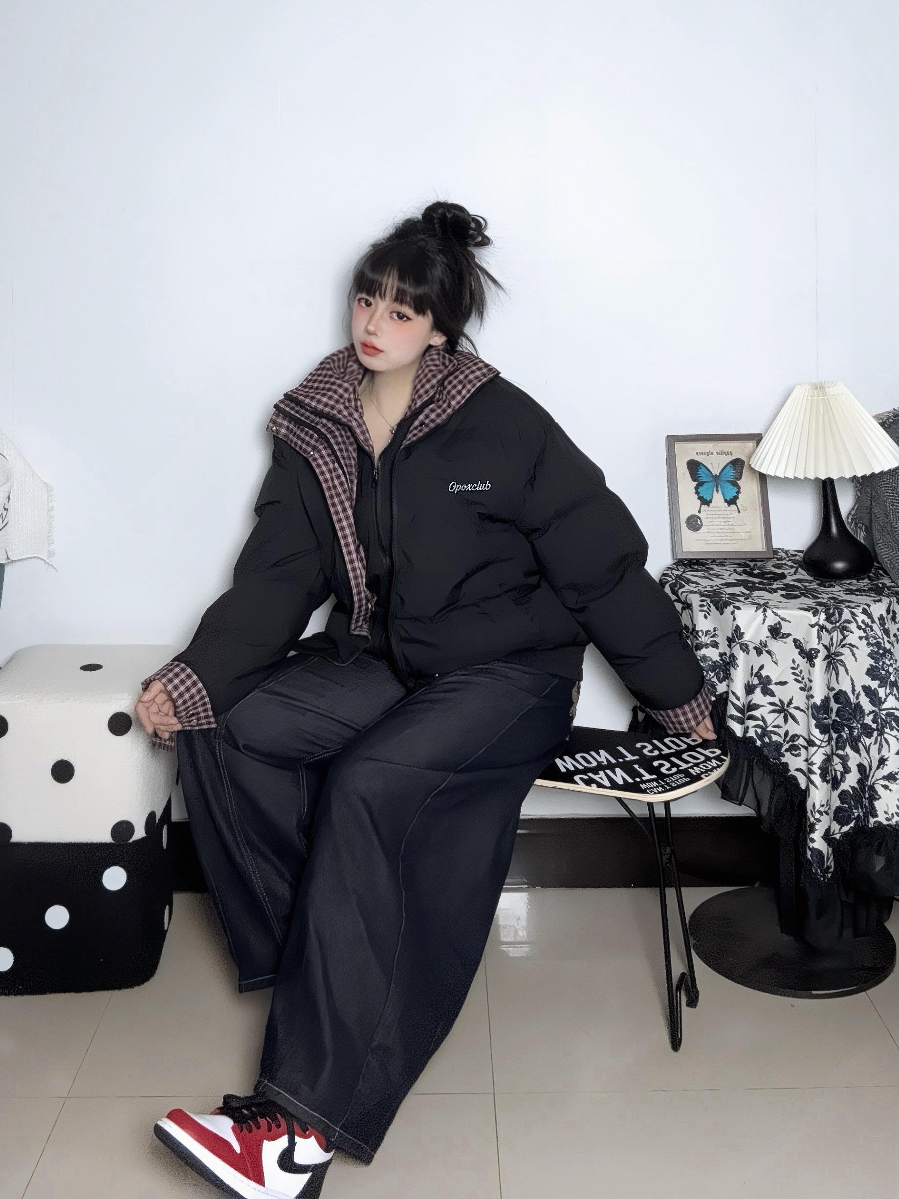 康康我这件拼接的棉服 红格纹一些点缀比较特别 宽松的版型hin遮肉 拉链穿脱也方便 主要是冬天穿既保暖又有层次感 休闲中带点复古调调~ - 再搭条深色阔腿牛仔裤蛇纹AJ 和暗色系的穿搭形成对比 小帅一下可以去班味儿啦~ ▪️ 参考尺码:168cm60kg M