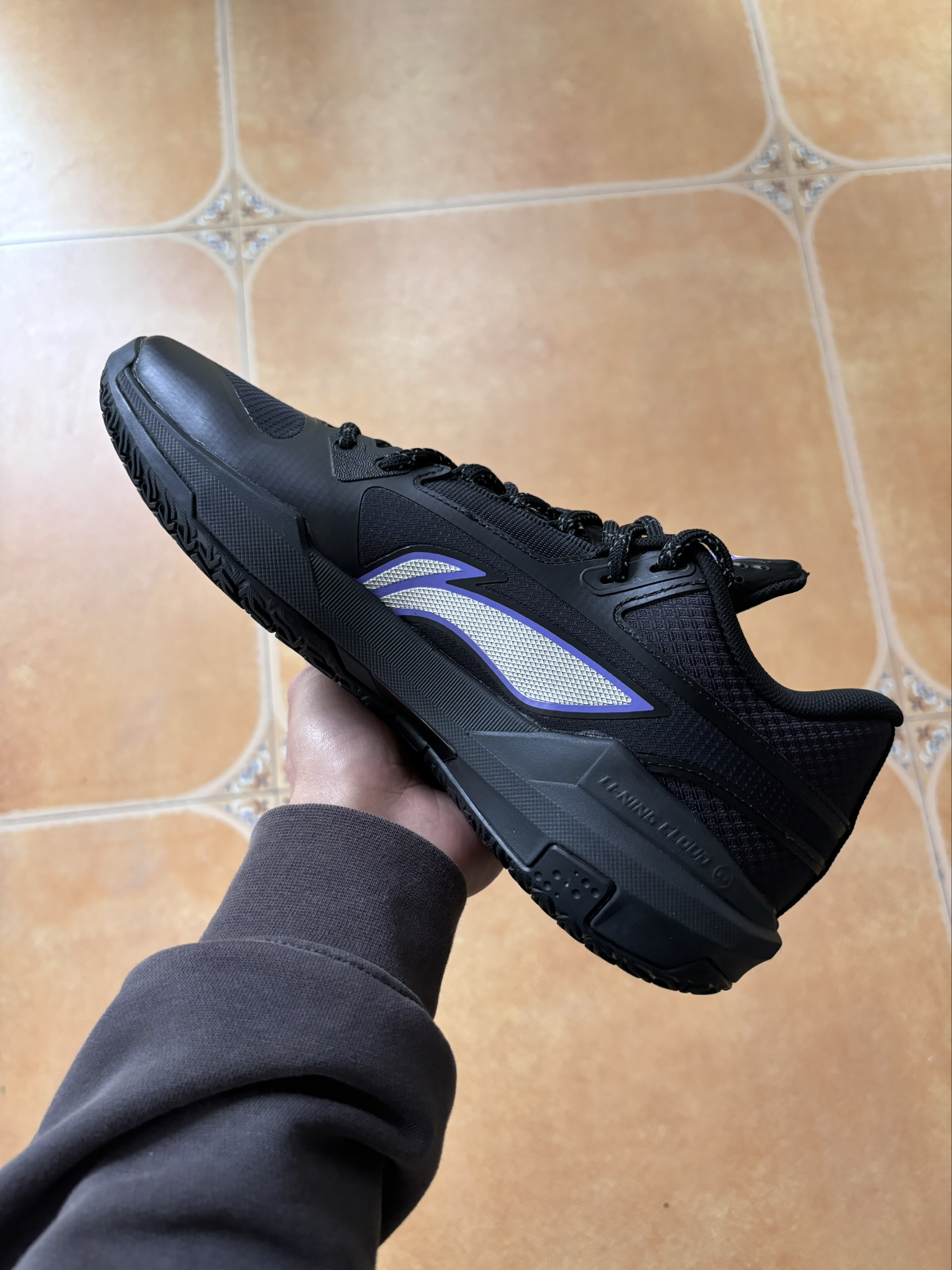 一体式全黑鞋身♠️,质感拉满。不同区域用了不同材质,热熔压胶、工程网面,层次感细节直接溢出,低调但绝不简单,纯色党狂喜!鞋面强度很够用,后跟锁定很稳,鞋底有TPU抗扭片,鞋带高强度比赛的话容易松,需要多系一遍,拉紧之后包裹感很强烈🔥,鞋底缓震用的是李宁的当家科技“䨻”,对210斤的我来说也很够用,透气性真的绝绝子,适合所有位置的朋友,尤其是后卫 ,薄底快靴的增强版,橡胶底防滑性不管内场还是外场都适...