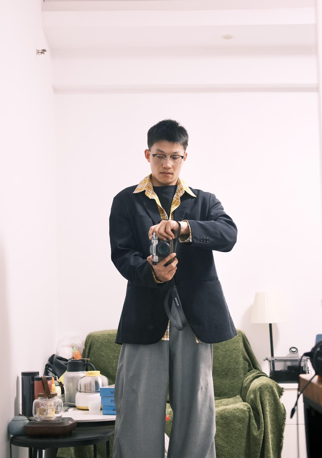 作为摄影新手,入了富士X - T30 Ⅲ后,拍穿搭更有动力啦~📸 它是APS - C画幅,拍人物、风光这些场景都很清晰,自动对焦也方便,不用手动调焦调来调去。视频拍摄能到4K 60P,偶尔想录个穿搭vlog也能hold住~不过对于完全没接触过相机的小白,前期得花点时间研究功能~我今天穿黑西装叠搭黄格衬衫和黑高领,下身灰阔腿裤配黑皮鞋,用它拍出来色彩和细节都很在线,分享欲直接拉满!✨图片源于网络,侵...