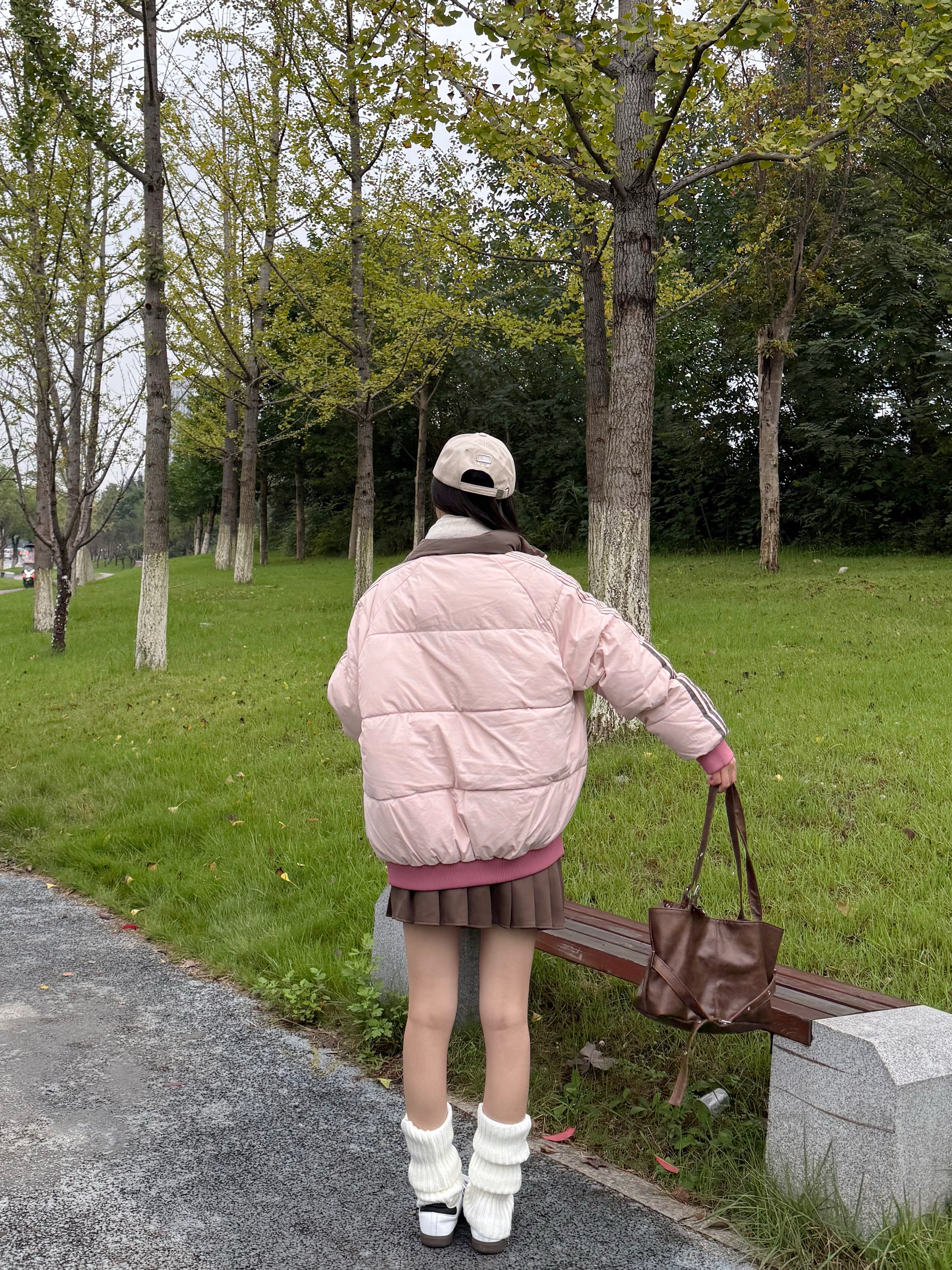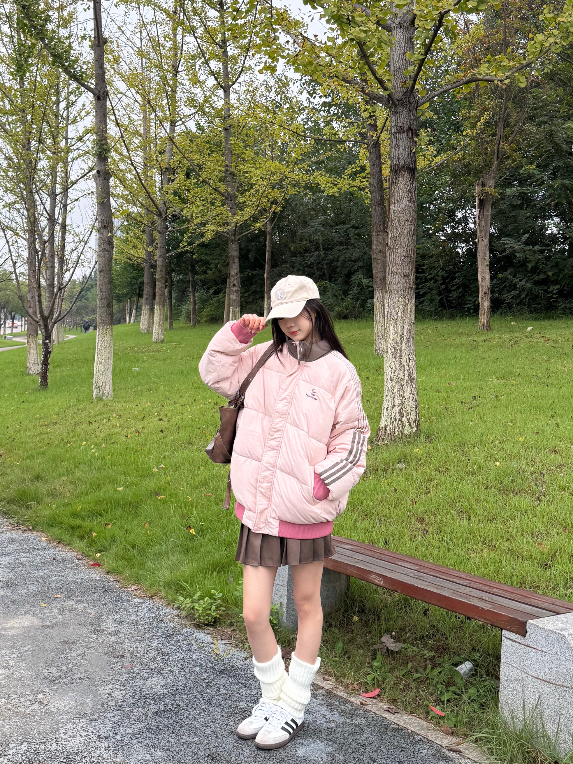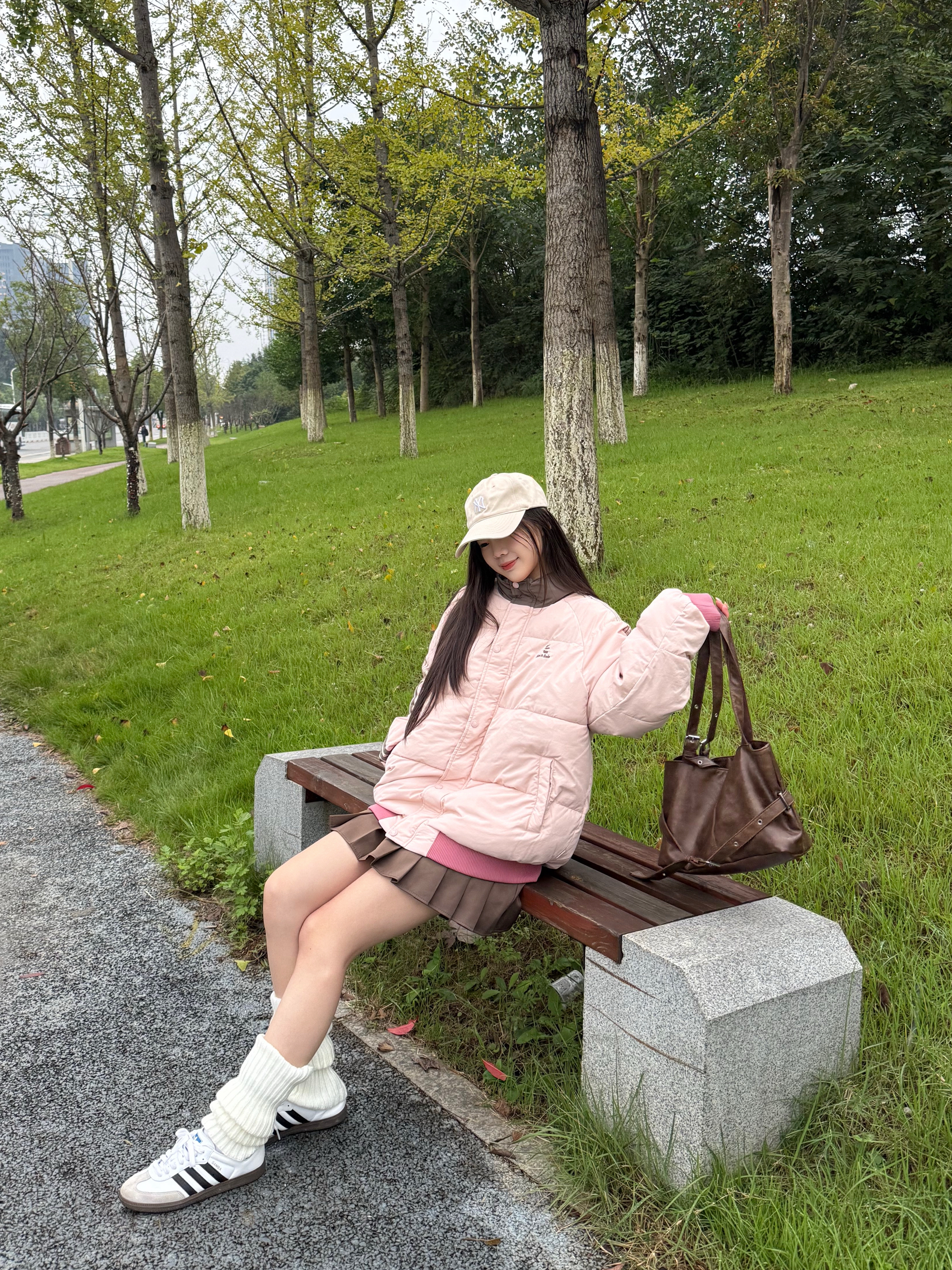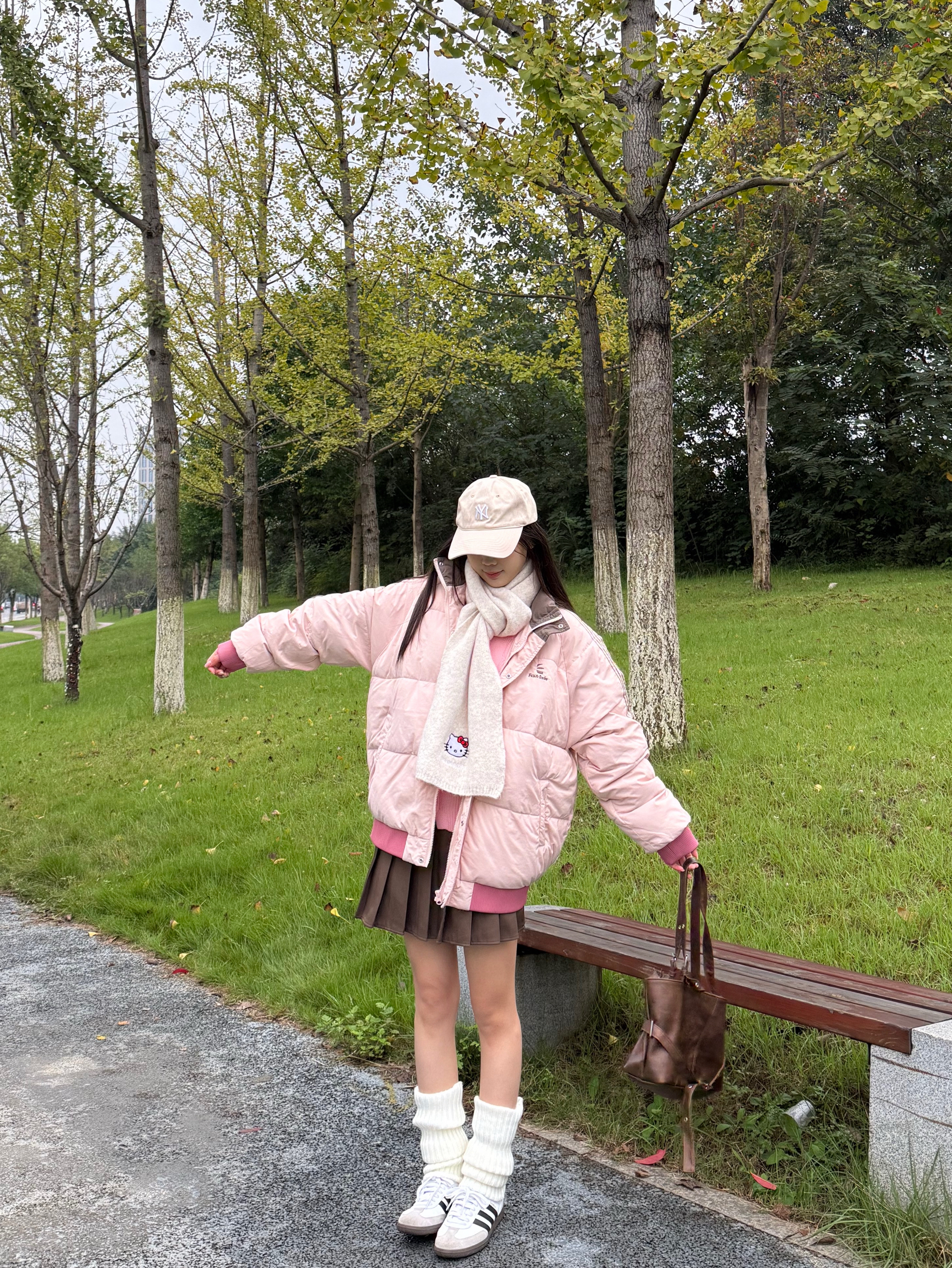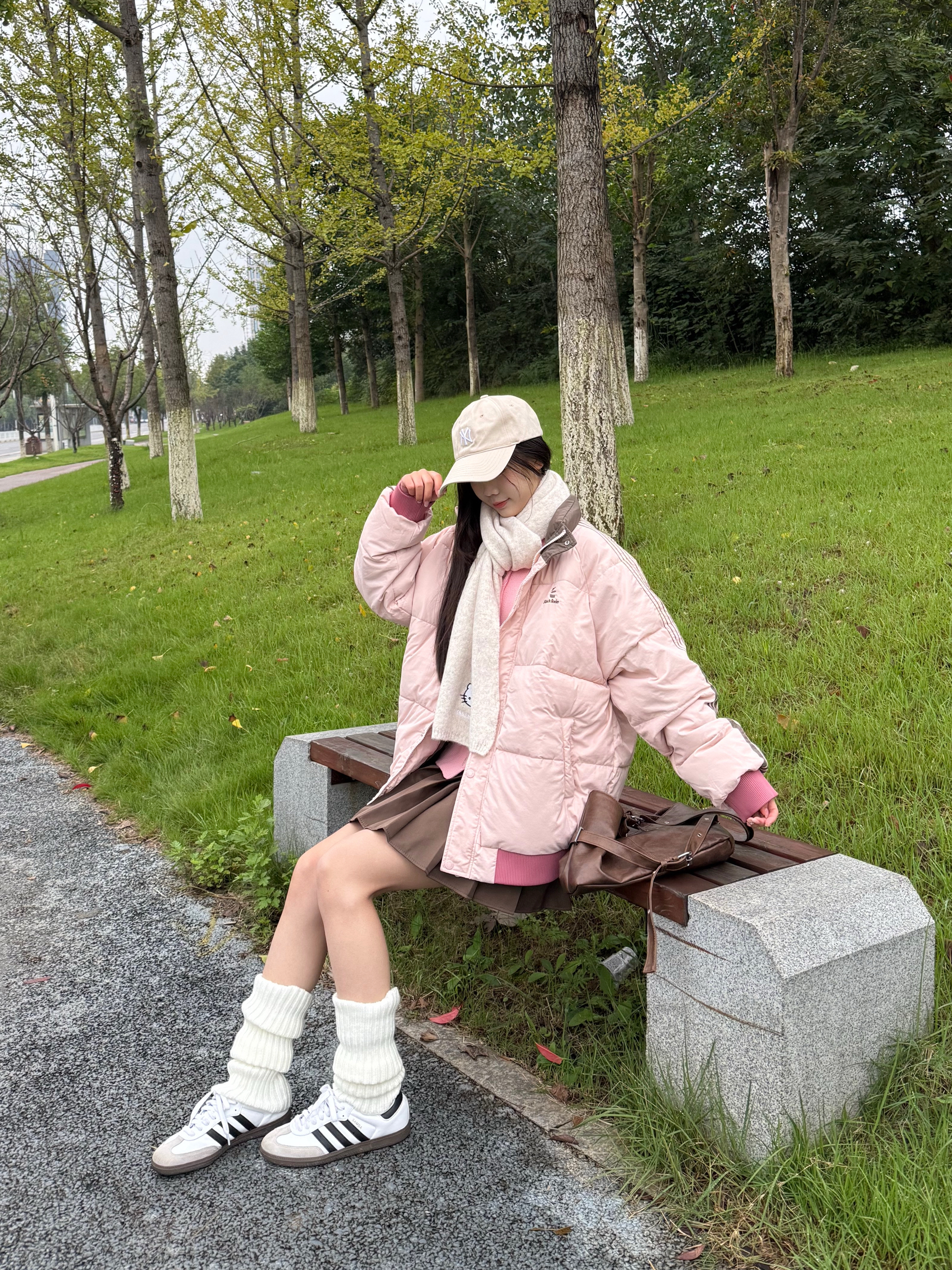 身高|体重:168|51 🧍♂️ 穿搭风格:甜酷少女风 👔 上衣:F426 👟 鞋子:阿迪达斯 🧣围巾:三丽鸥 这身穿搭太适合秋冬出街啦! 粉色棉服宽松保暖,搭配棕色百褶裙和白色堆堆袜,甜酷感拉满~ 米色棒球帽和围巾增添温柔感,再背个棕色包包,整体色调和谐又有层次✨ 这种风格你们喜欢吗?有没有姐妹也爱这样的冬日搭配,快来评论区交流呀!