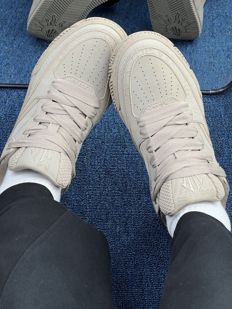 这双鞋上脚一周,随便说点真实感受👇 首先是脚感,刚穿的时候前掌有点压脚趾(我正常脚型,买的正码),走了两天才稍微松快些,可能是鞋头的压纹材质偏硬。鞋身的浅卡其确实耐看,配黑裤子白袜子都不突兀,但麂皮+压纹皮的拼接很容易沾灰,今天在地铁上蹭了点污渍,拿湿巾擦了半天才淡下去😮💨 鞋底的纹路看着糙,但实际在光滑地砖上有点滑,上周下雨踩了次水,差点趔趄。不过包裹感是真的稳,鞋带系紧后脚踝那块贴得...